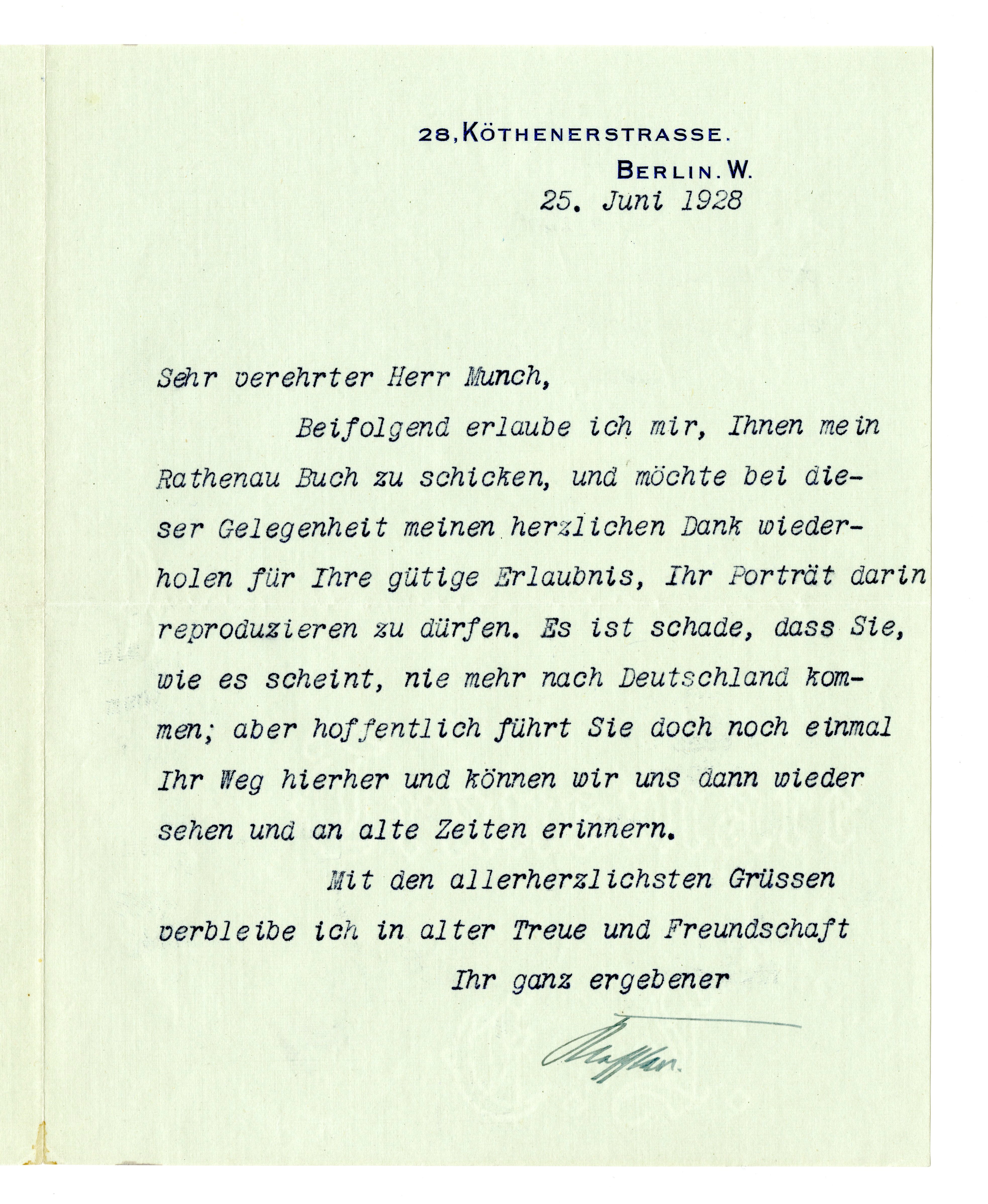 MM K 2880, Munchmuseet. Datert 25.06.1928. Brev fra Harry Kessler.