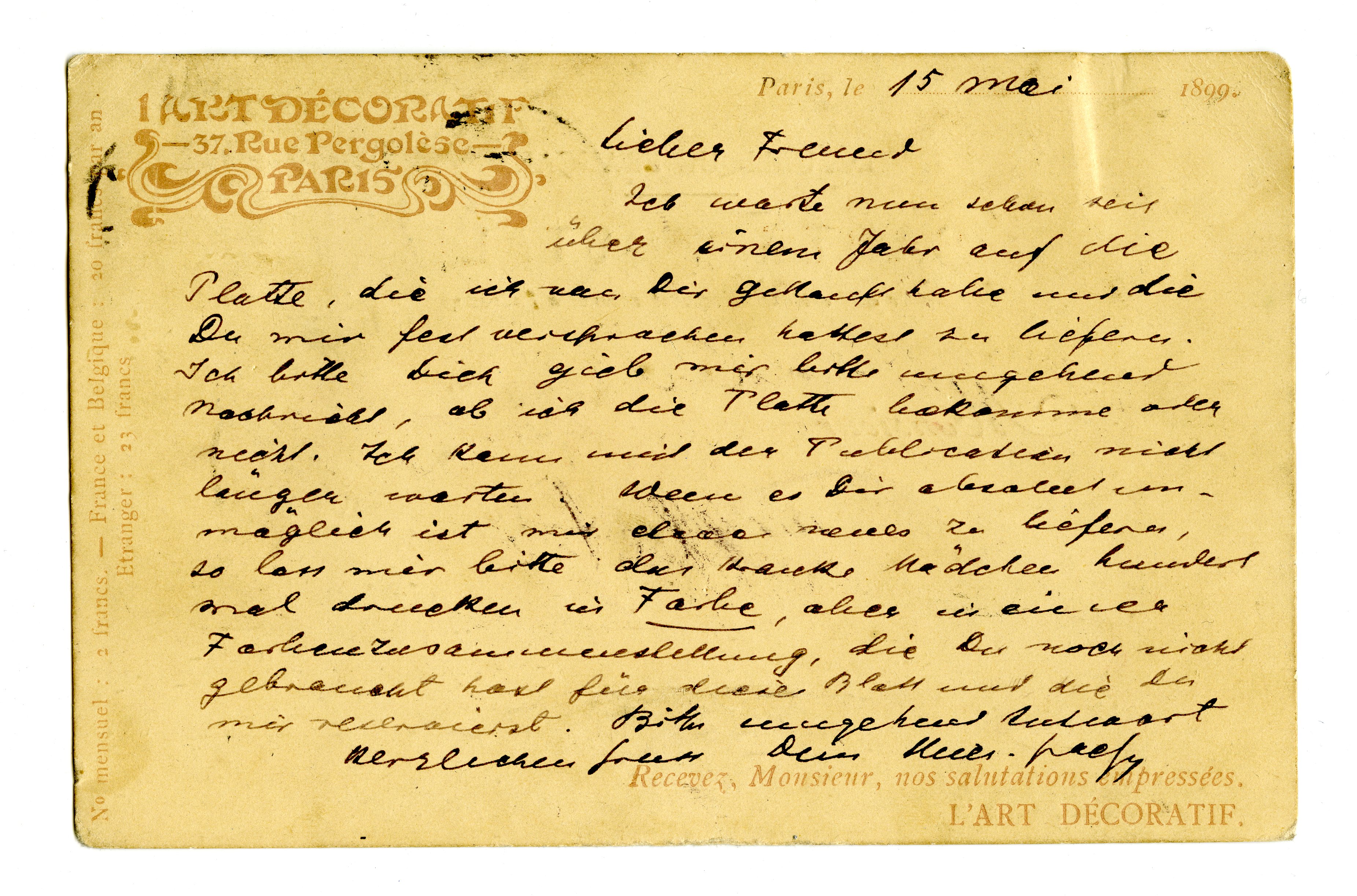 MM K 2924, Munchmuseet. Datert 15.05.1899. Brev fra Julius Meier-Graefe.