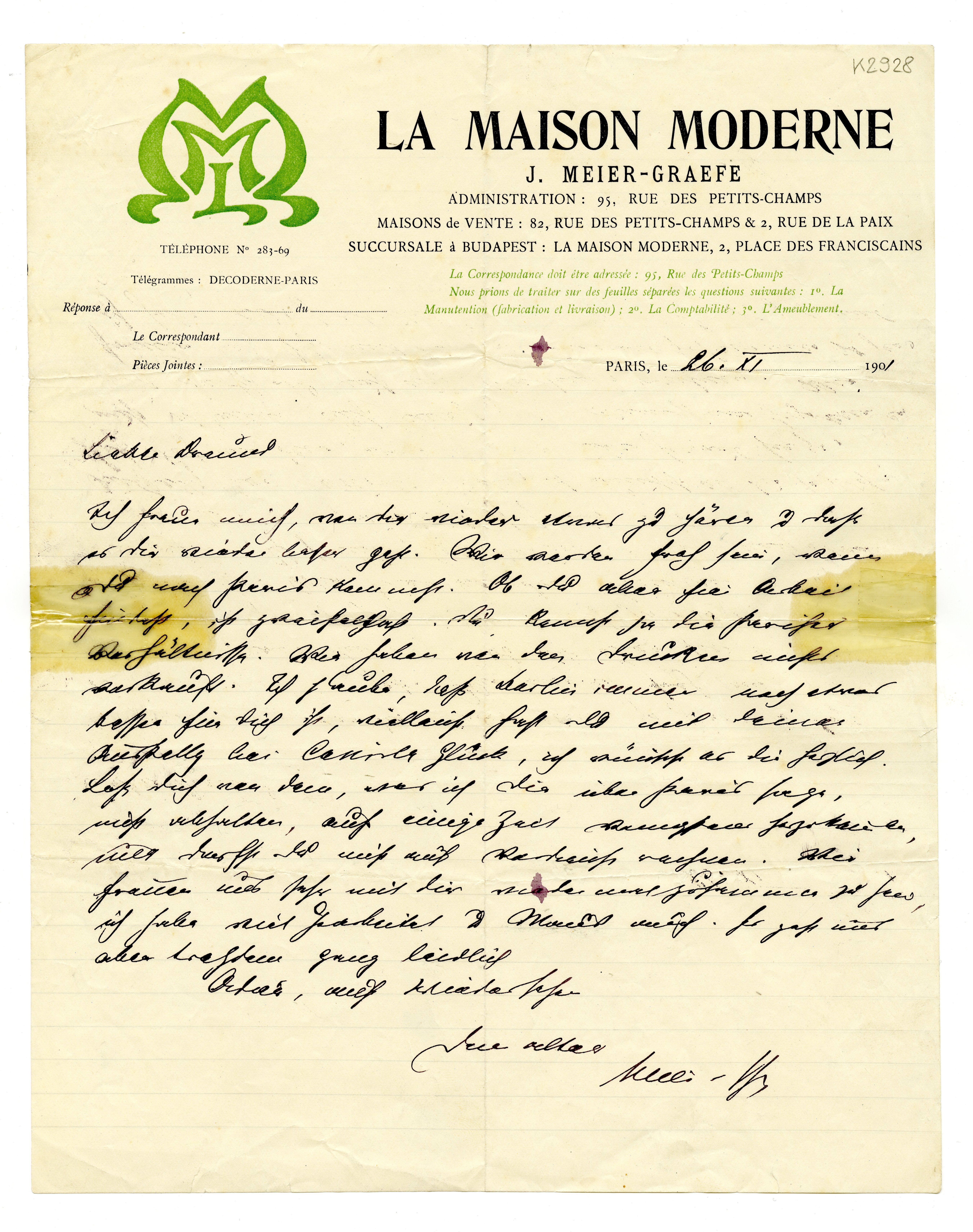 MM K 2928, Munchmuseet. Datert 26.11.1901. Brev fra Julius Meier-Graefe.