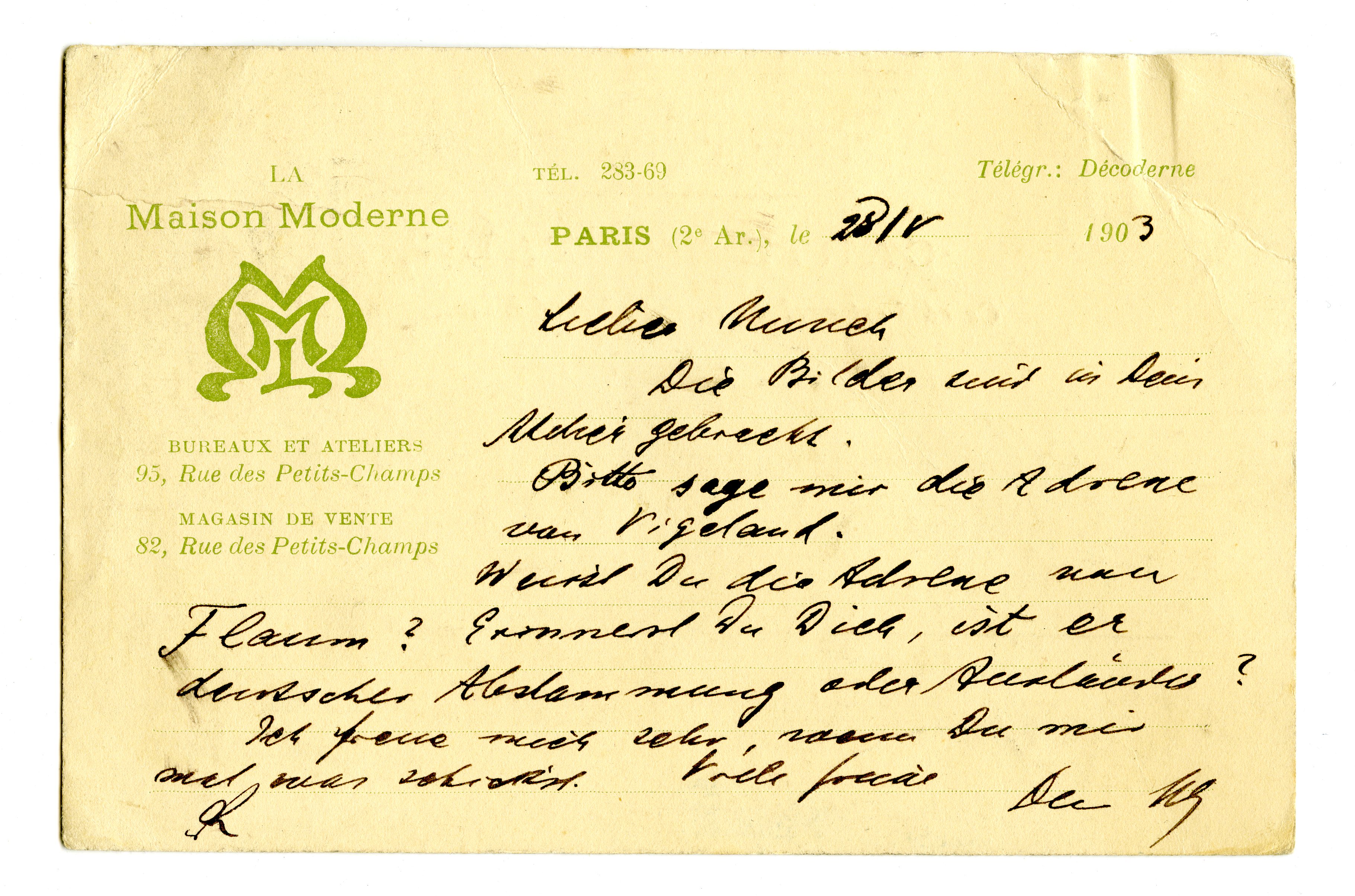MM K 2930, Munchmuseet. Datert 28.05.1903. Brev fra Julius Meier-Graefe.