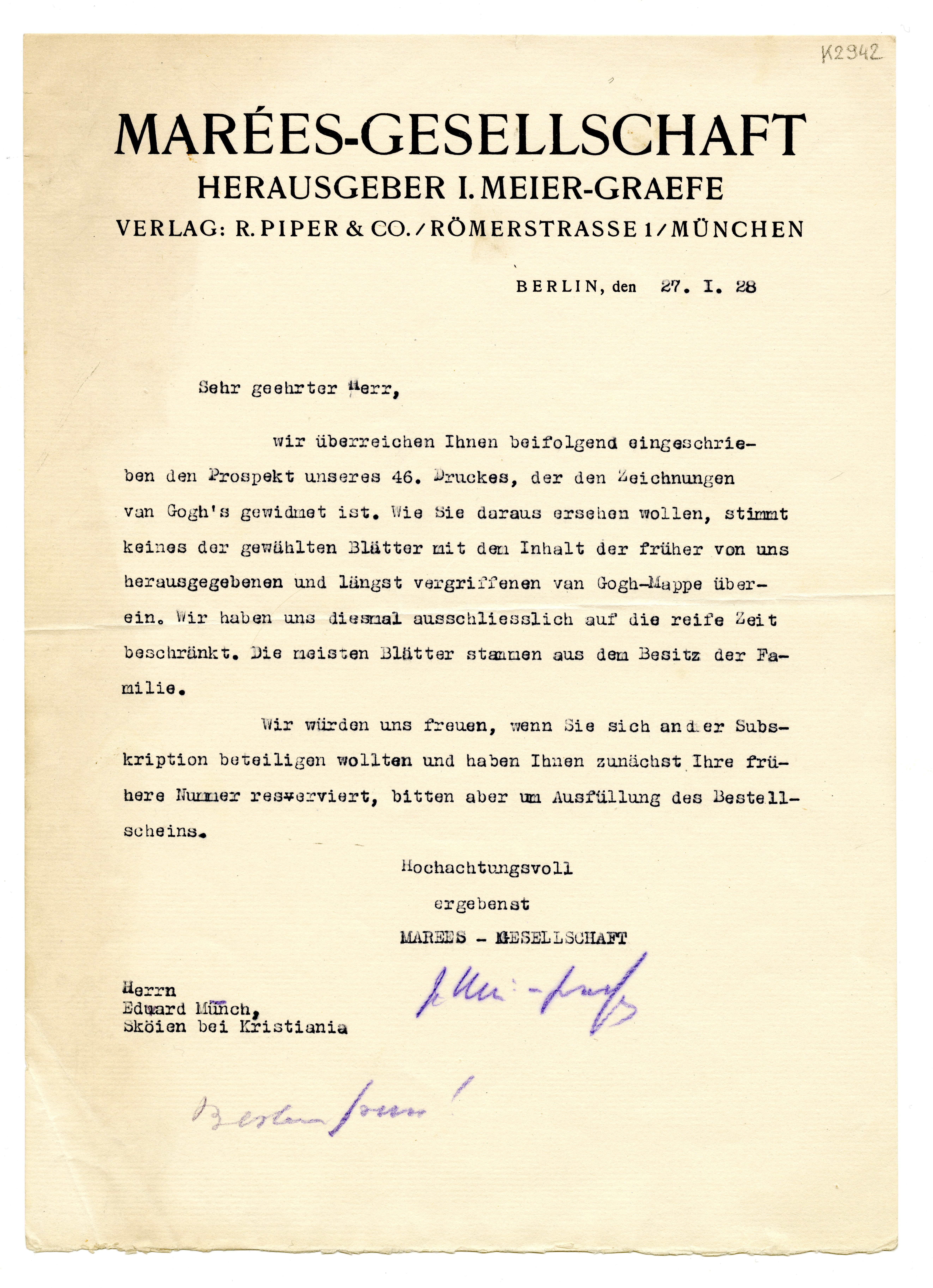 MM K 2942, Munchmuseet. Datert 27.01.1928. Brev fra Julius Meier-Graefe.