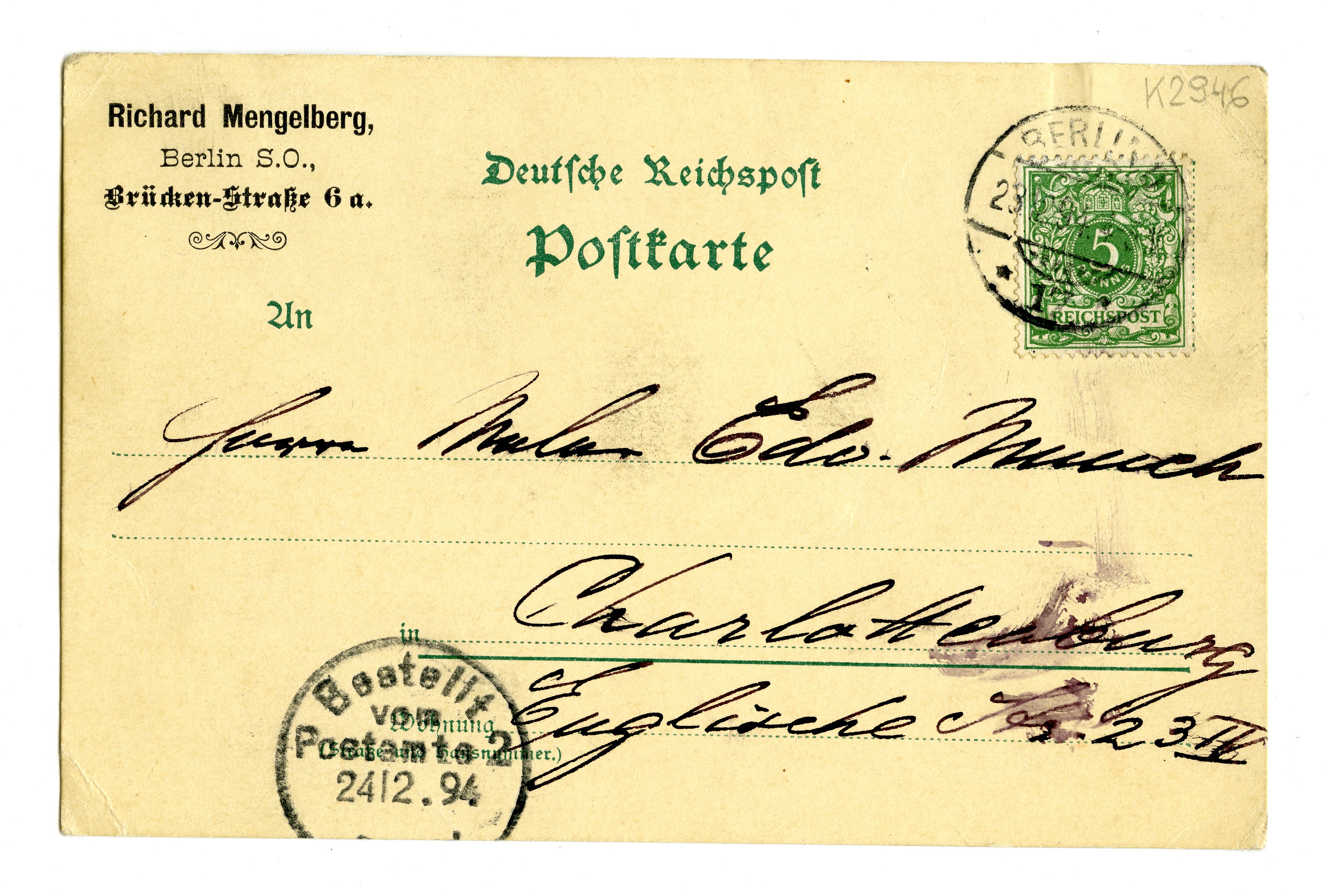 MM K 2946, Munchmuseet. Datert 23.02.1894. Brev fra Richard Mengelberg.