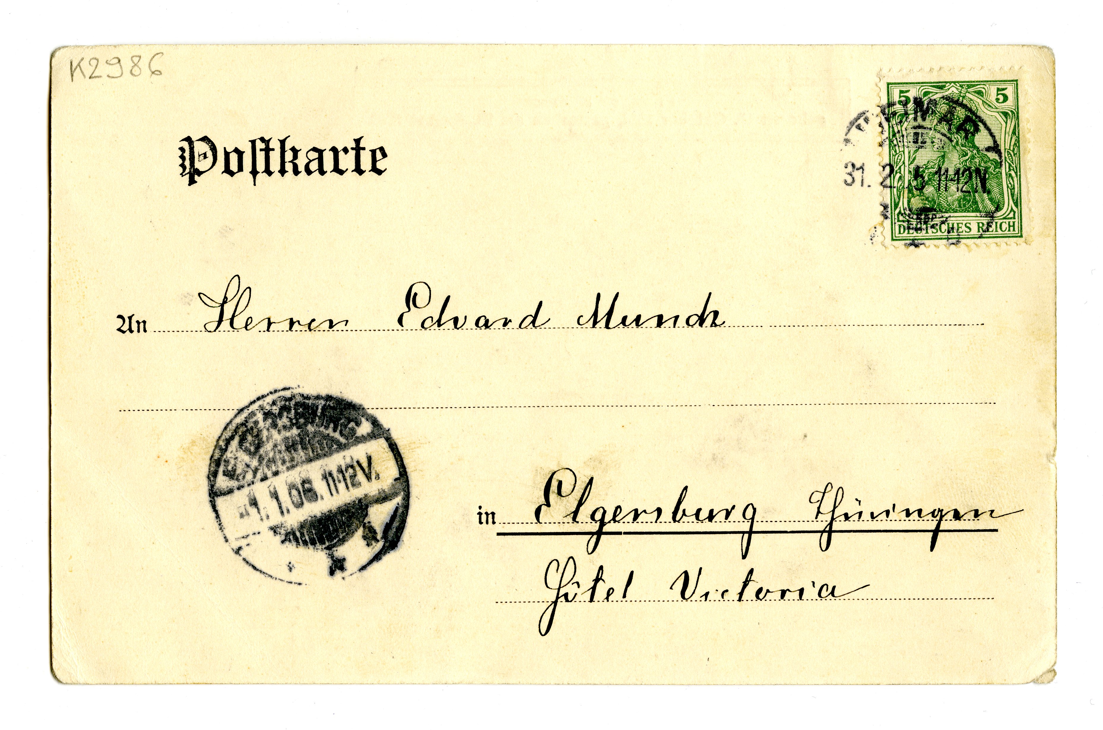 MM K 2986, Munchmuseet. Datert 01.01.1906. Brev fra Elisabeth Förster-Nietzsche, Nietzsche-Archiv.