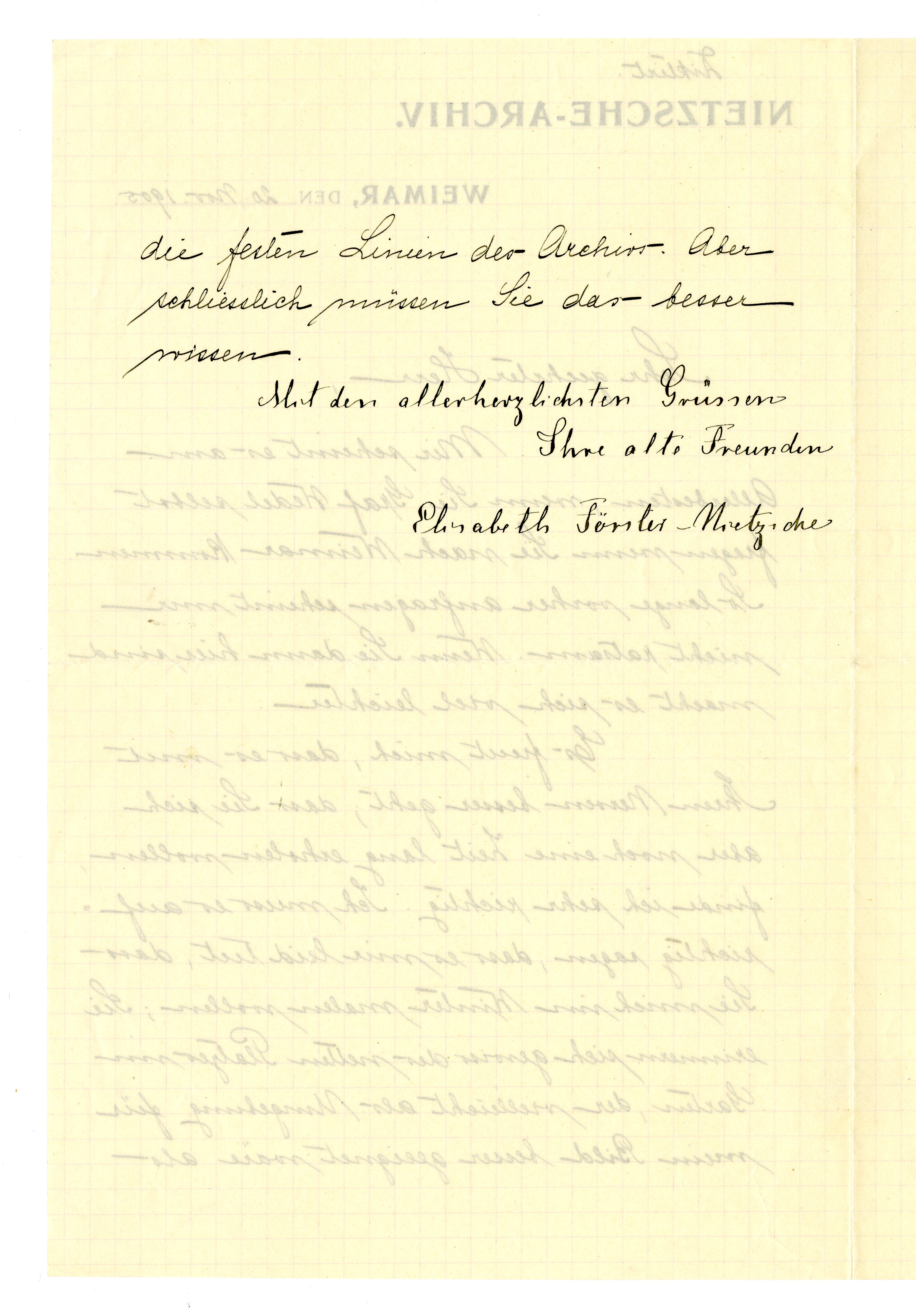 MM K 2992, Munchmuseet. Datert 20.11.1905. Brev fra Elisabeth Förster-Nietzsche, Nietzsche-Archiv.