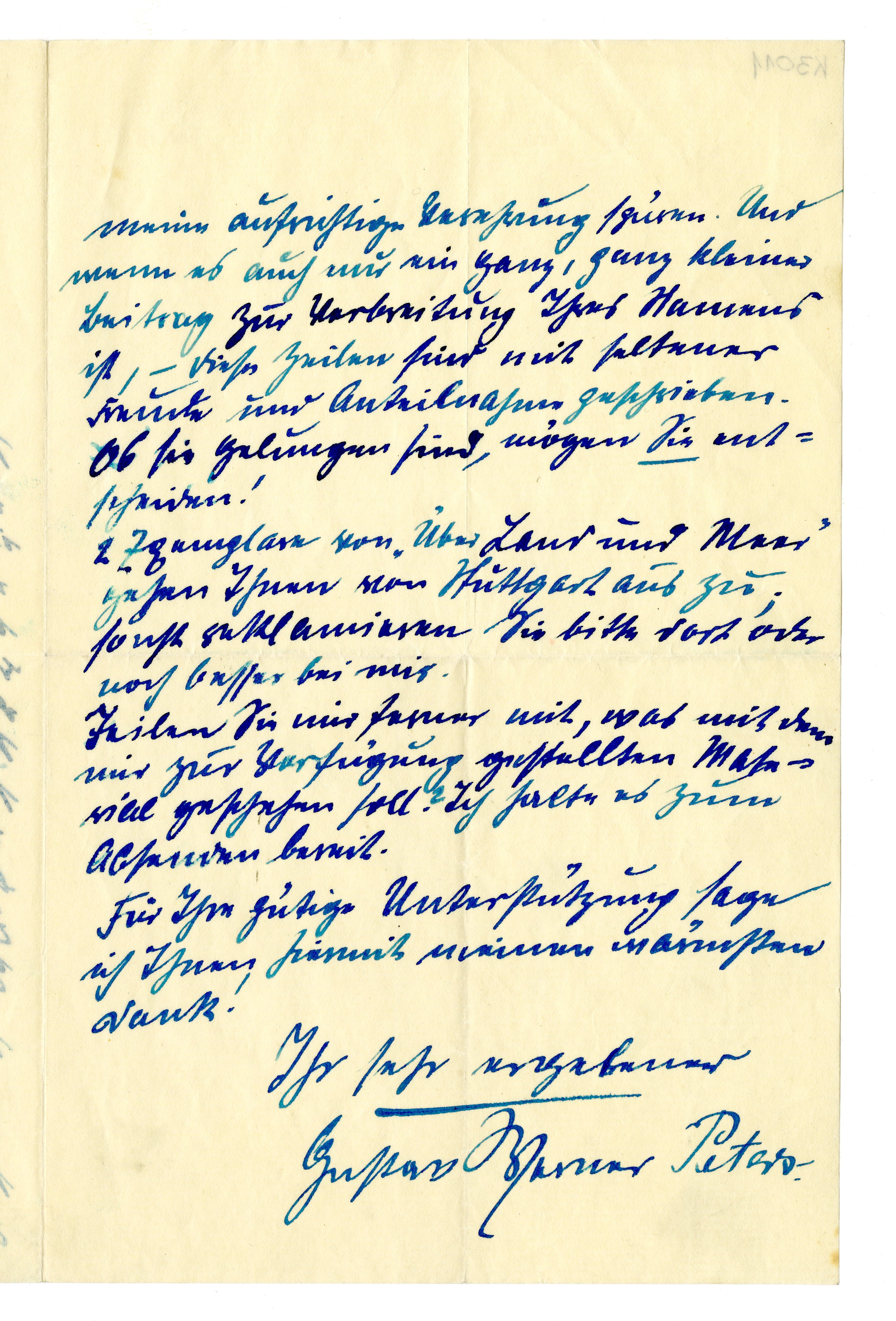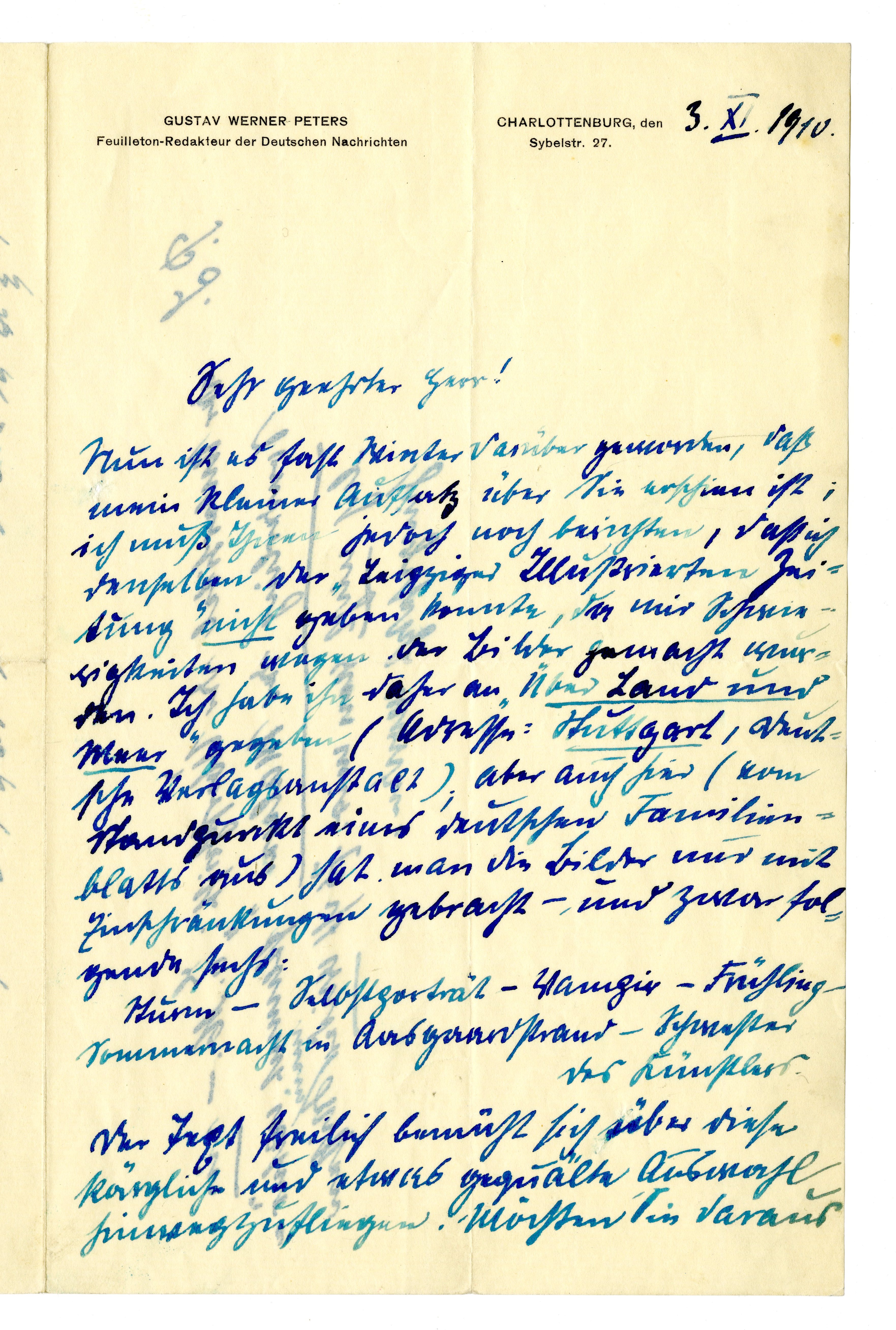 MM K 3011, Munchmuseet. Datert 03.11.1910. Brev fra Gustav Werner Peters.