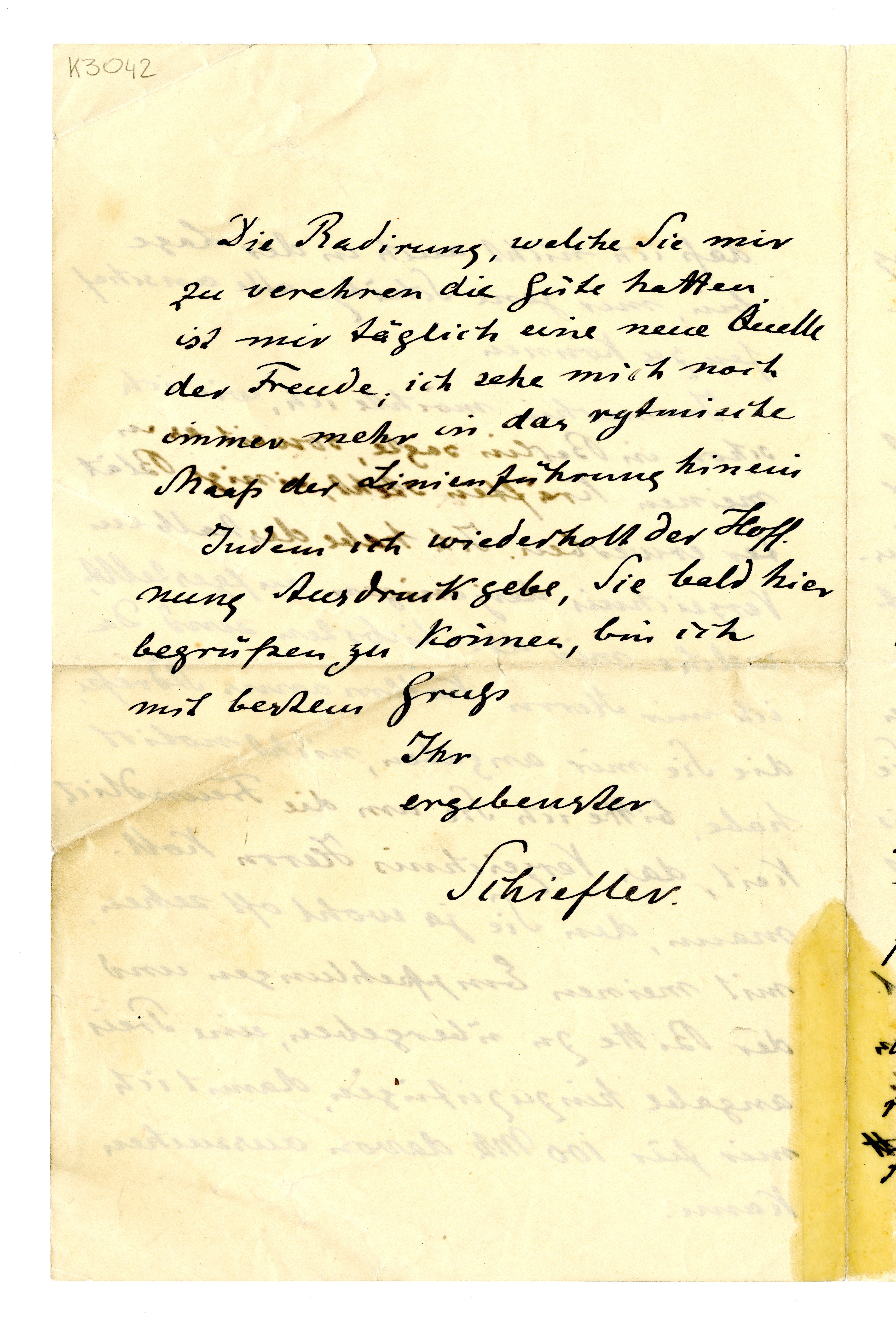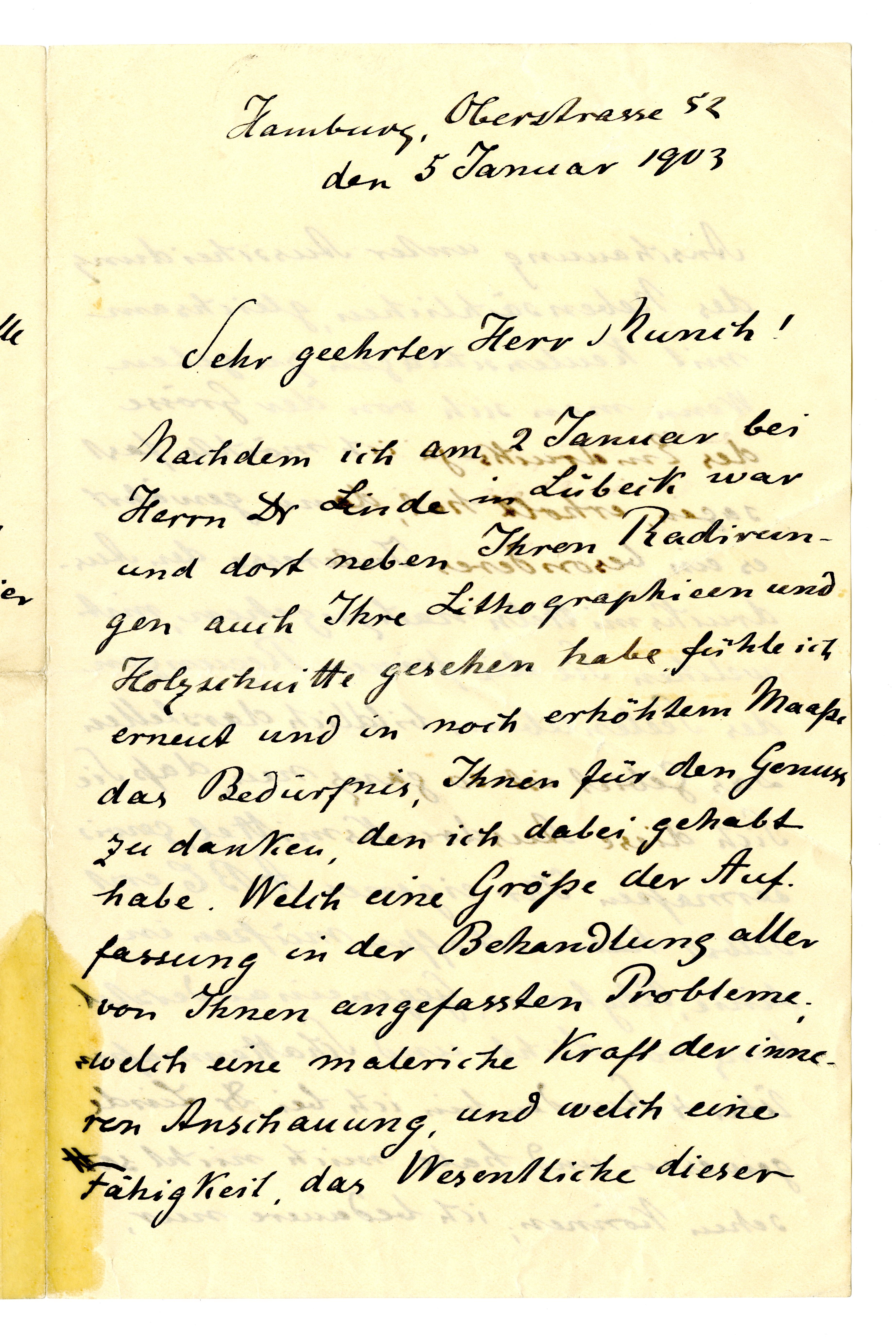 MM K 3042, Munchmuseet. Datert 05.01.1903. Brev fra Gustav Schiefler.