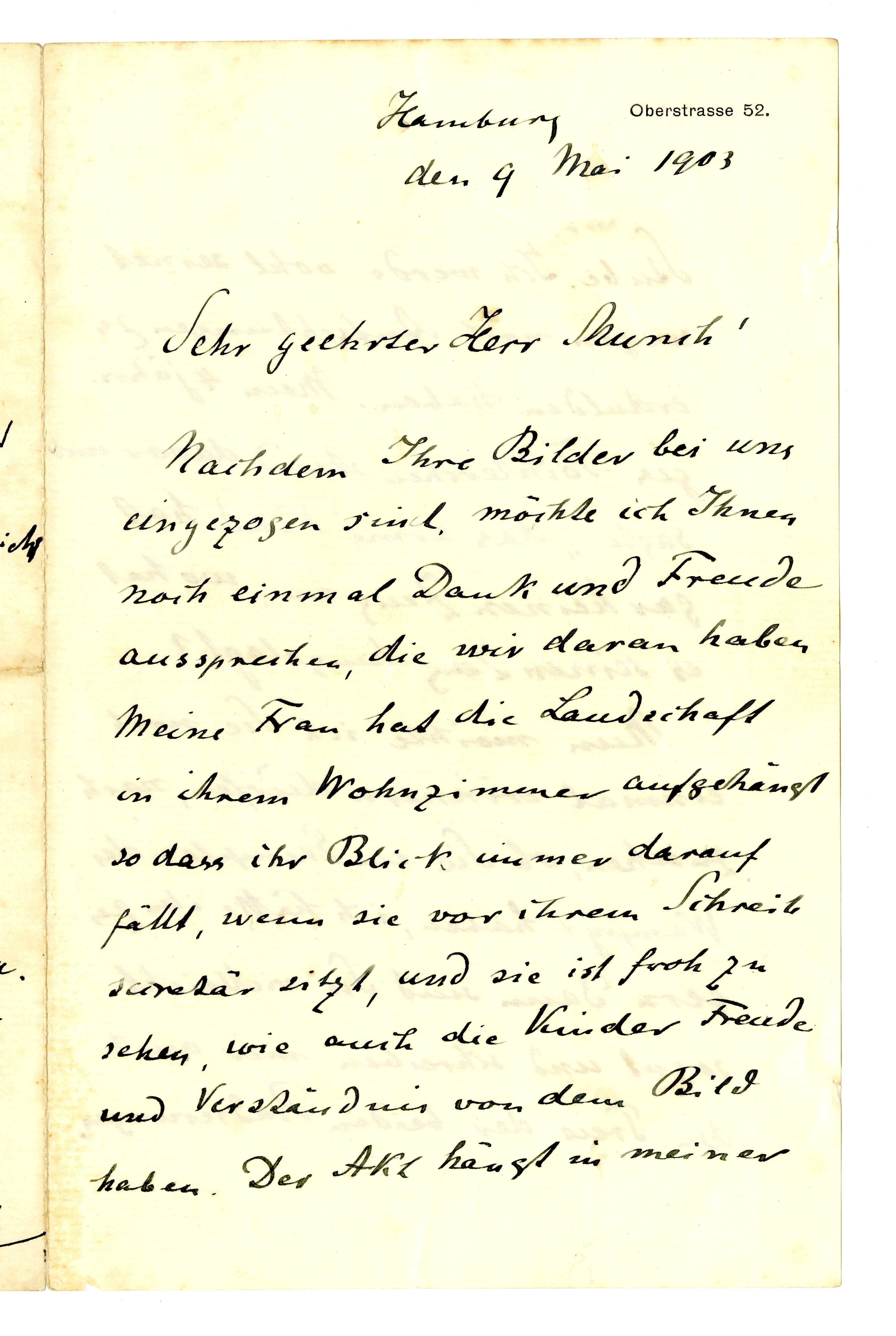 MM K 3043, Munchmuseet. Datert 09.05.1903. Brev fra Gustav Schiefler, Max Linde.