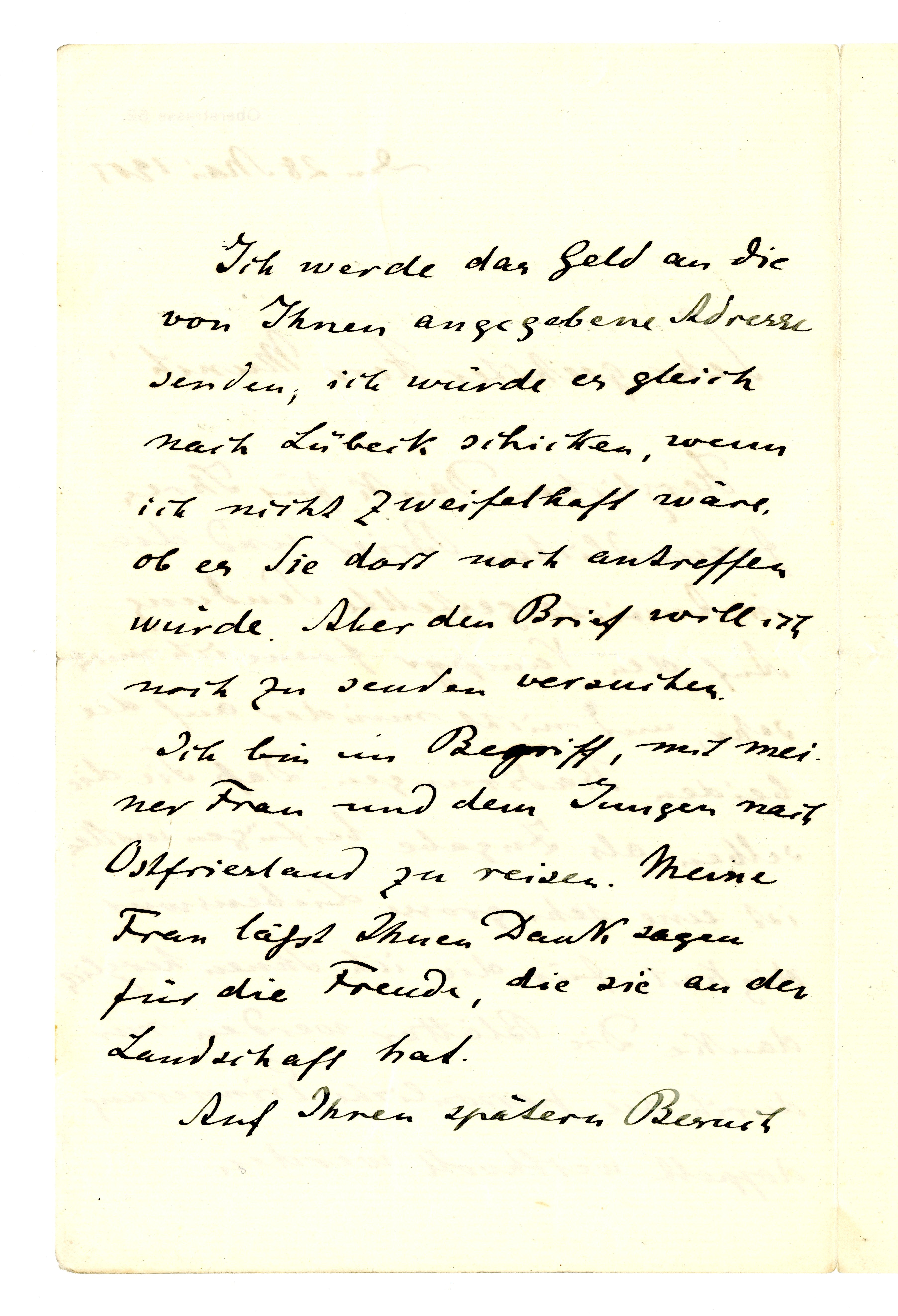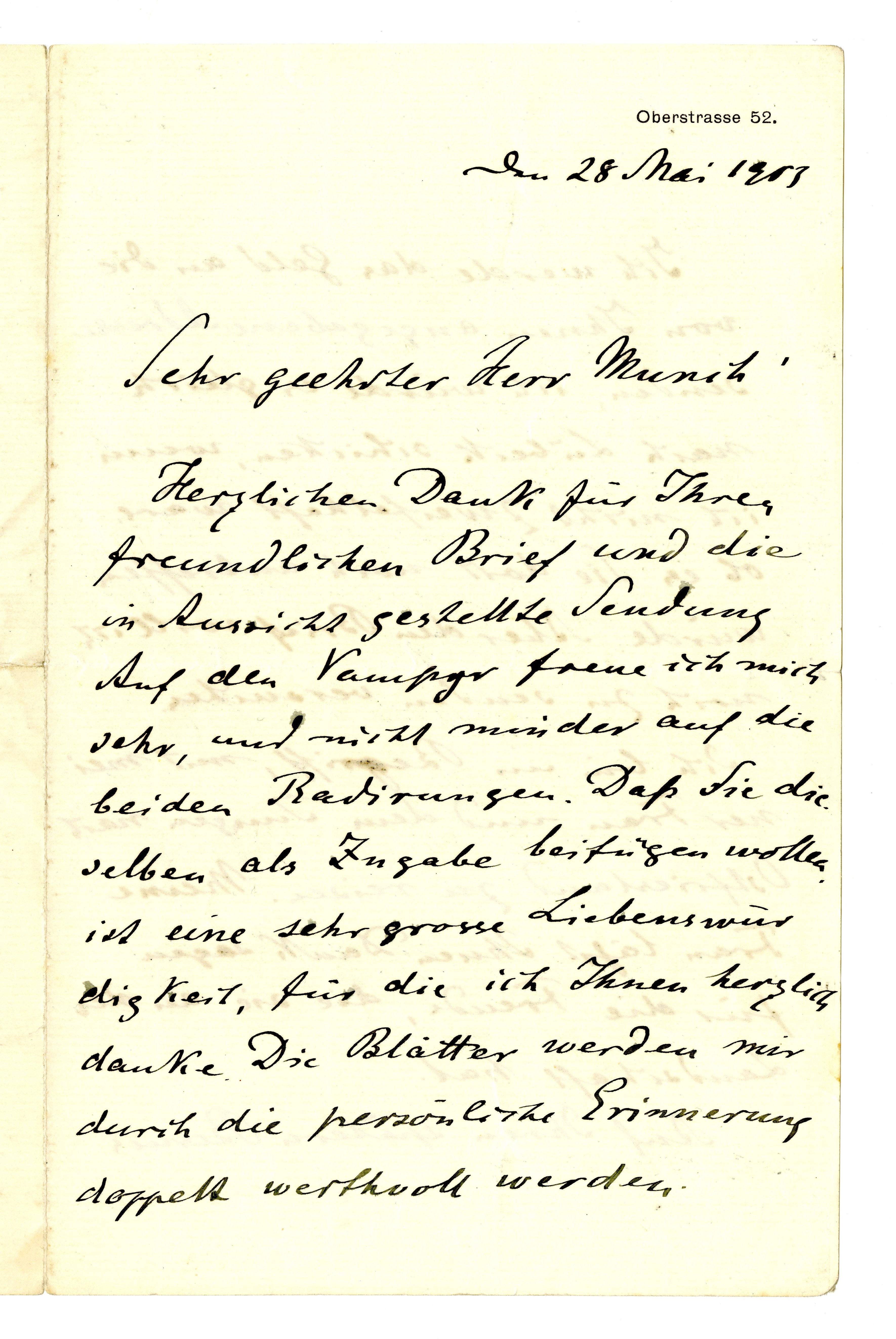 MM K 3044, Munchmuseet. Datert 28.05.1903. Brev fra Gustav Schiefler.