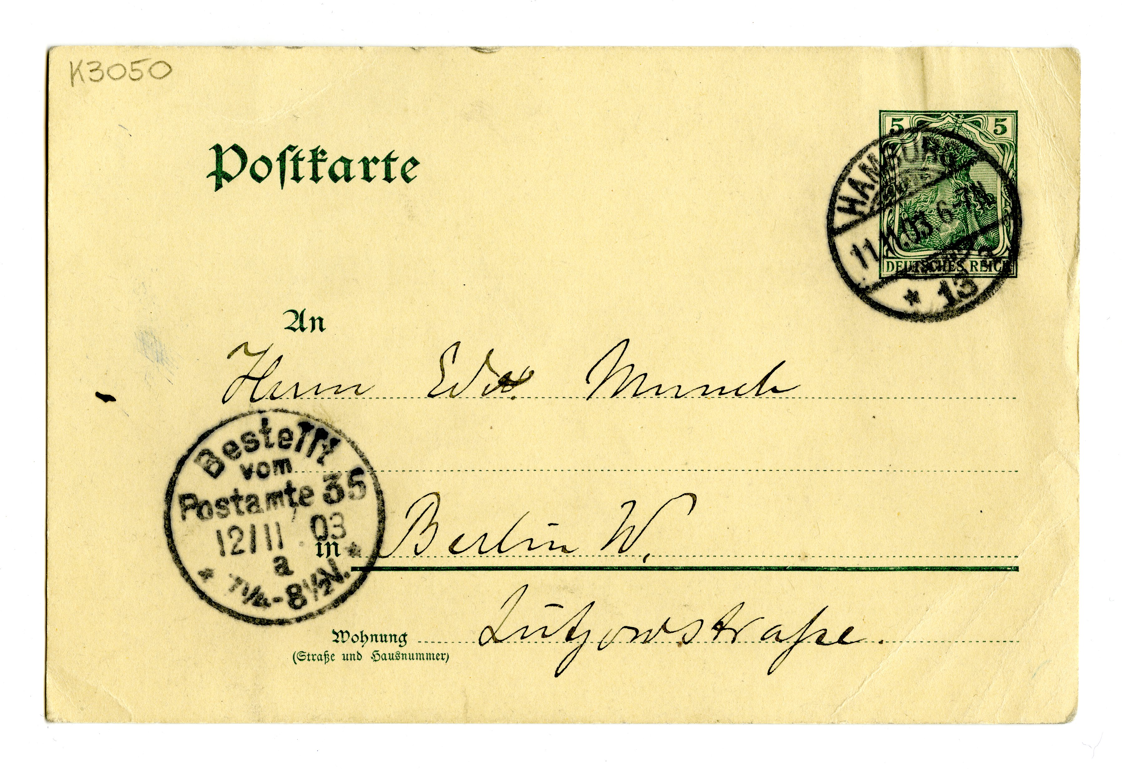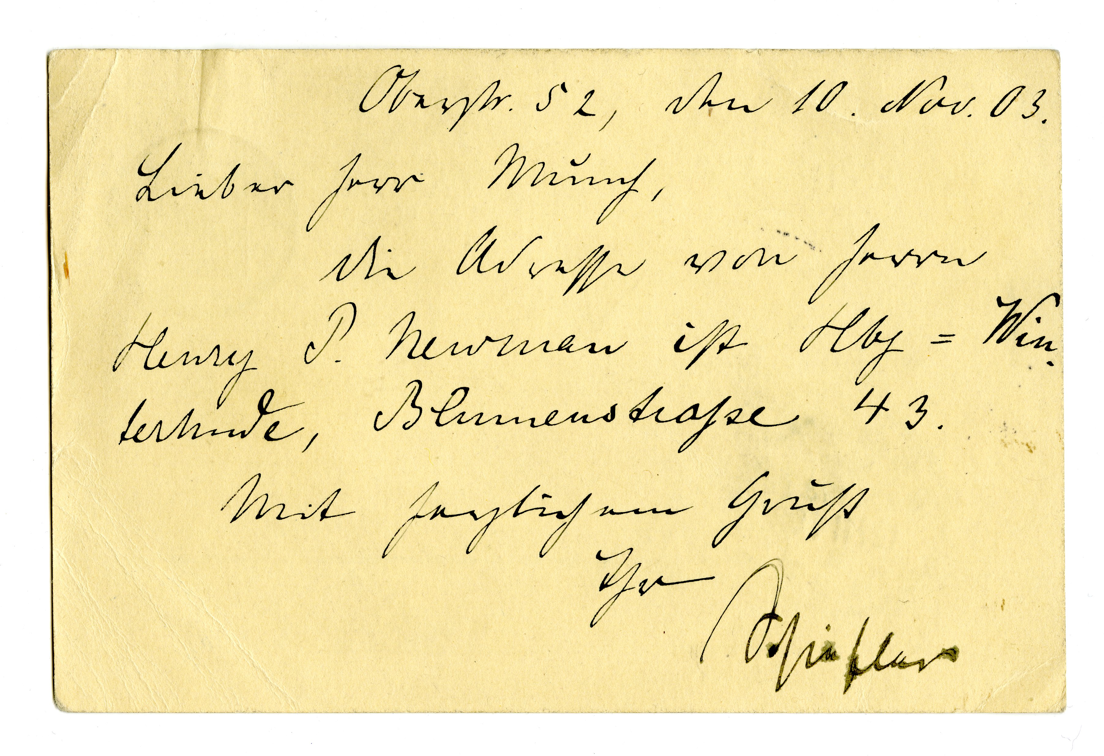 MM K 3050, Munchmuseet. Datert 10.11.1903. Brev fra Gustav Schiefler.