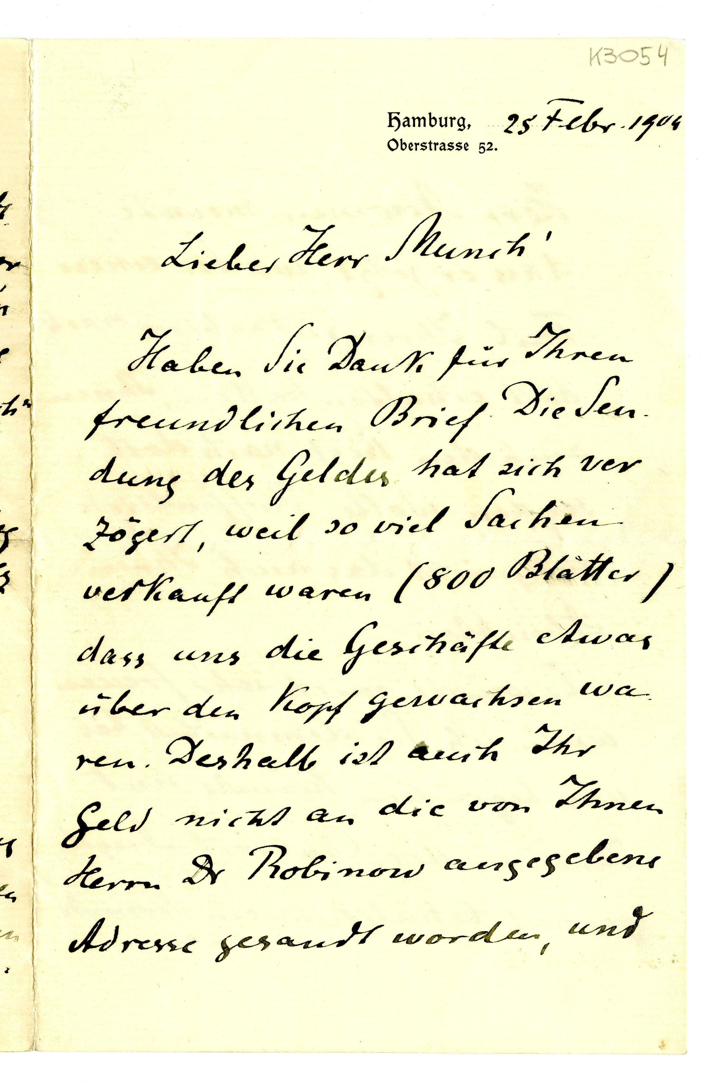 MM K 3054, Munchmuseet. Datert 25.02.1904. Brev fra Gustav Schiefler.
