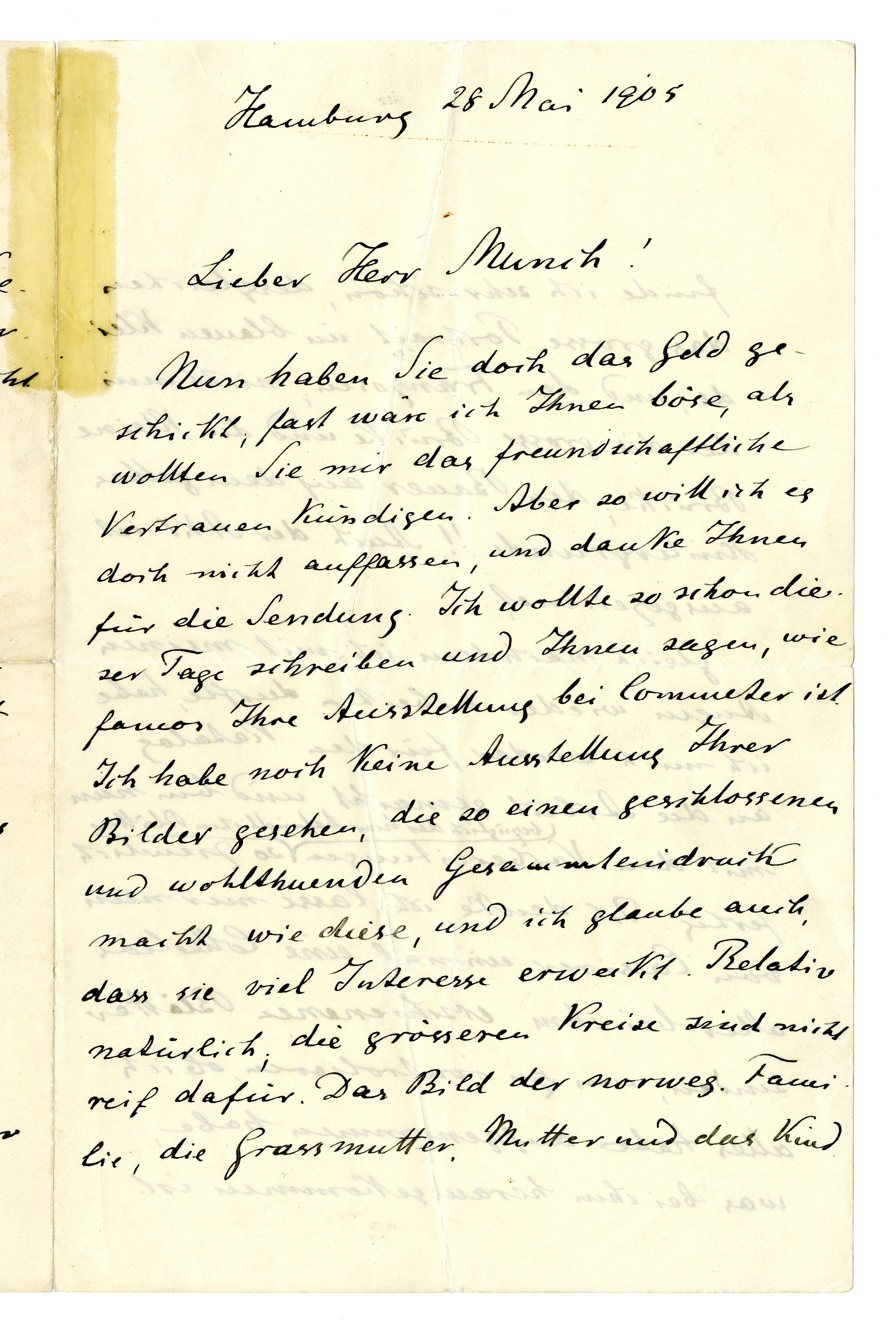 MM K 3072, Munchmuseet. Datert 28.05.1905. Brev fra Gustav Schiefler.