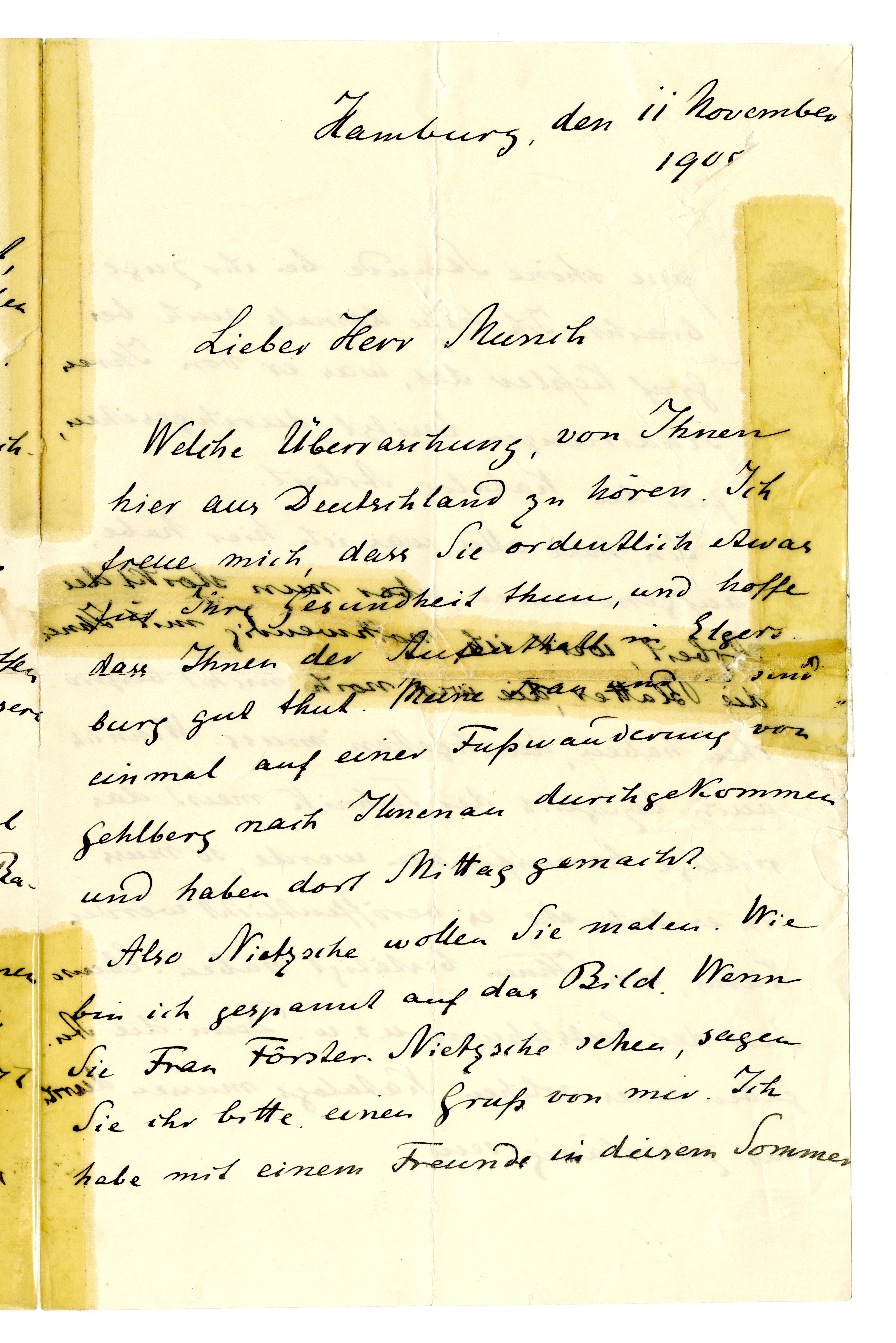 MM K 3076, Munchmuseet. Datert 11.11.1905. Brev fra Gustav Schiefler.