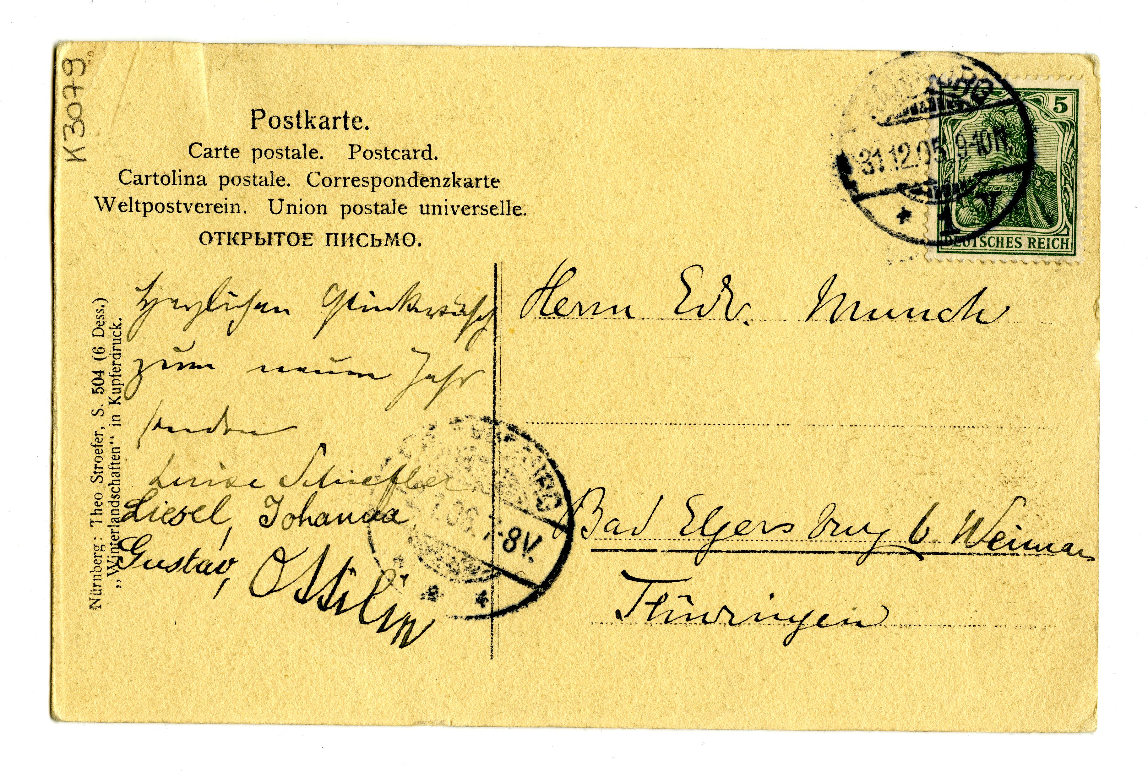 MM K 3079, Munchmuseet. Datert 31.12.1905. Brev fra Gustav Schiefler, Luise Schiefler, Ottilie Schiefler.