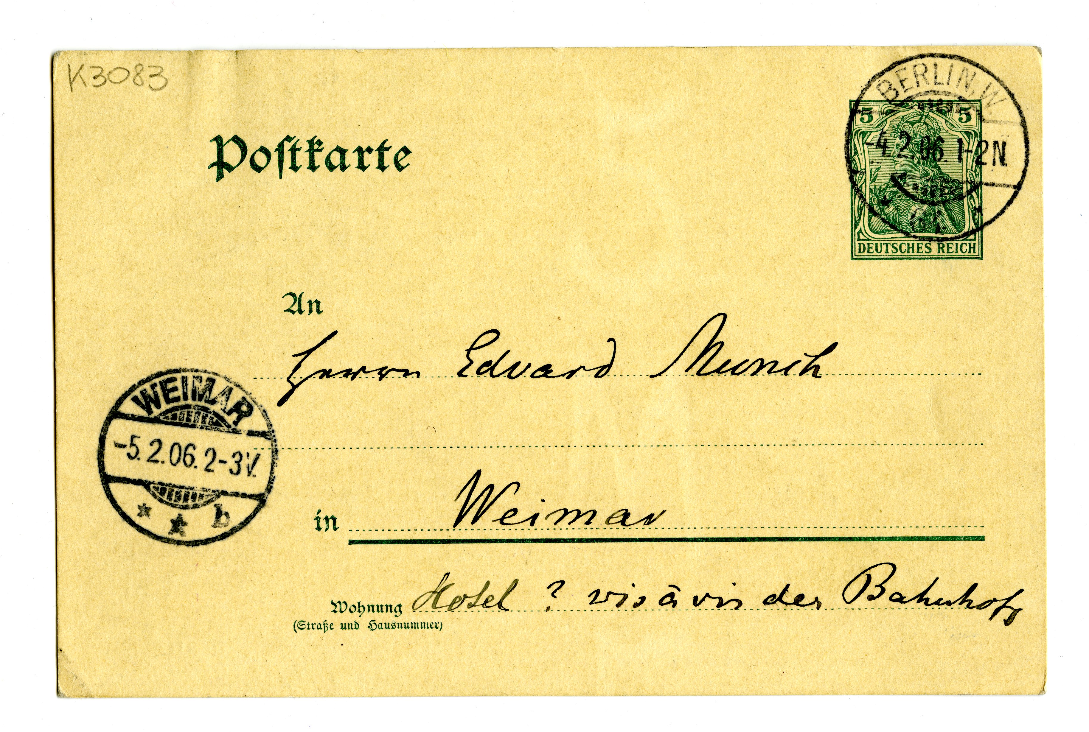 MM K 3083, Munchmuseet. Datert 04.02.1906. Brev fra Gustav Schiefler.