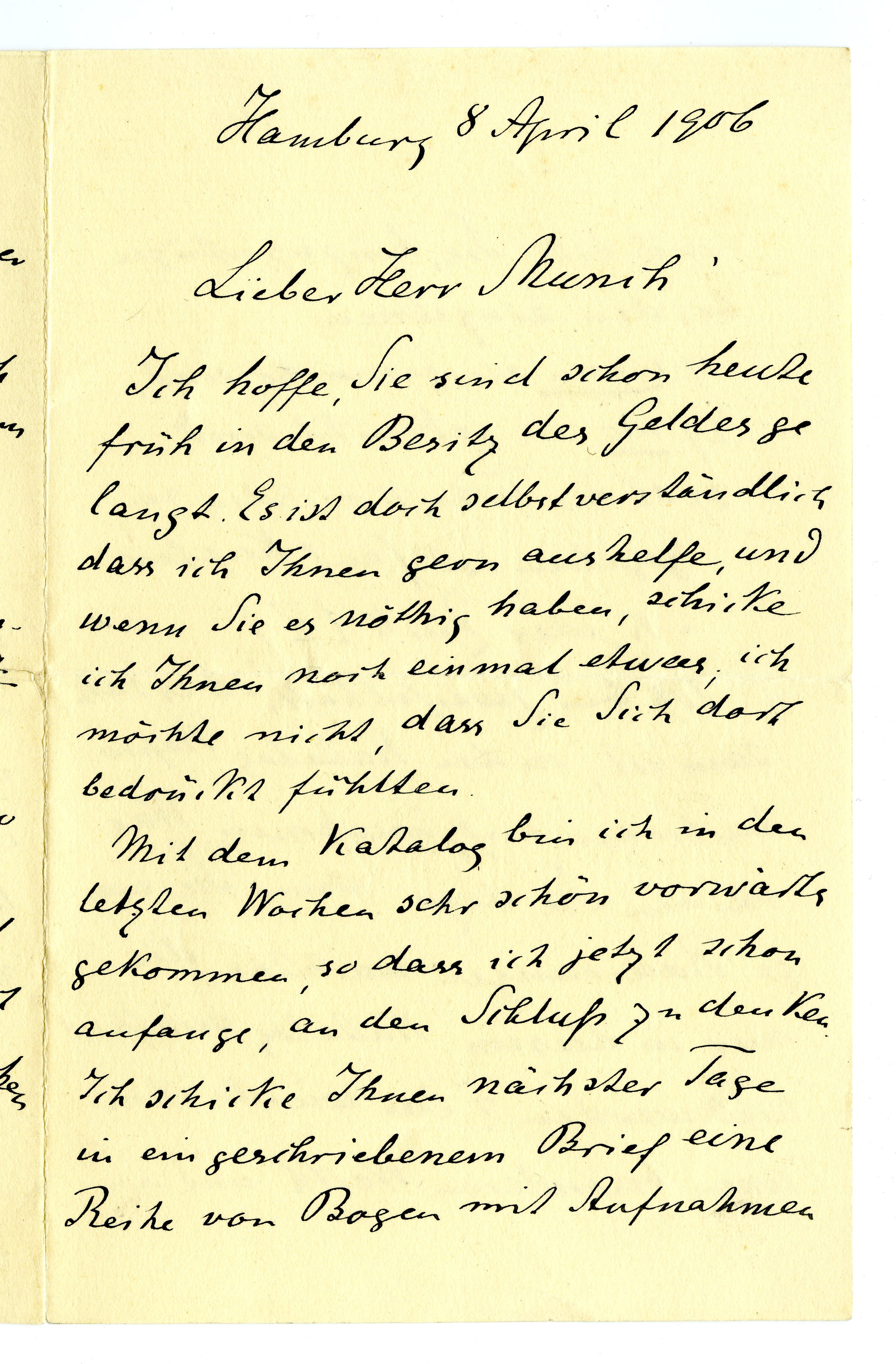 MM K 3091, Munchmuseet. Datert 08.04.1906. Brev fra Gustav Schiefler.