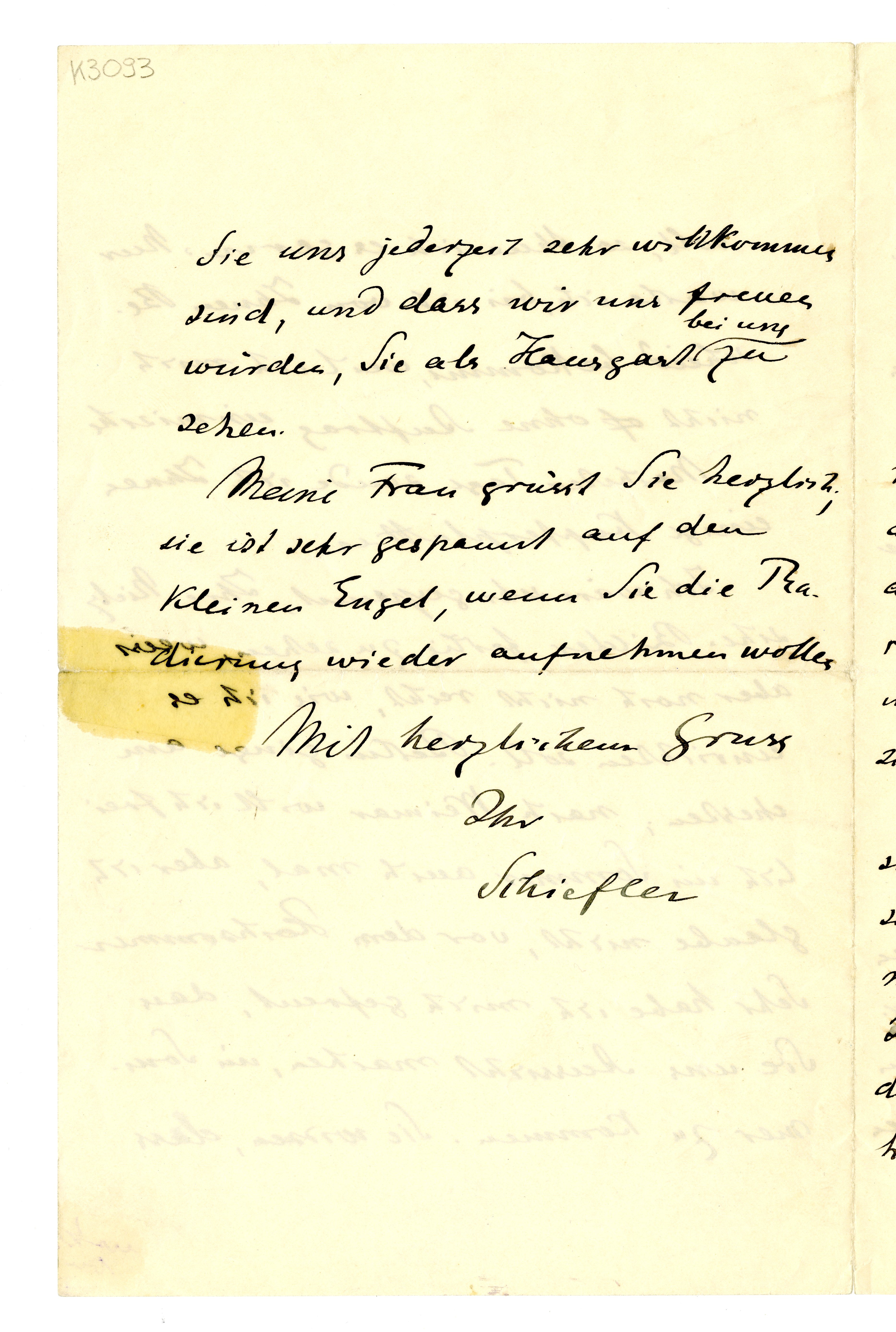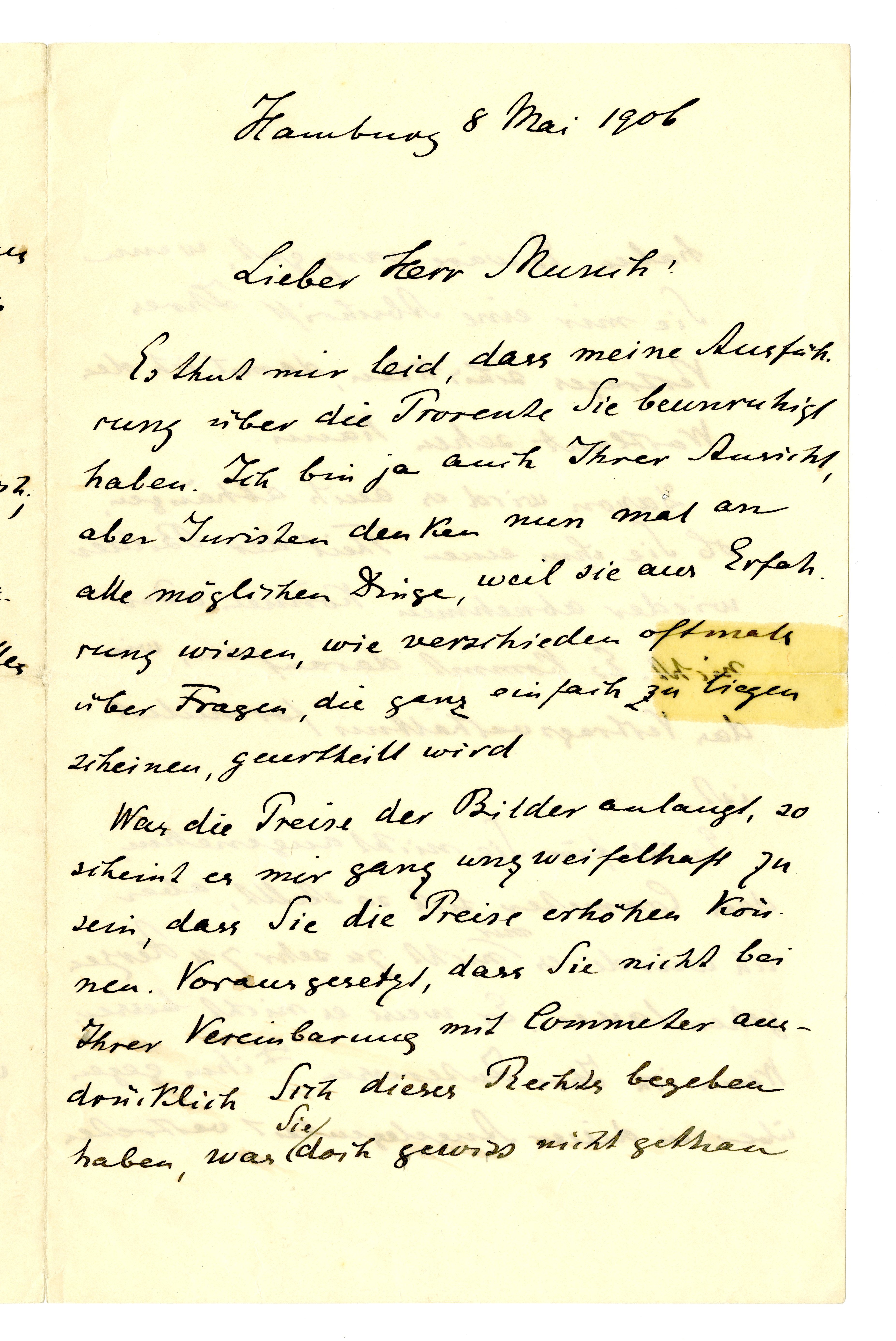 MM K 3093, Munchmuseet. Datert 08.05.1906. Brev fra Gustav Schiefler.