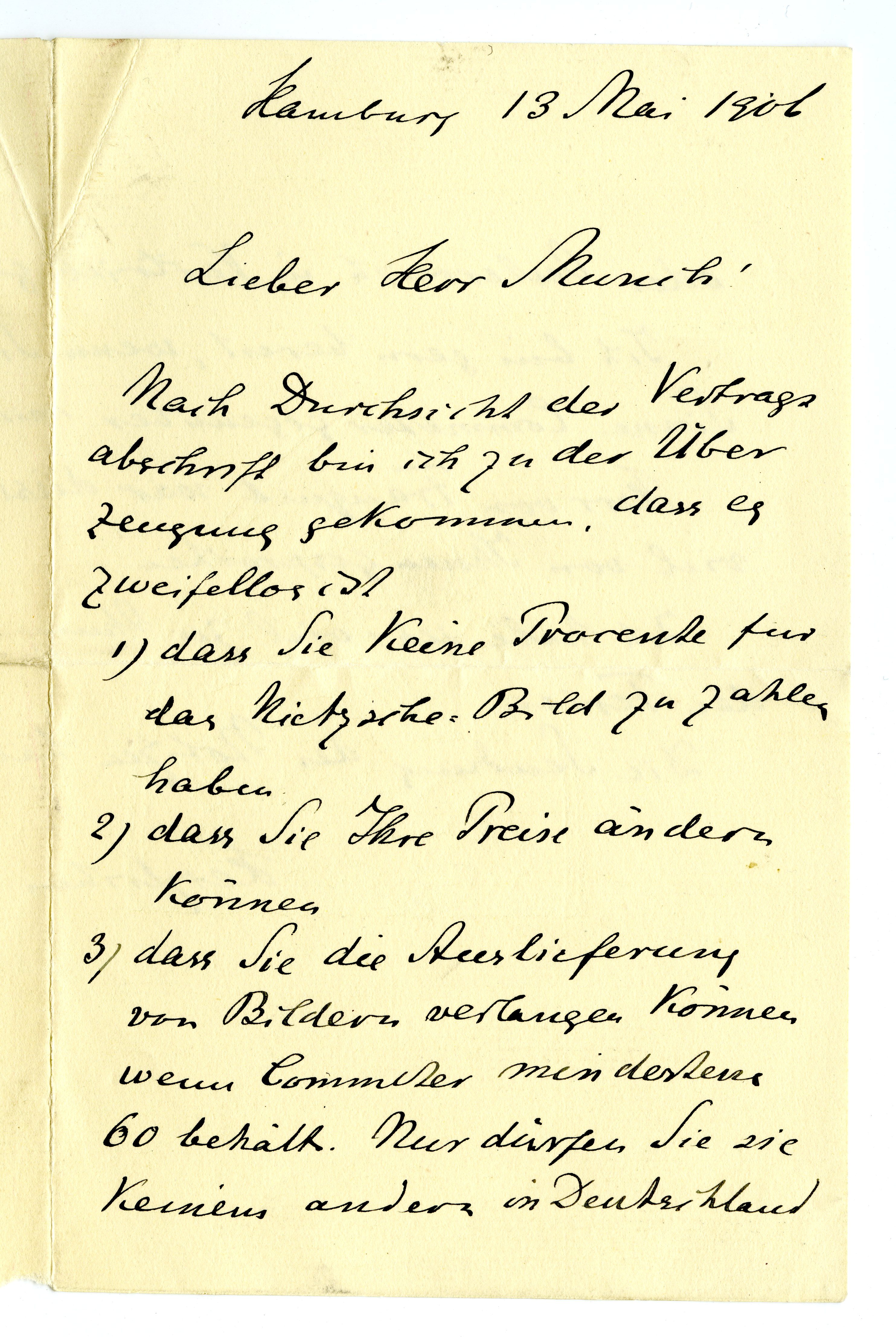 MM K 3094, Munchmuseet. Datert 13.05.1906. Brev fra Gustav Schiefler.