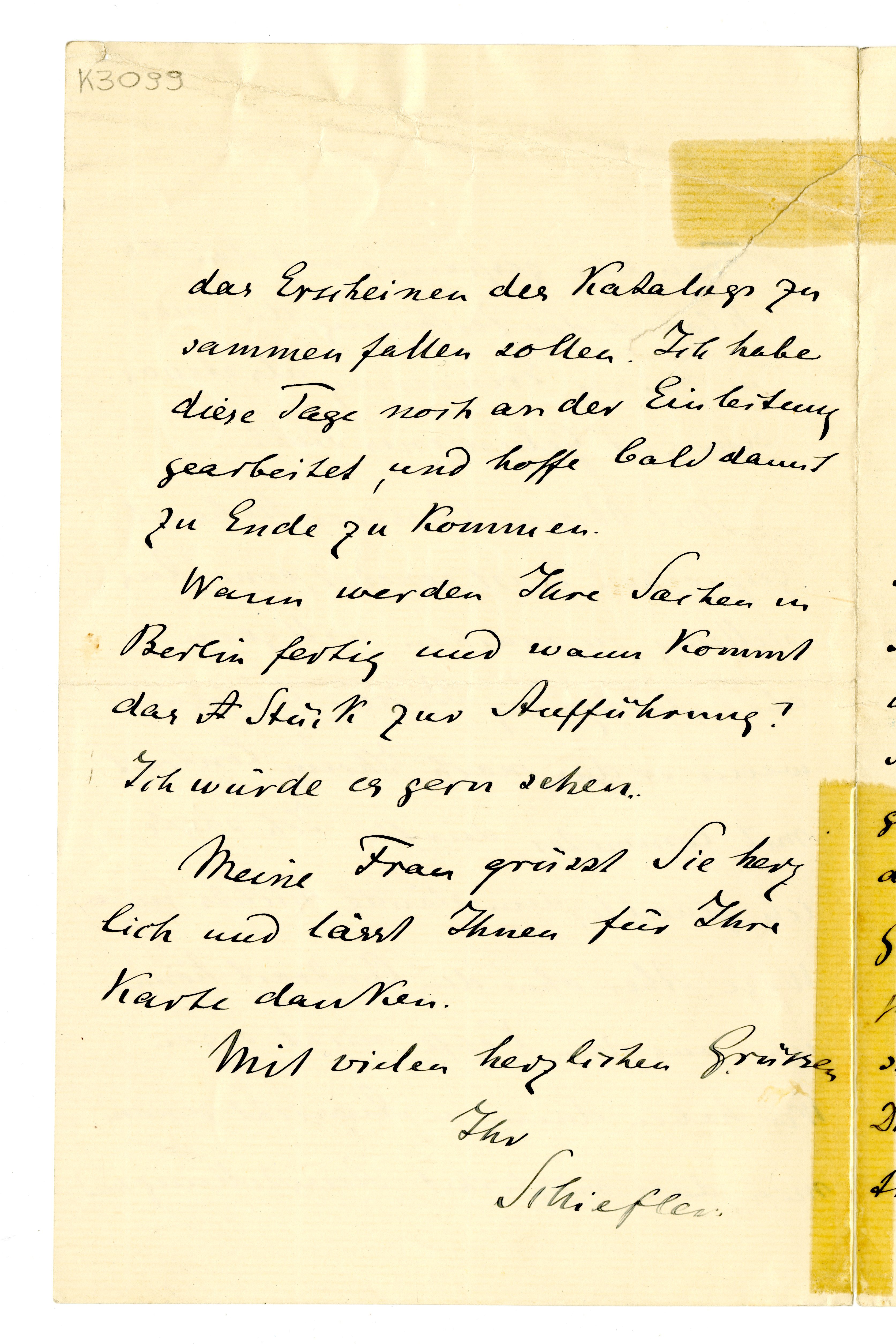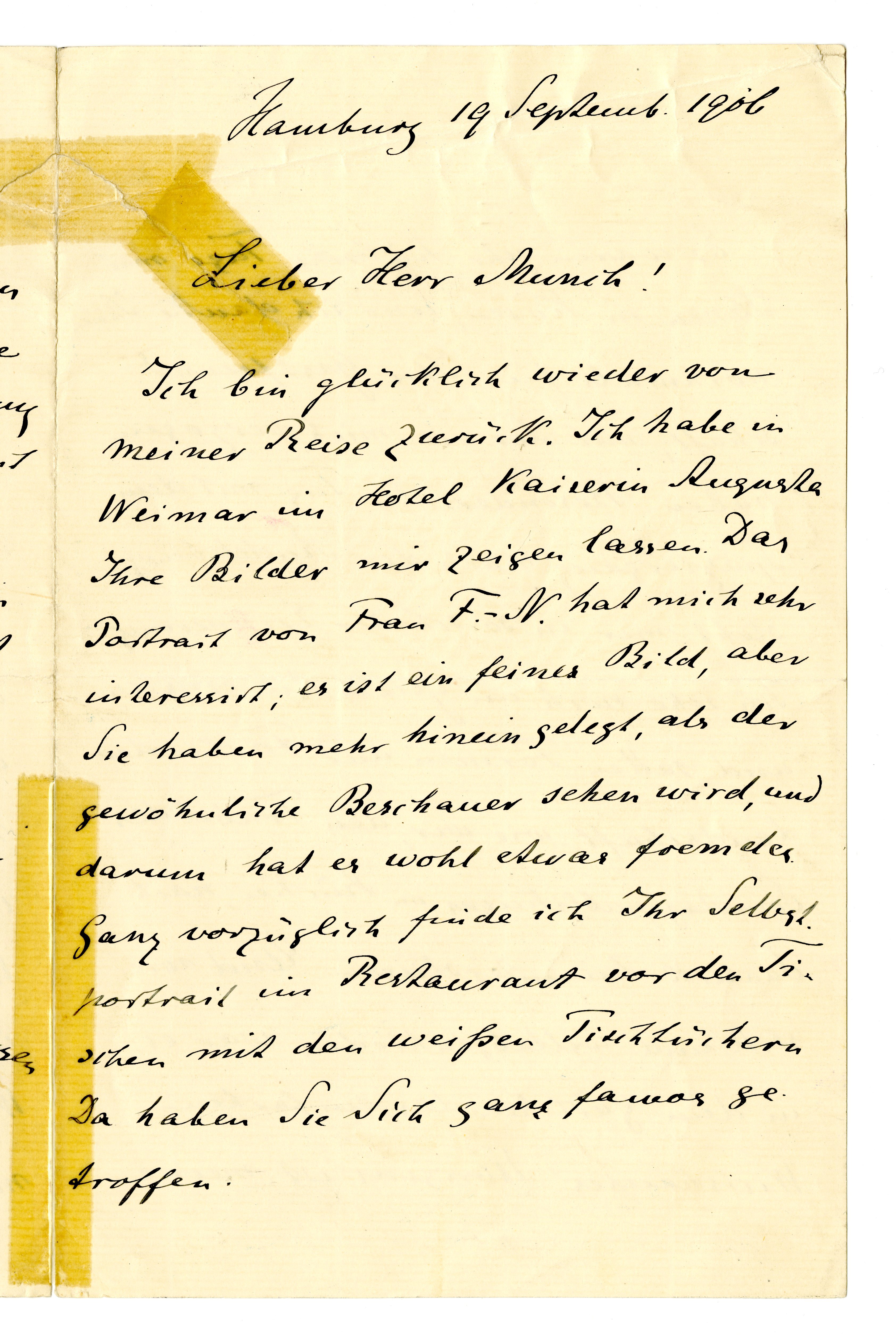 MM K 3099, Munchmuseet. Datert 19.09.1906. Brev fra Gustav Schiefler.