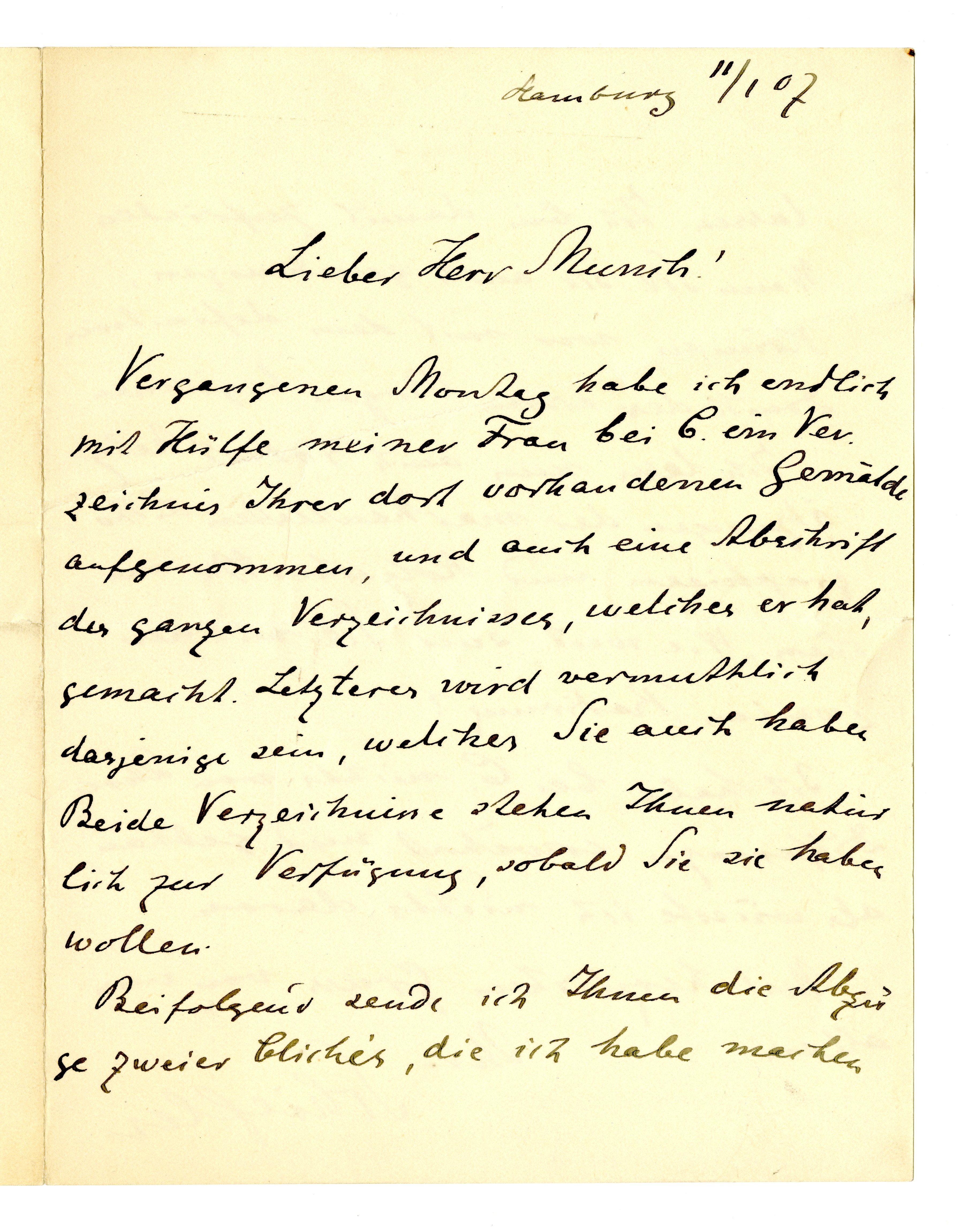 MM K 3108, Munchmuseet. Datert 11.01.1907. Brev fra Gustav Schiefler.