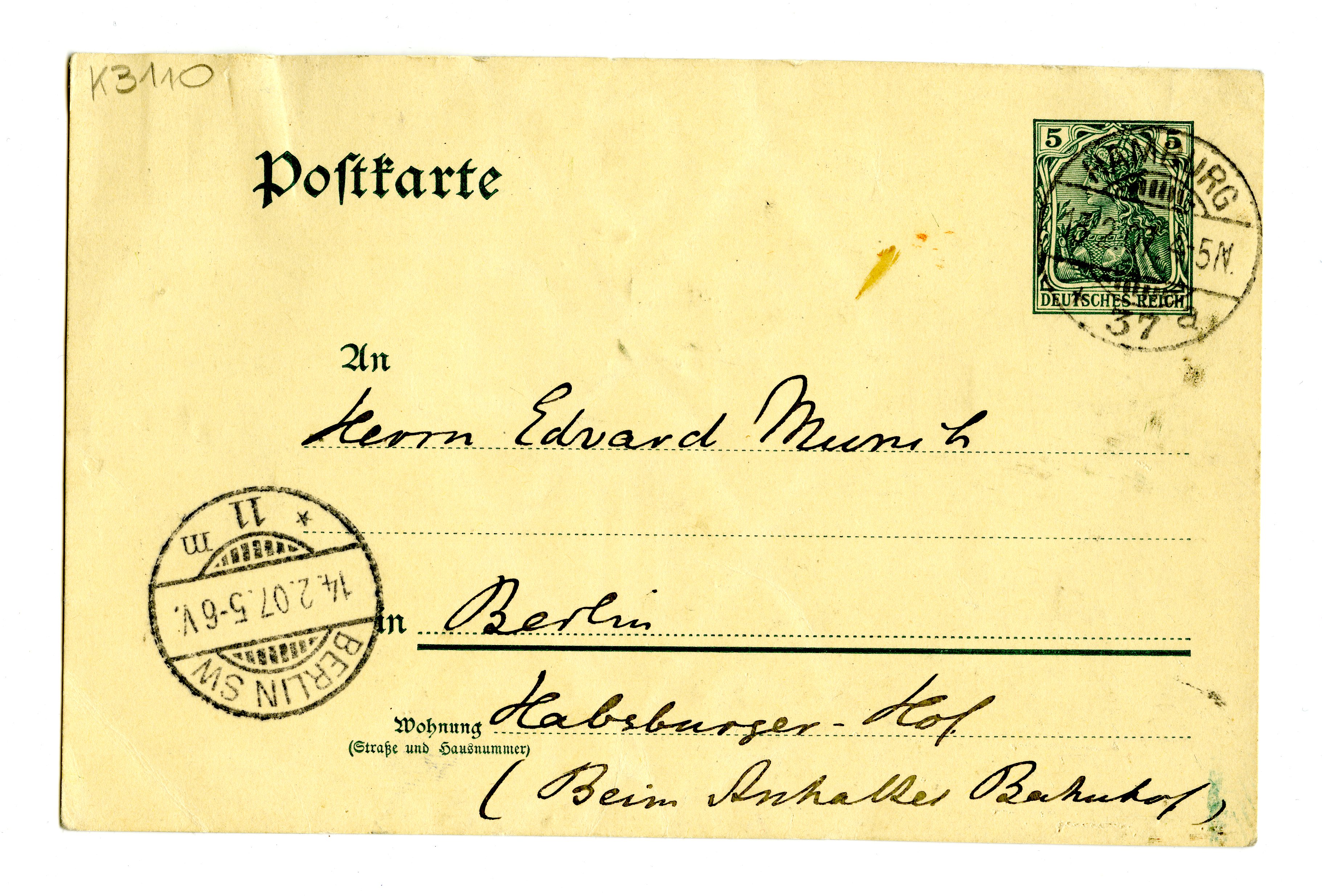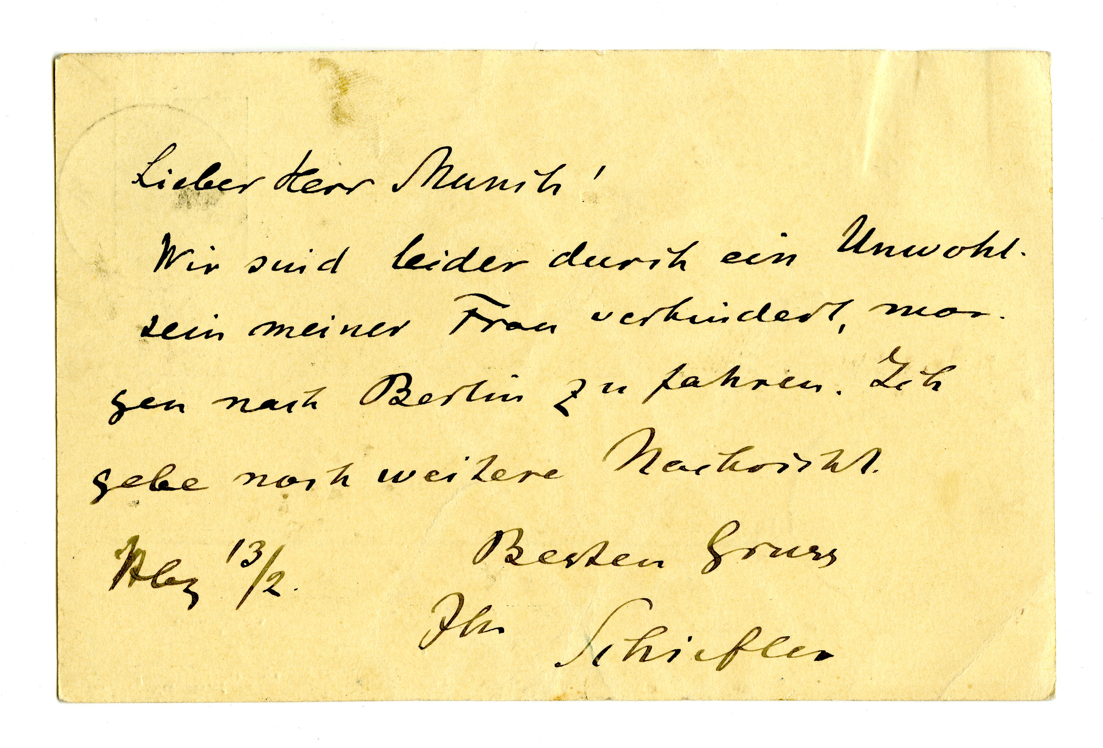 MM K 3110, Munchmuseet. Datert 13.02.1907. Brev fra Gustav Schiefler.