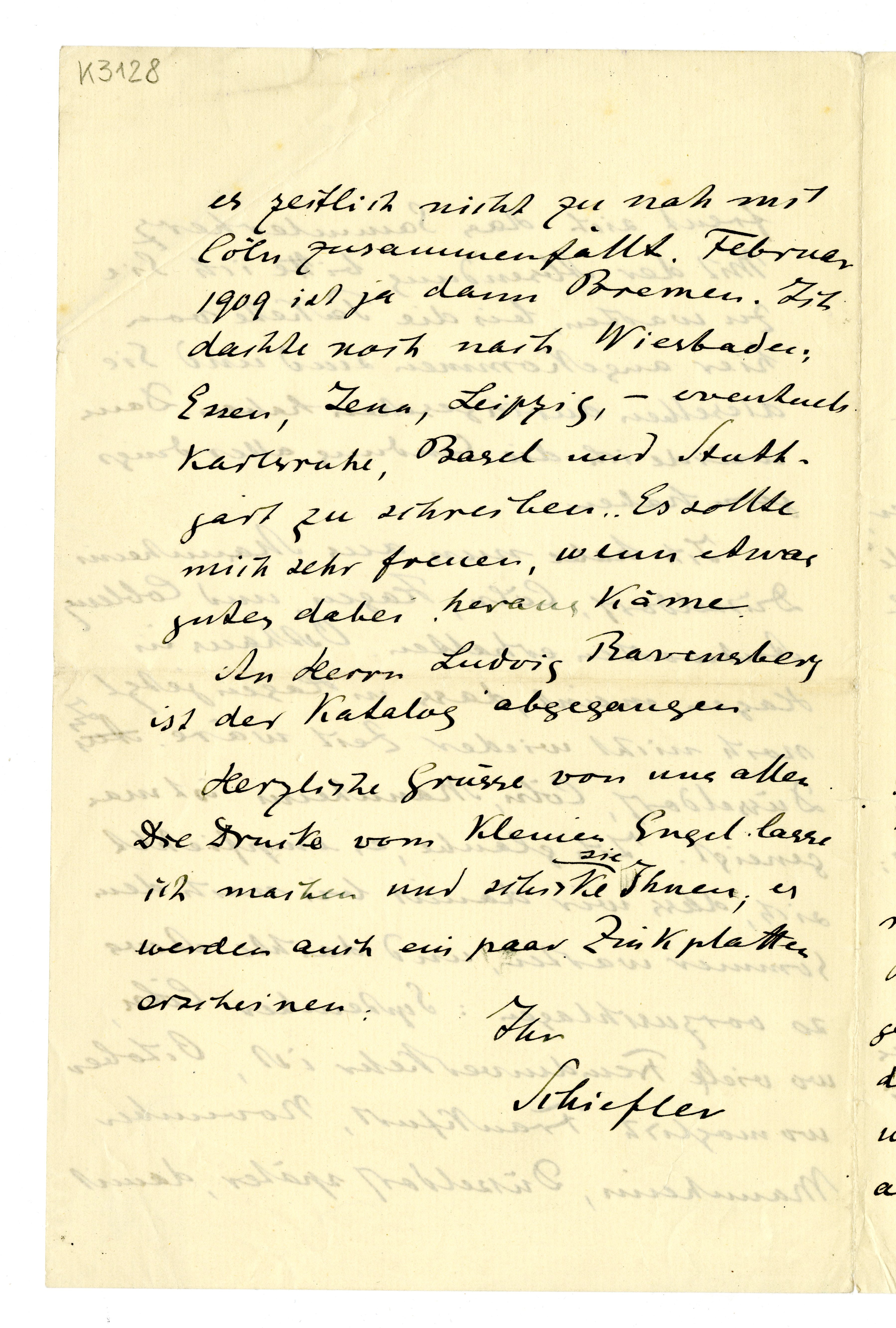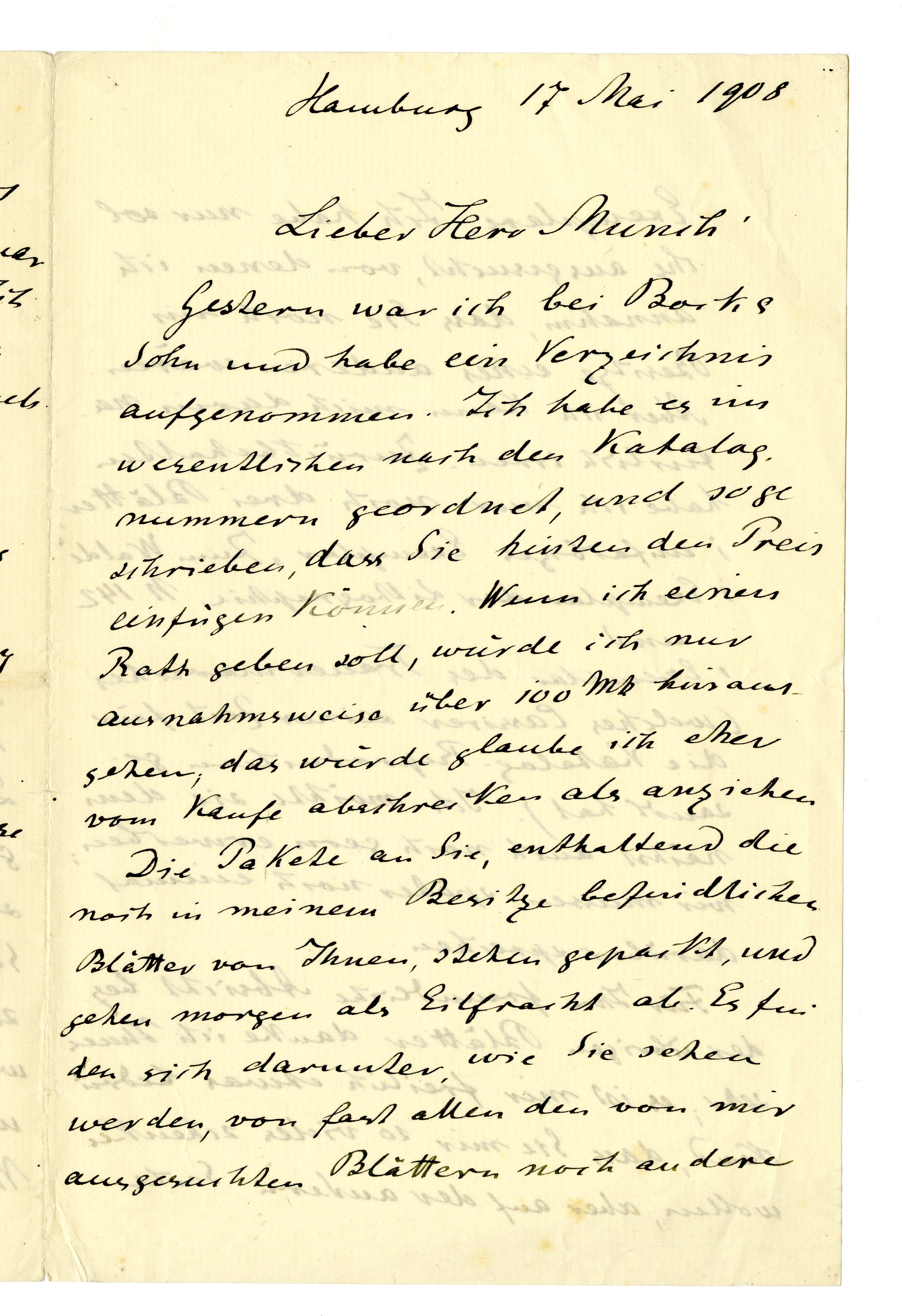 MM K 3128, Munchmuseet. Datert 17.05.1908. Brev fra Gustav Schiefler.