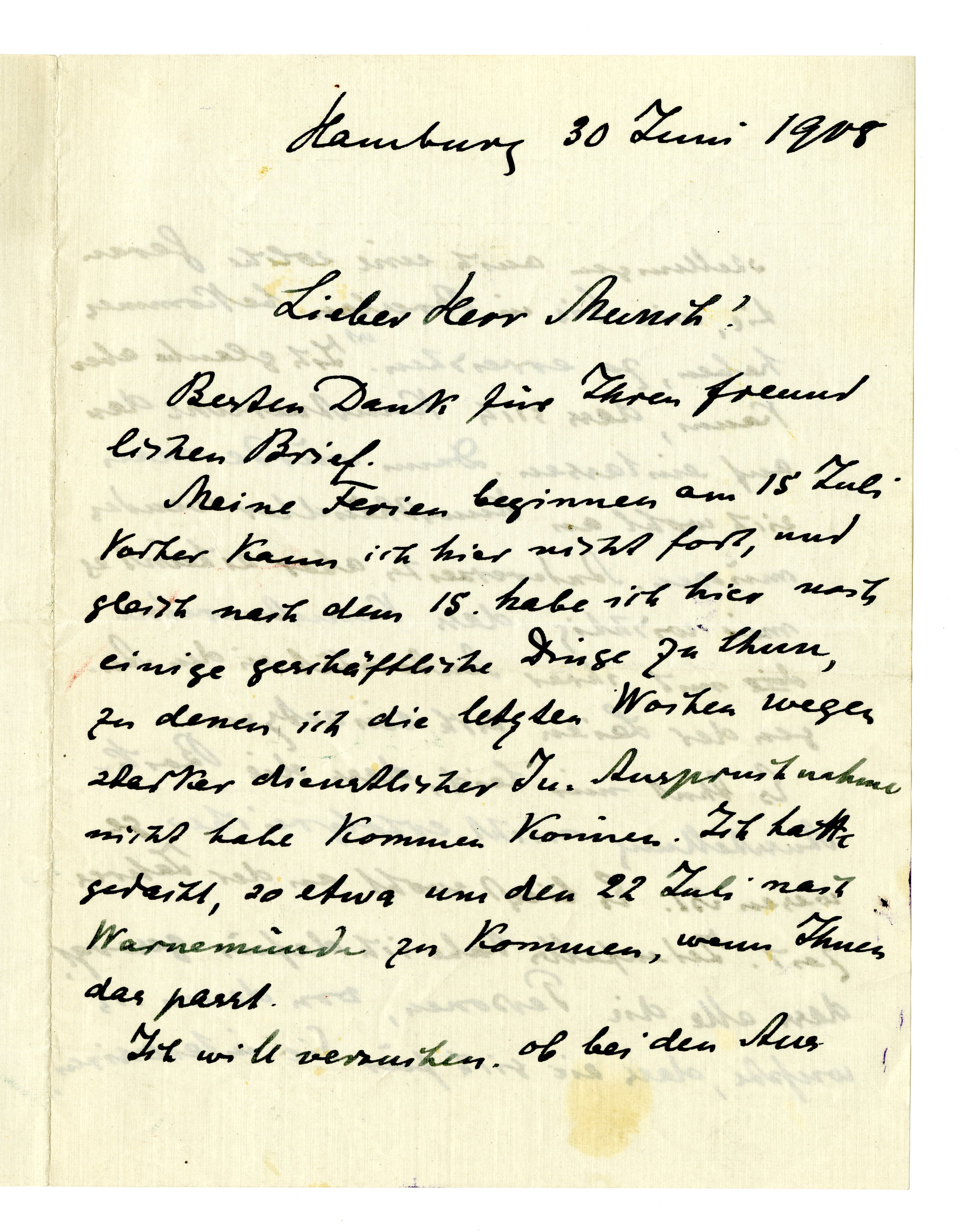MM K 3132, Munchmuseet. Datert 30.06.1908. Brev fra Gustav Schiefler.