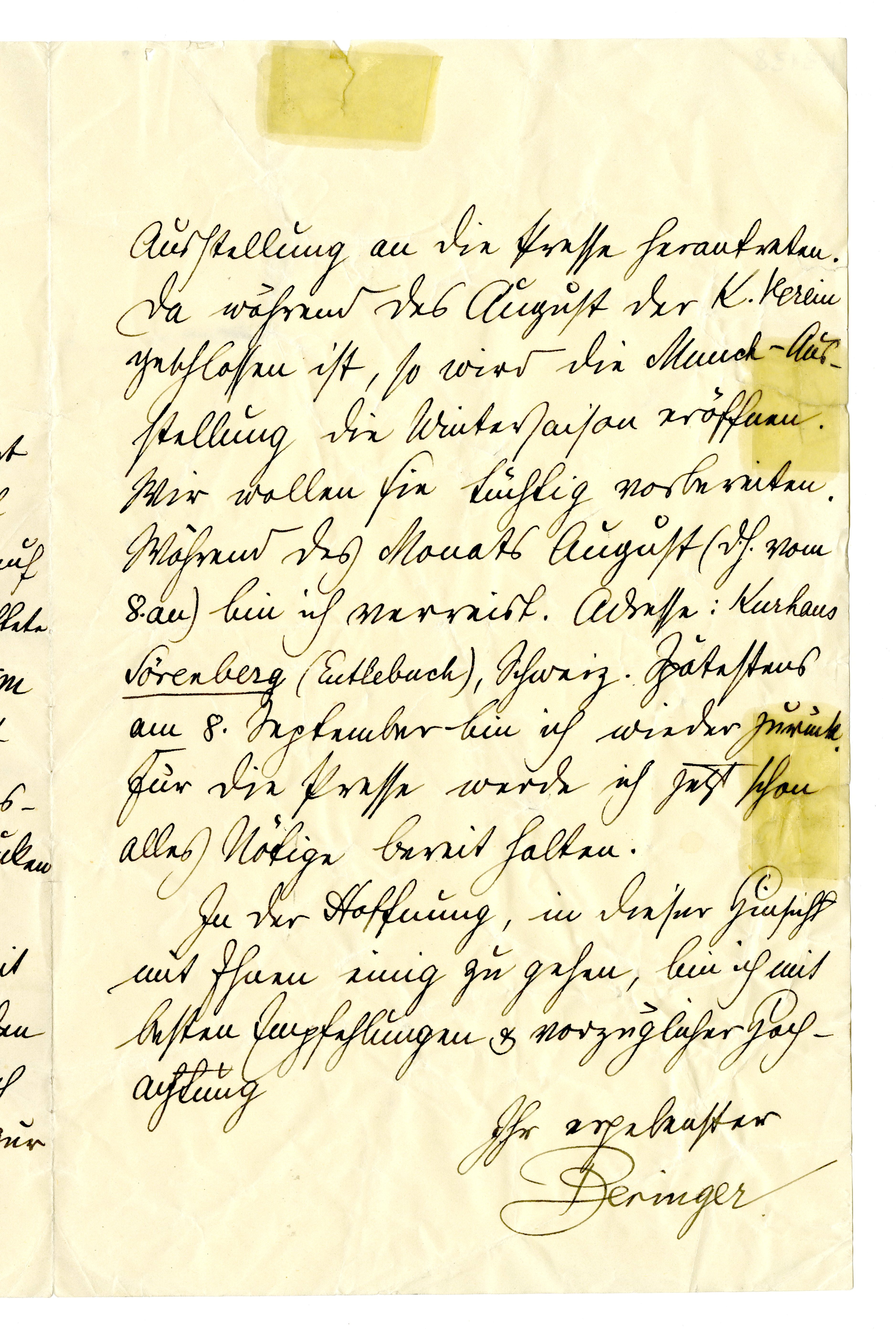 MM K 3138, Munchmuseet. Datert 30.07.1908. Brev fra Jos. Aug. Beringer.