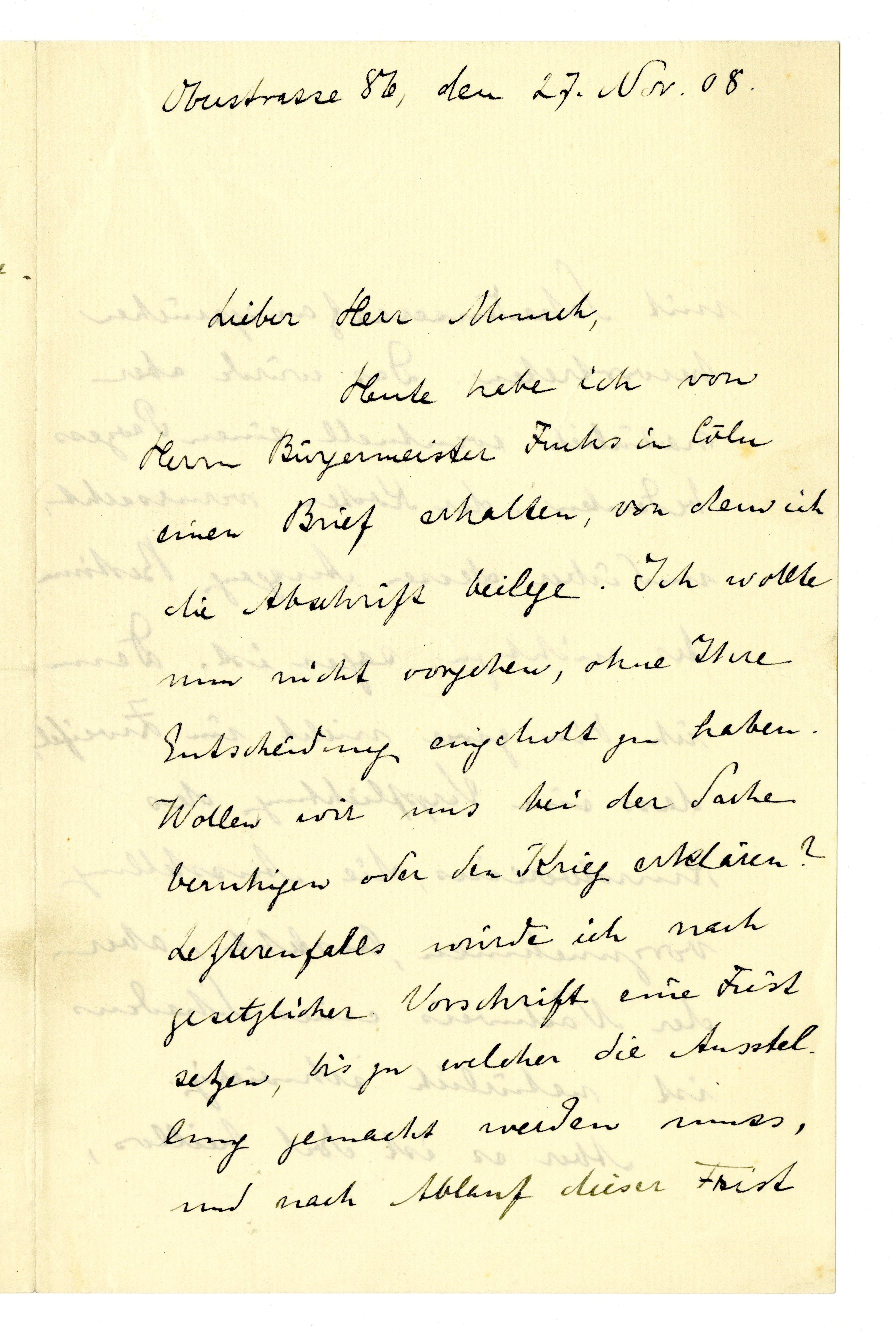 MM K 3148, Munchmuseet. Datert 27.11.1908. Brev fra Gustav Schiefler.