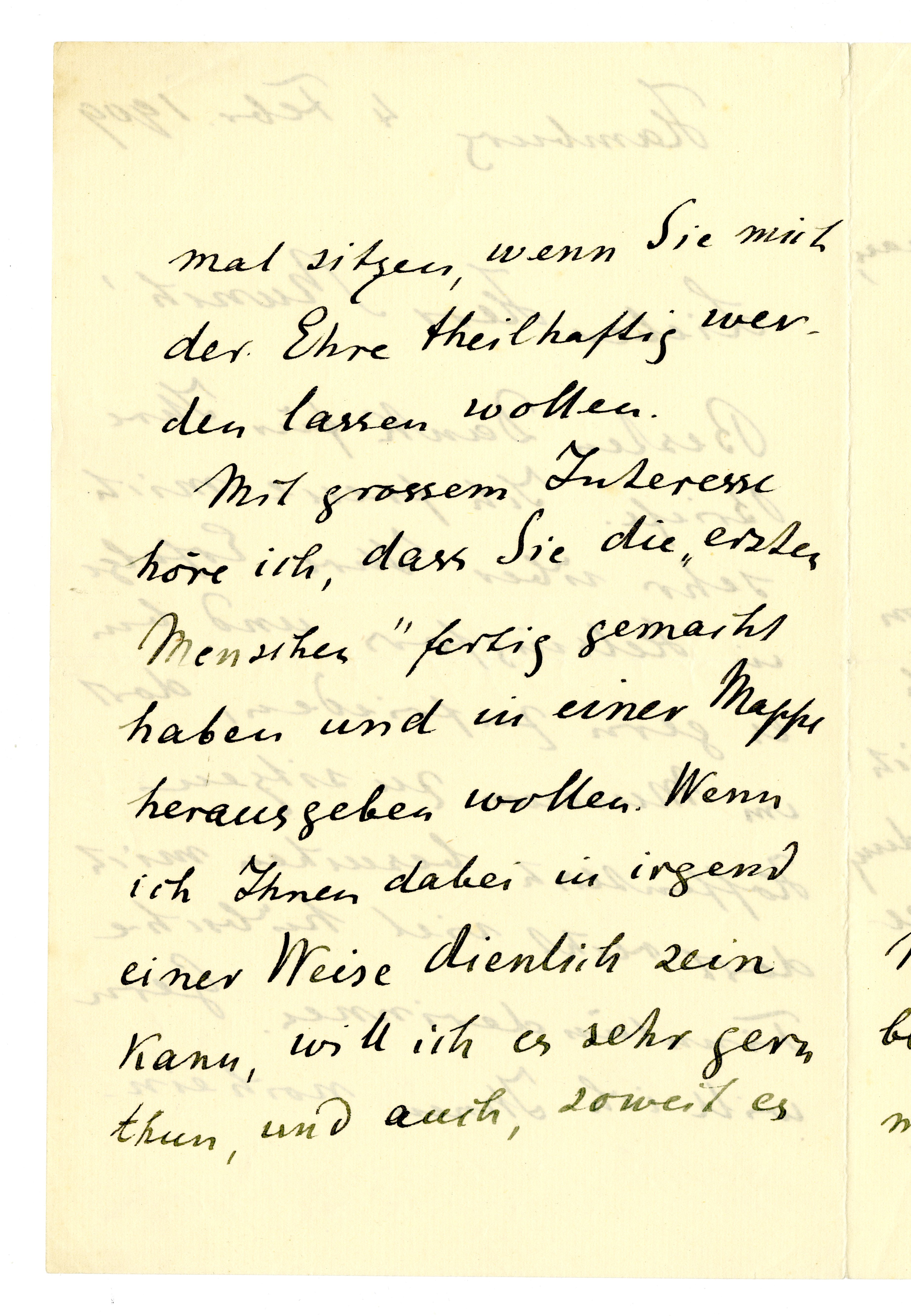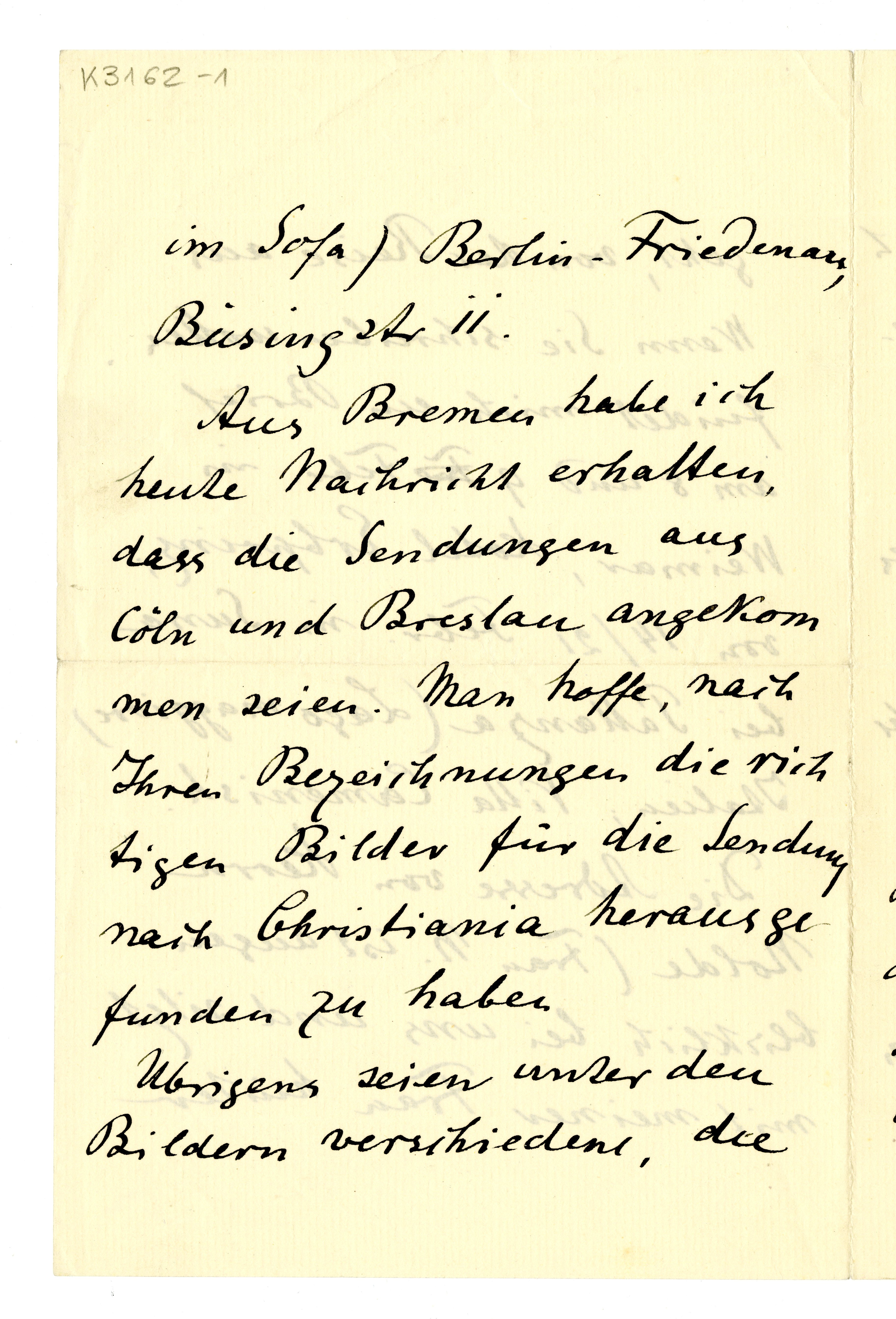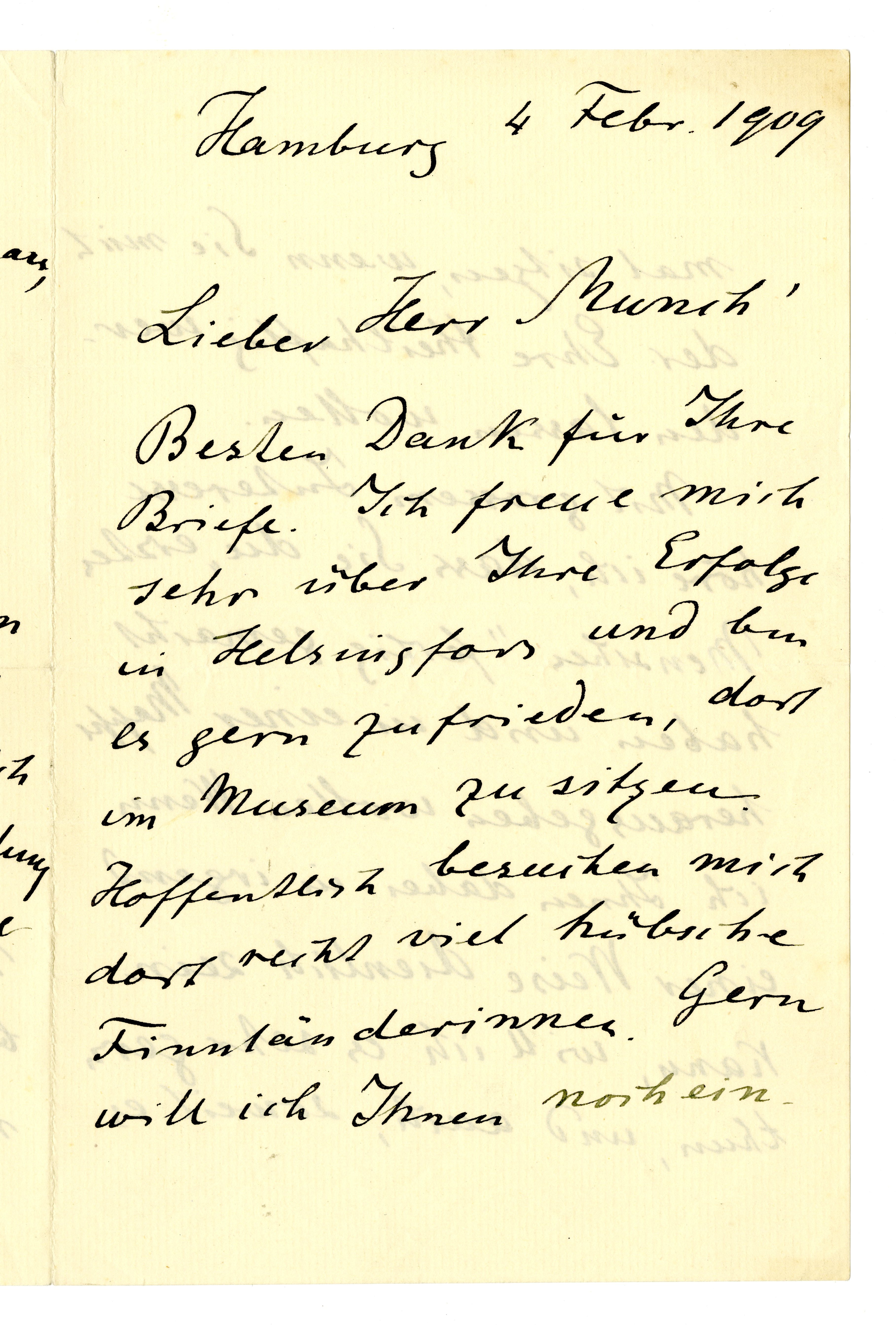 MM K 3162, Munchmuseet. Datert 04.02.1909. Brev fra Gustav Schiefler.