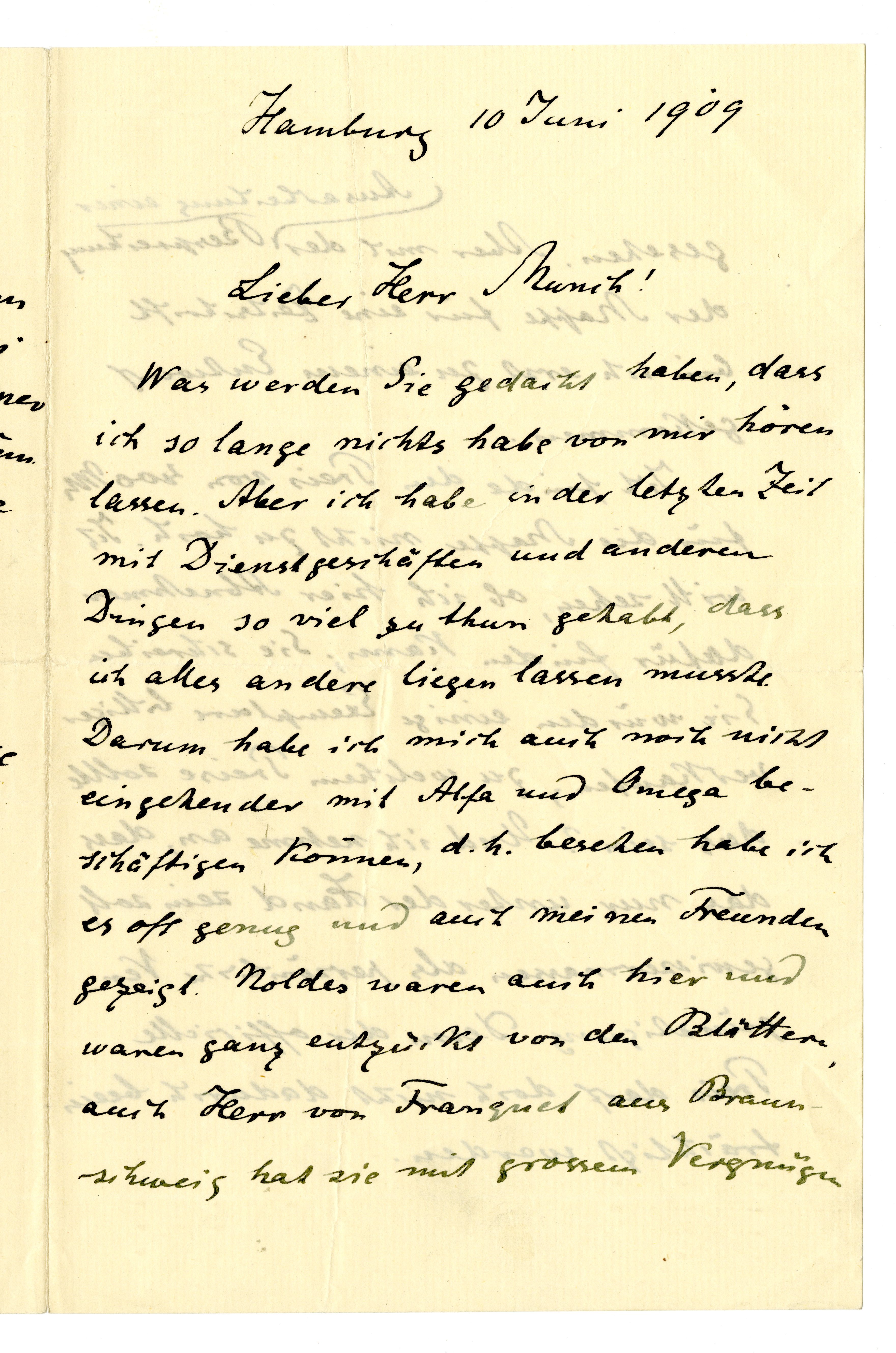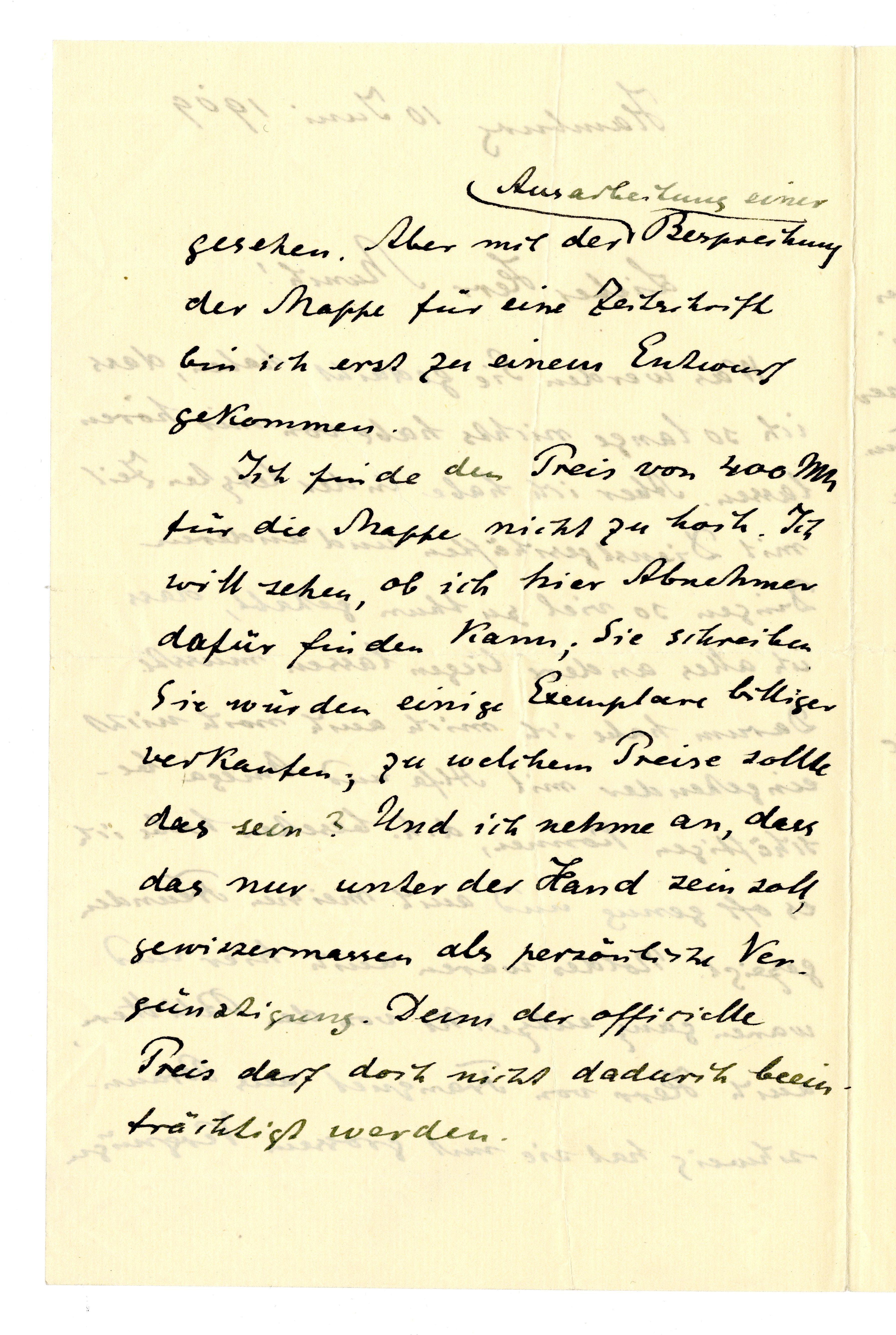 MM K 3171, Munchmuseet. Datert 10.06.1909. Brev fra Gustav Schiefler.