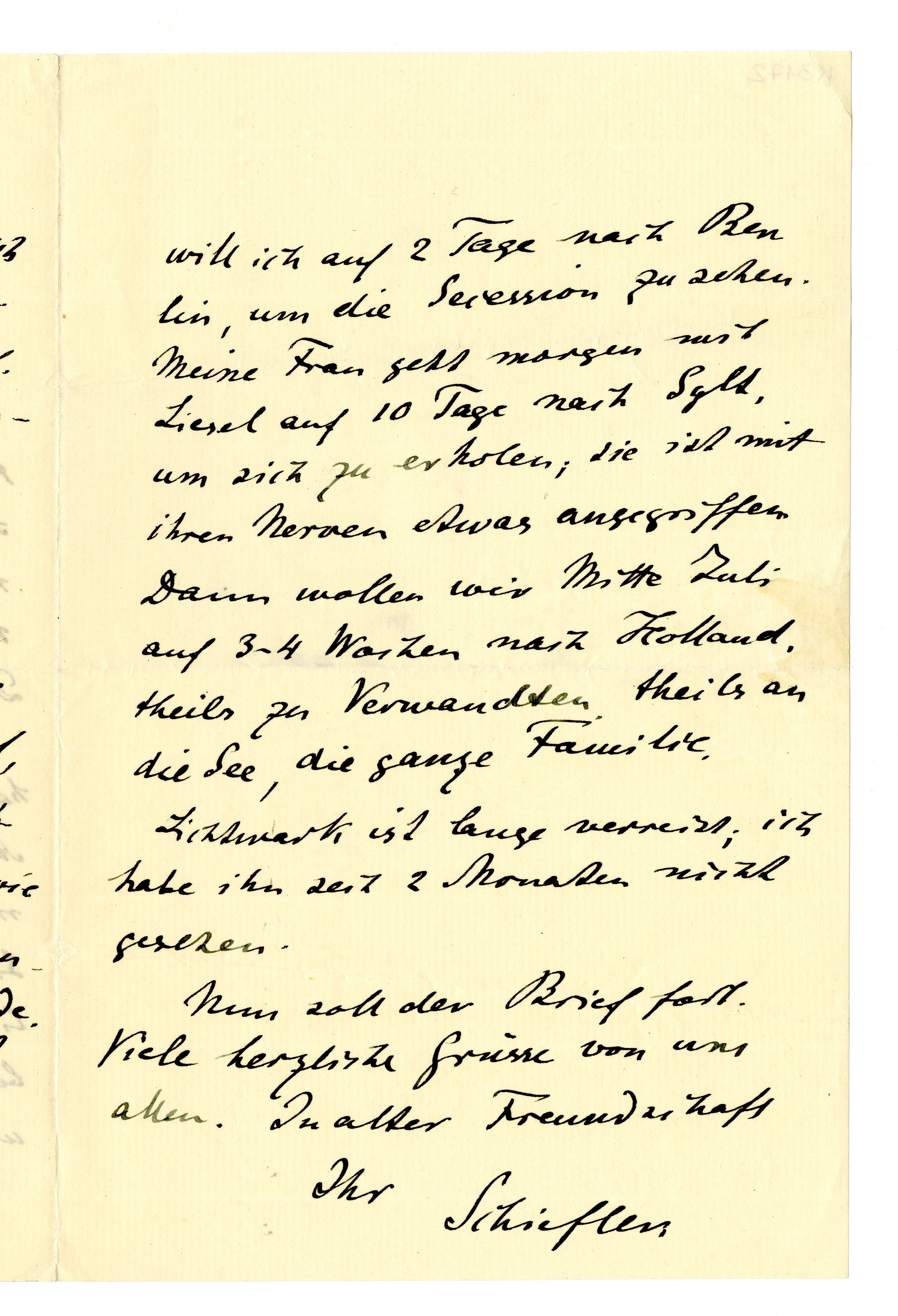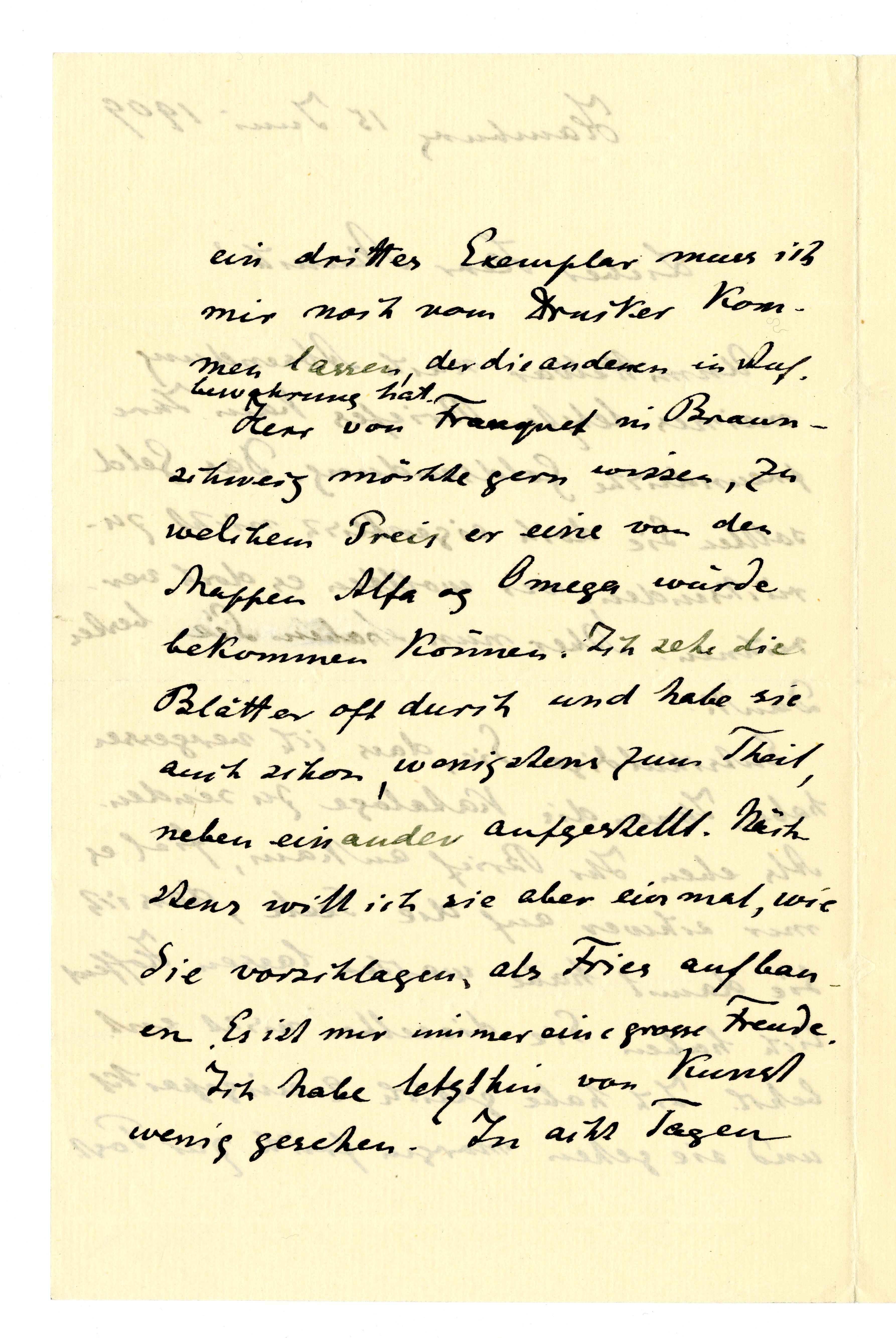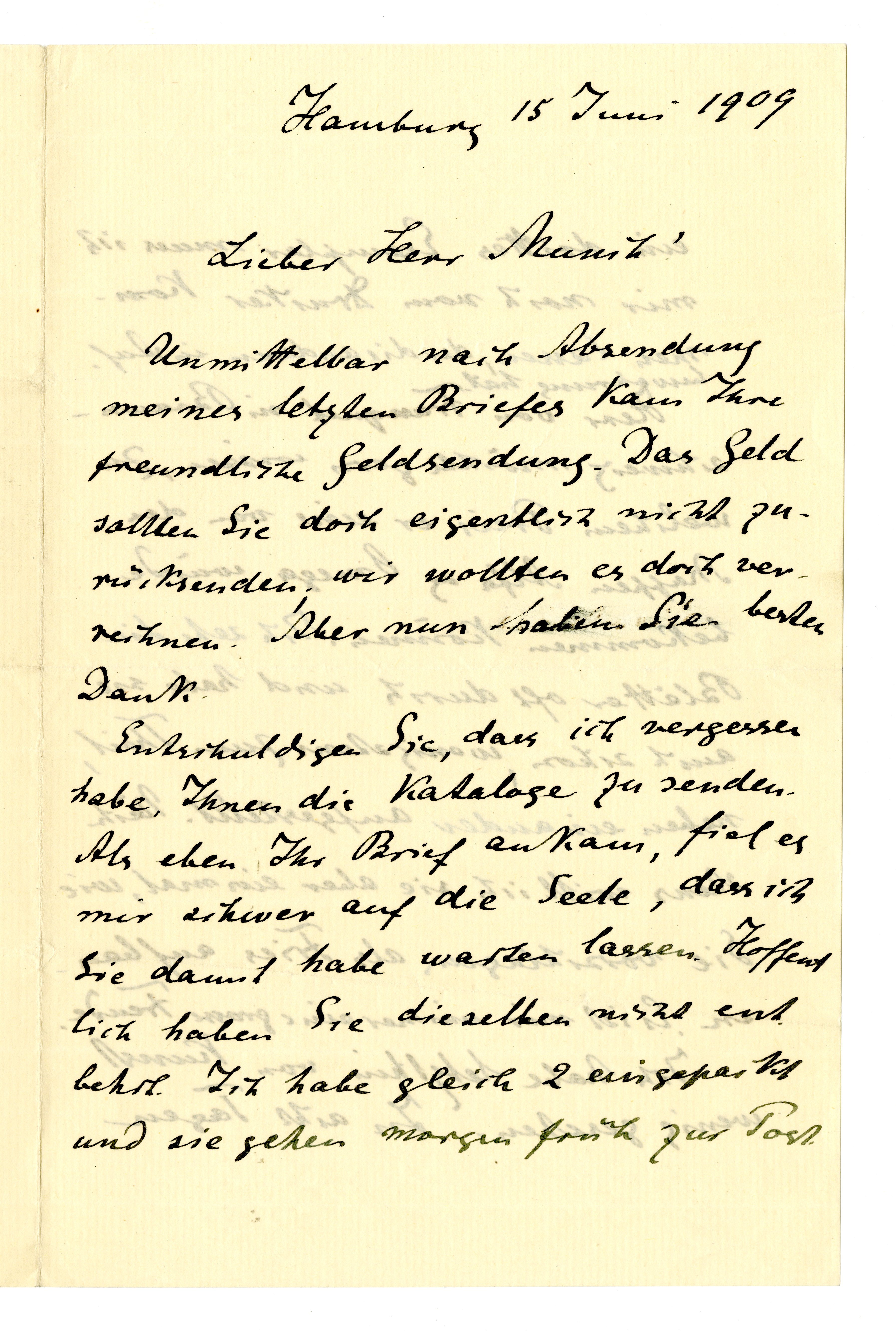MM K 3172, Munchmuseet. Datert 15.06.1909. Brev fra Gustav Schiefler.