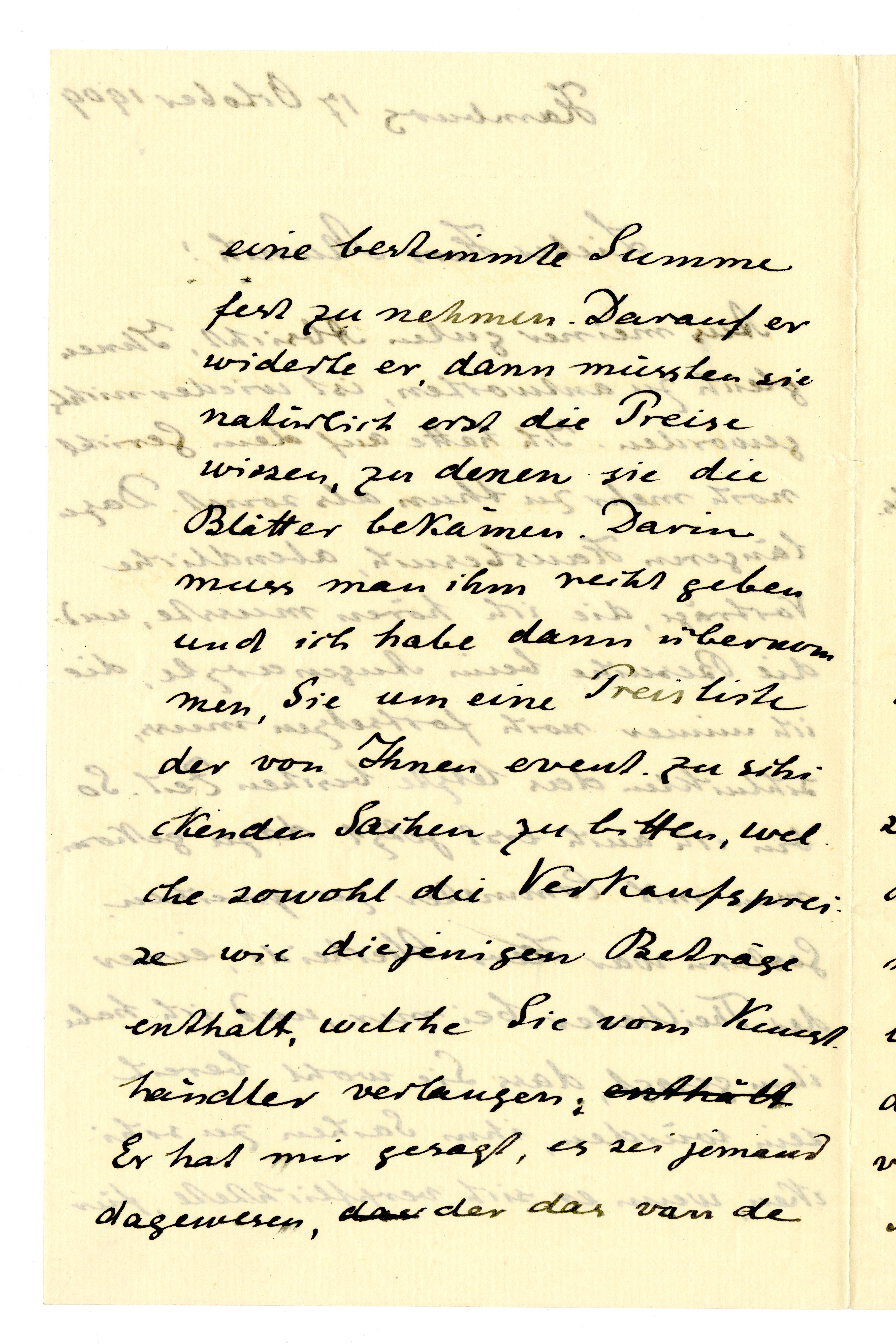 MM K 3176, Munchmuseet. Datert 17.10.1909. Brev fra Gustav Schiefler.