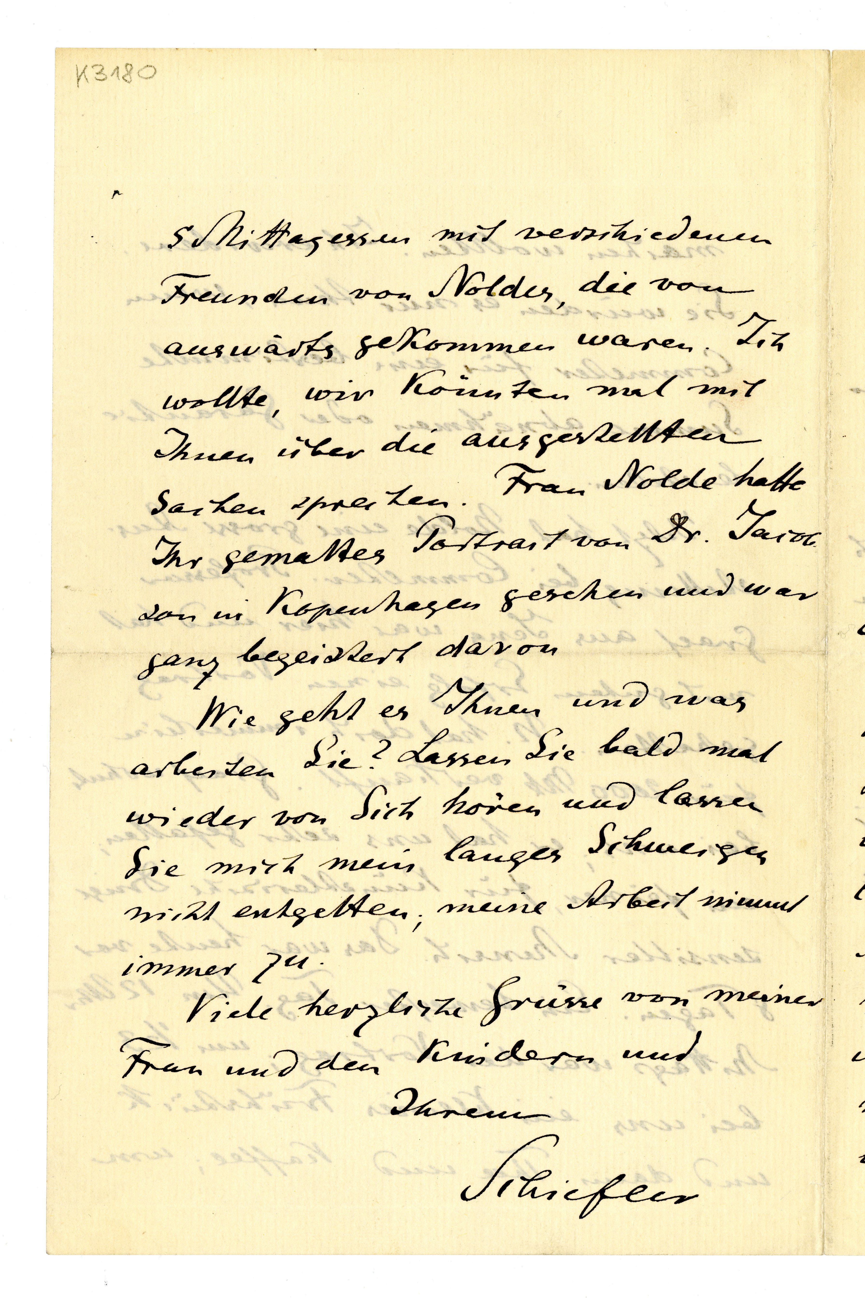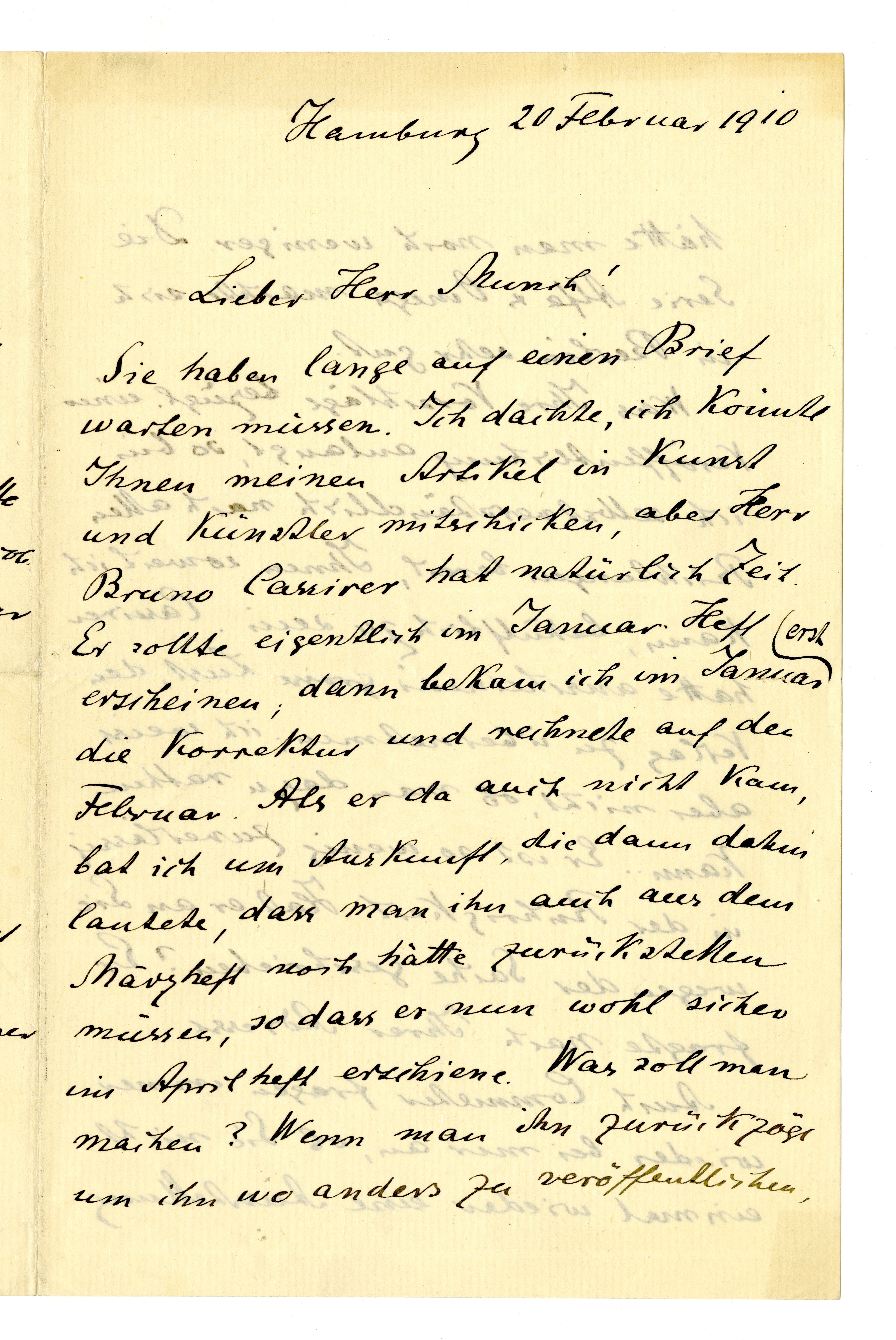 MM K 3180, Munchmuseet. Datert 20.02.1910. Brev fra Gustav Schiefler.