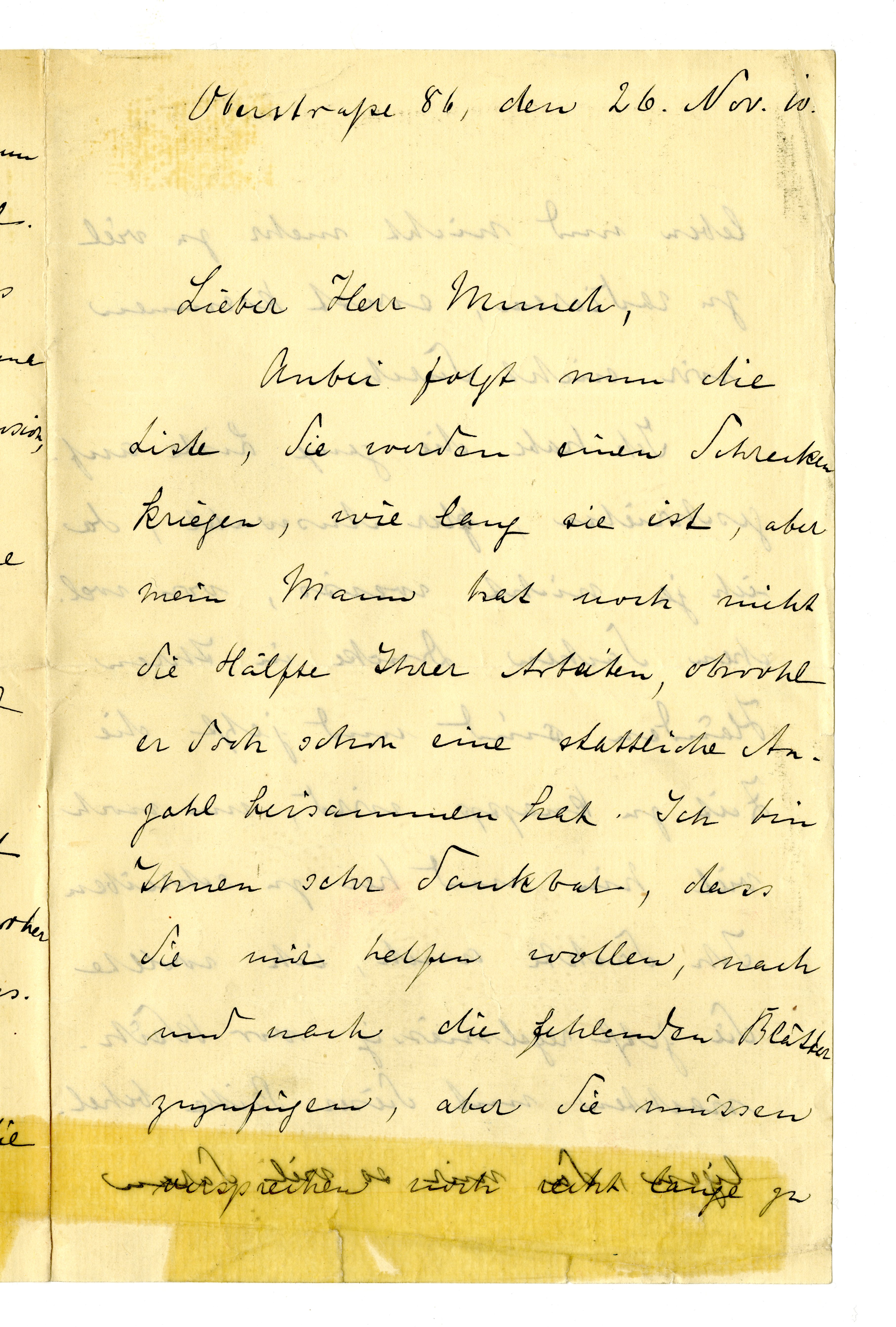 MM K 3184, Munchmuseet. Datert 26.11.1910. Brev fra Luise Schiefler.