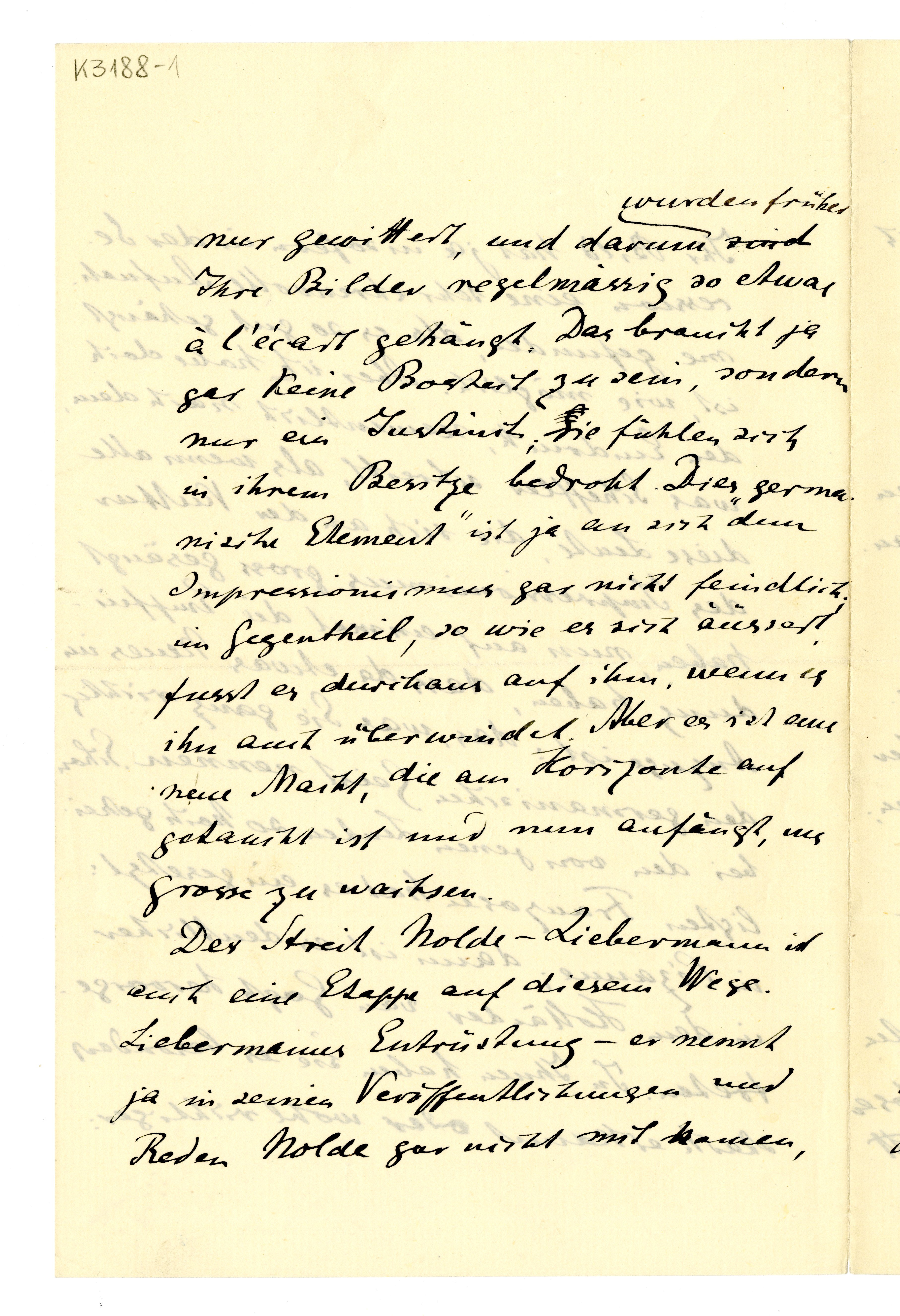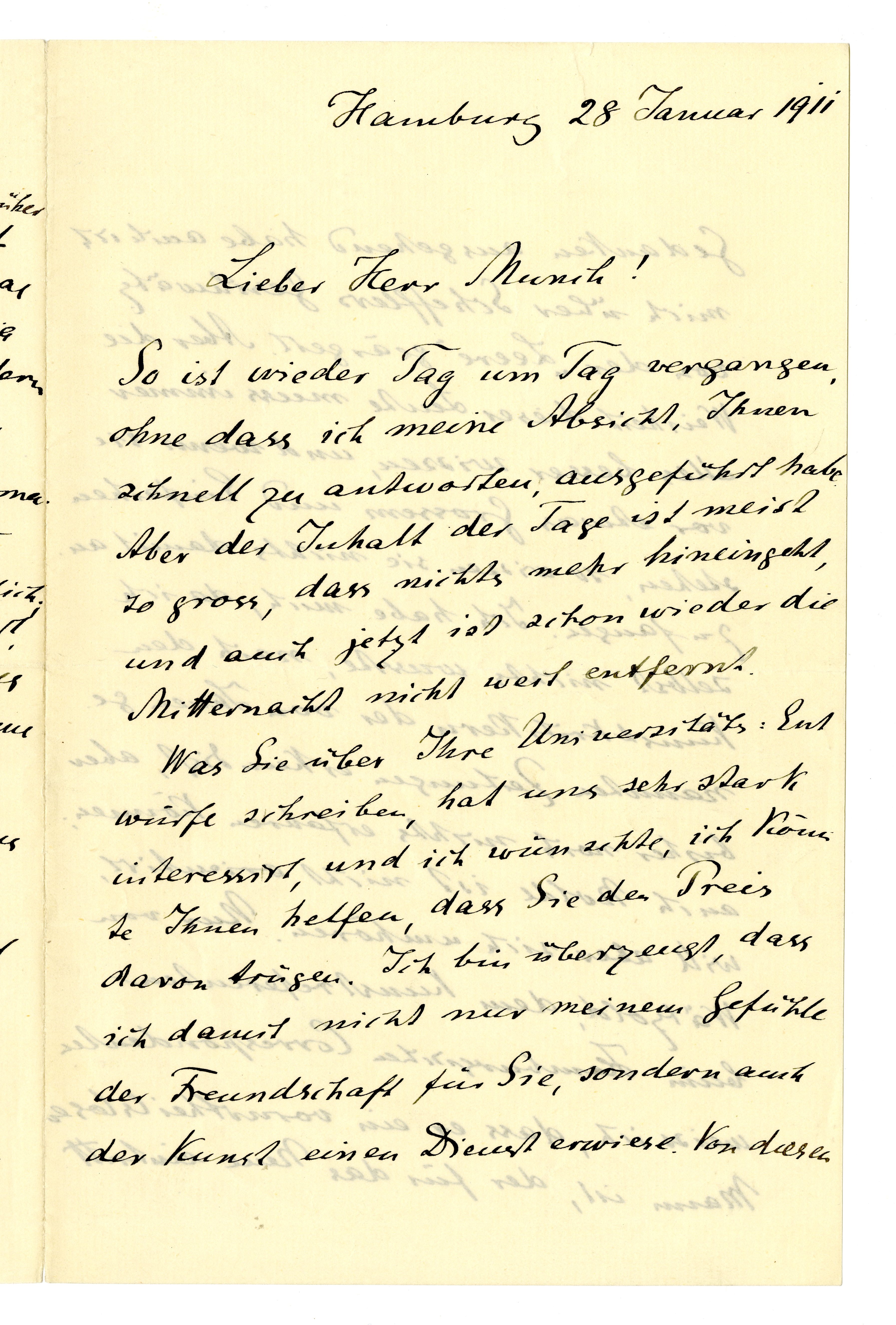 MM K 3188, Munchmuseet. Datert 28.01.1911. Brev fra Gustav Schiefler.