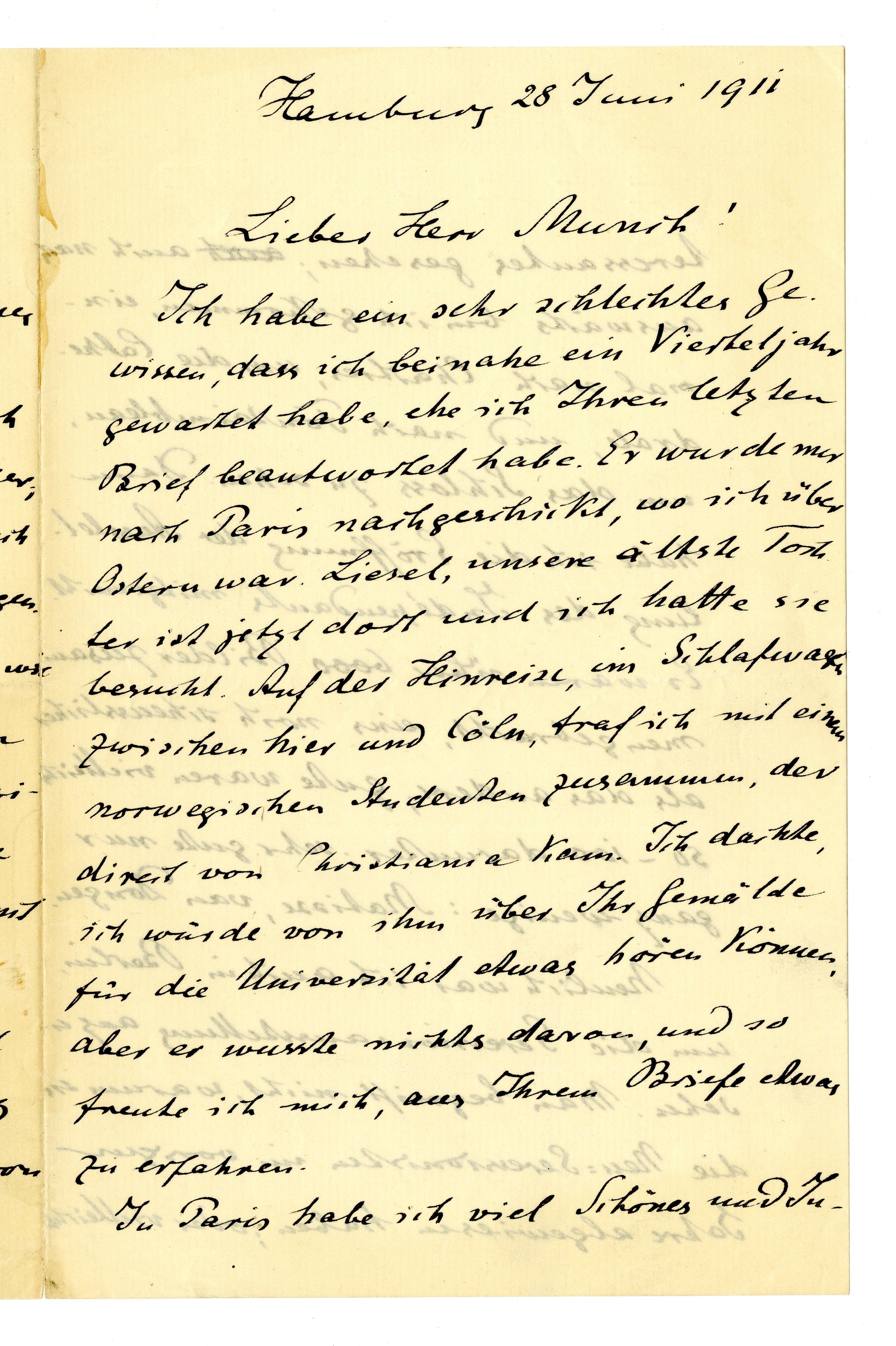 MM K 3190, Munchmuseet. Datert 28.06.1911. Brev fra Gustav Schiefler.