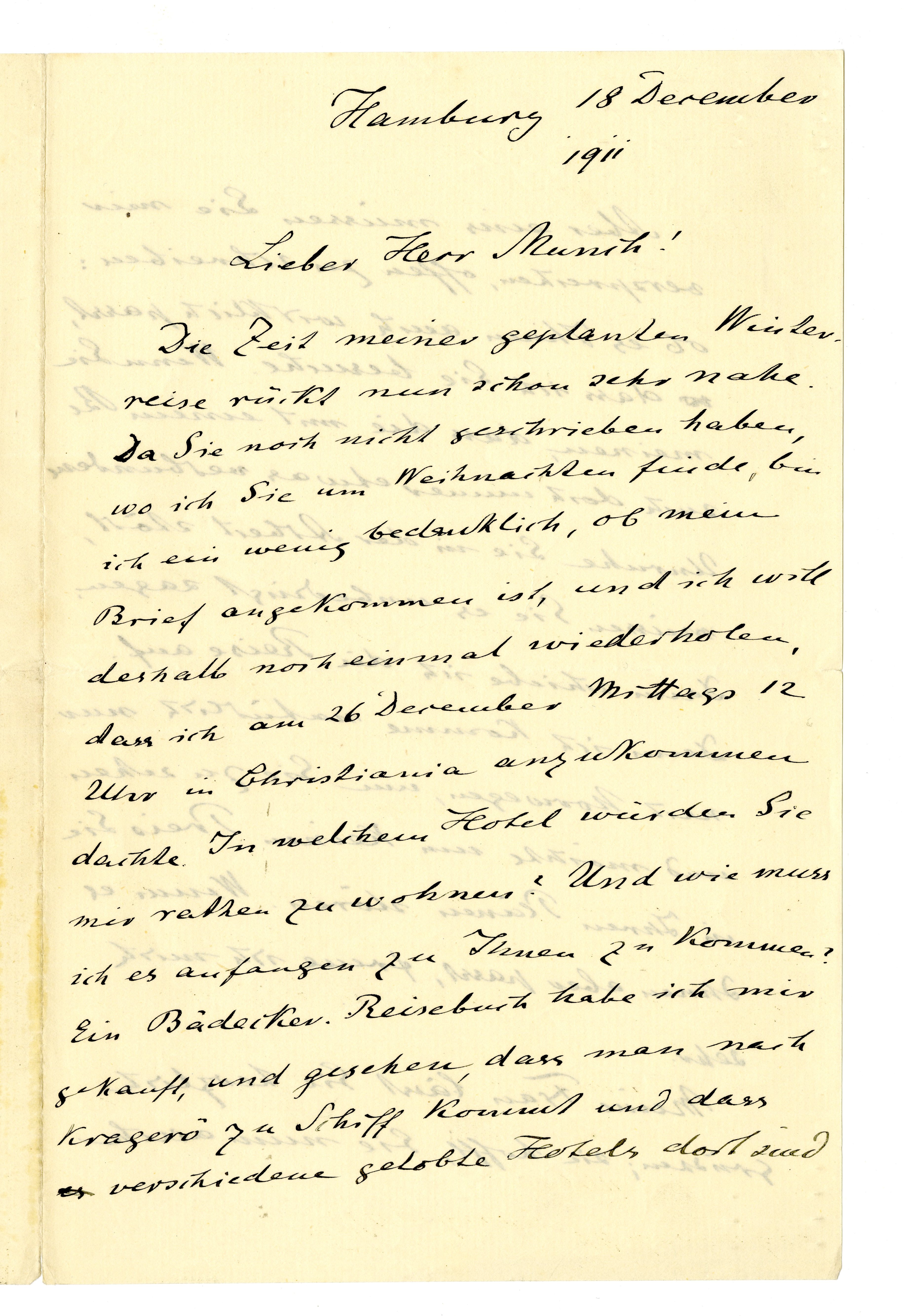 MM K 3196, Munchmuseet. Datert 18.12.1911. Brev fra Gustav Schiefler.