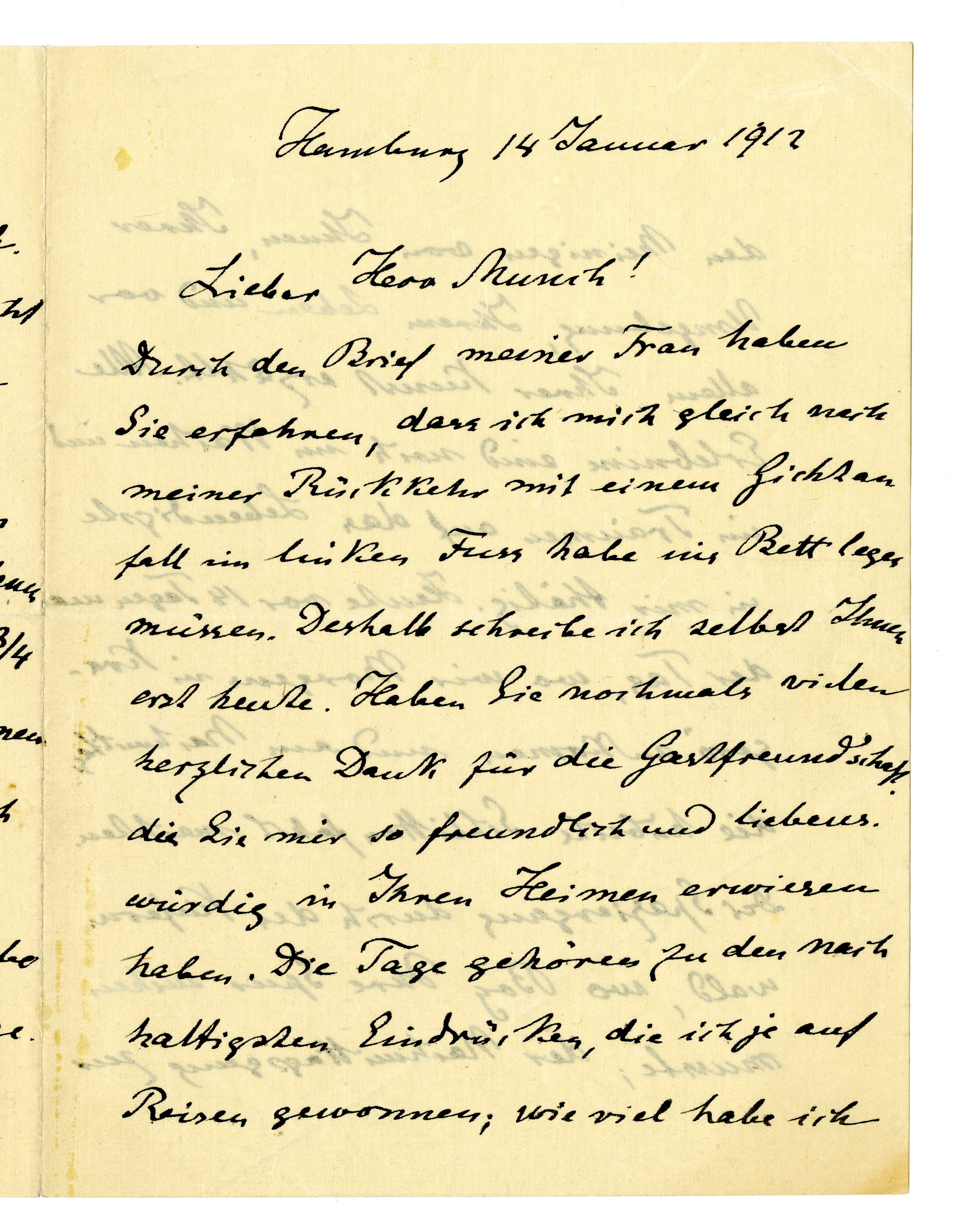 MM K 3200, Munchmuseet. Datert 14.01.1912. Brev fra Gustav Schiefler.