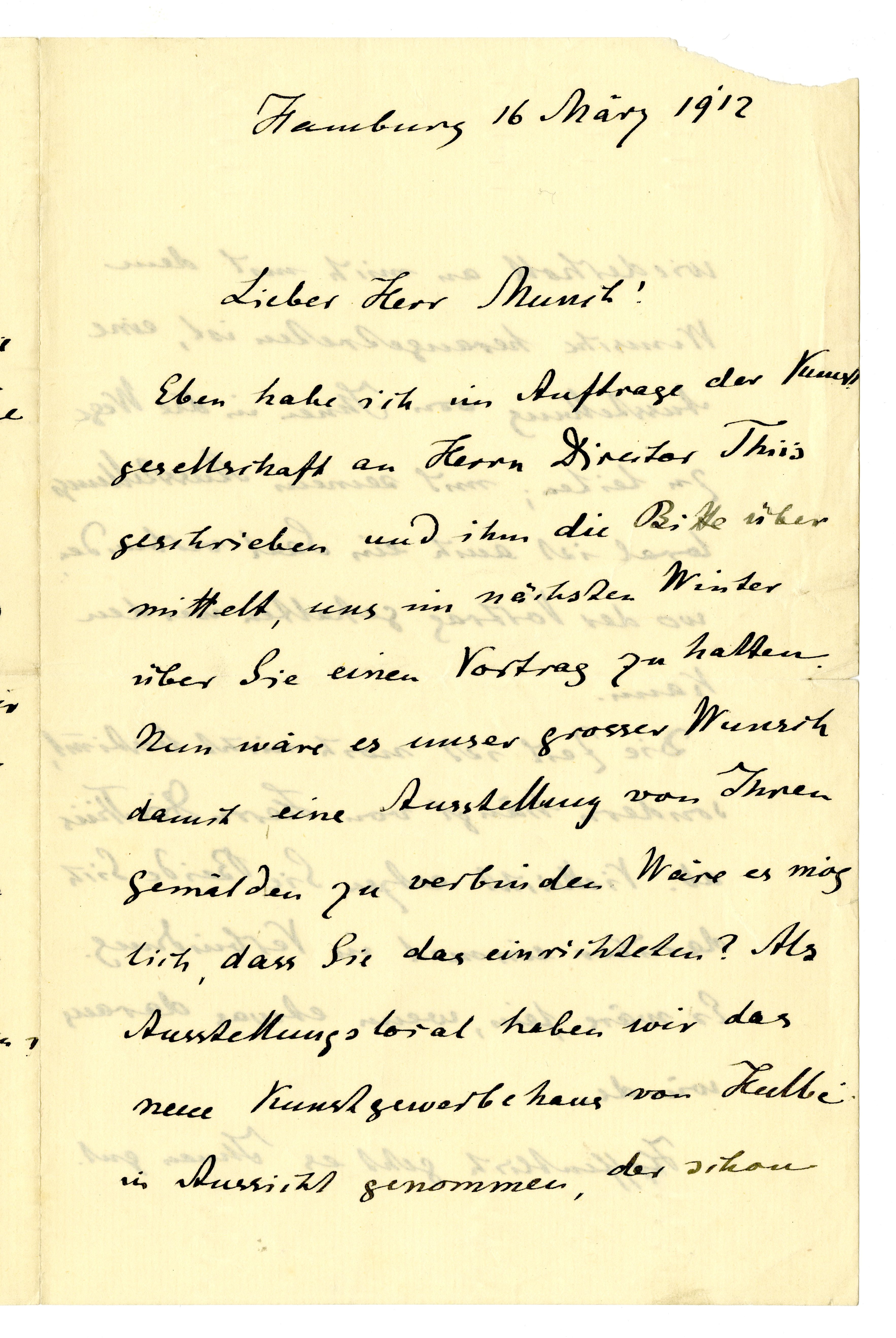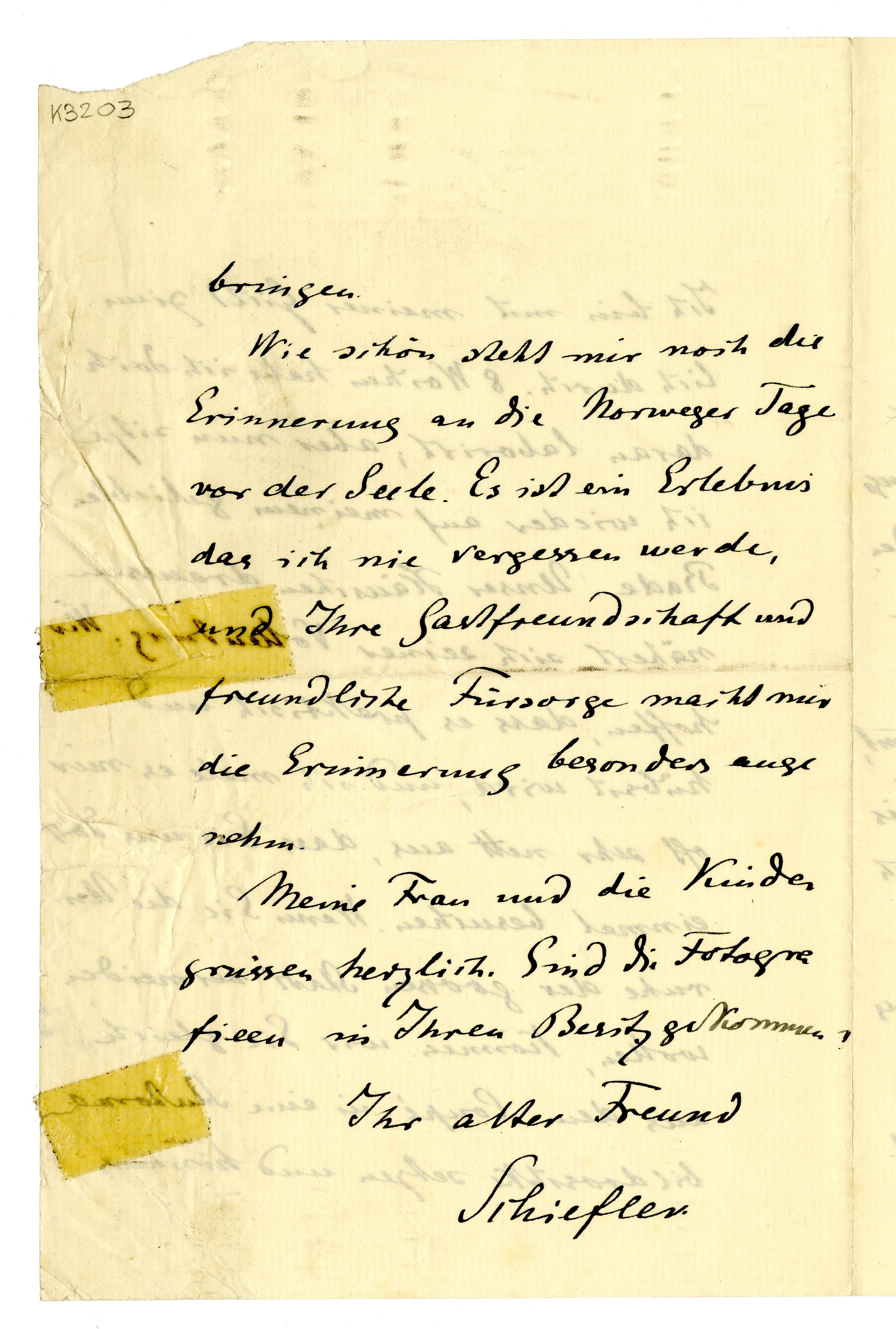 MM K 3203, Munchmuseet. Datert 16.03.1912. Brev fra Gustav Schiefler.
