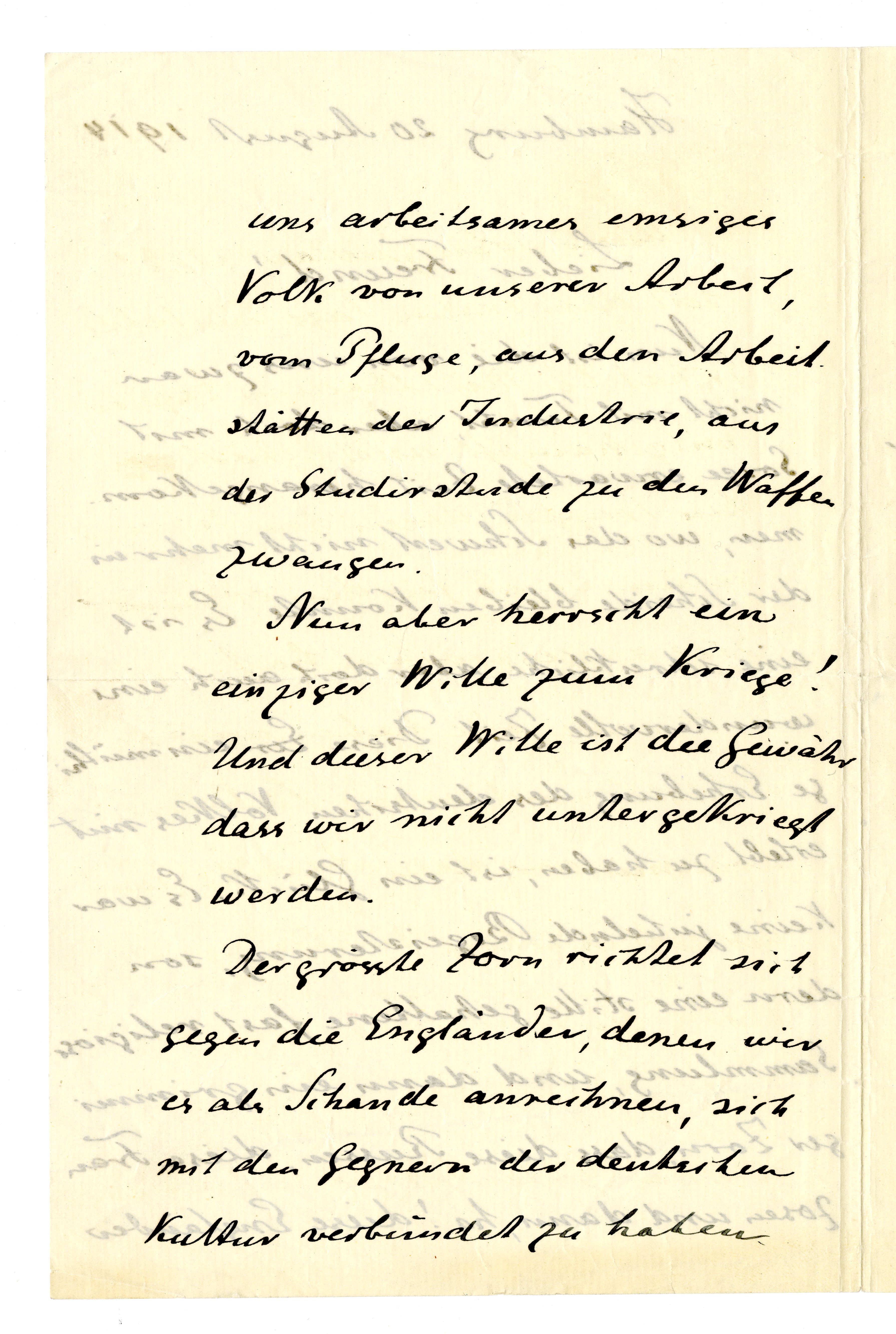 MM K 3224, Munchmuseet. Datert 20.08.1914. Brev fra Gustav Schiefler.