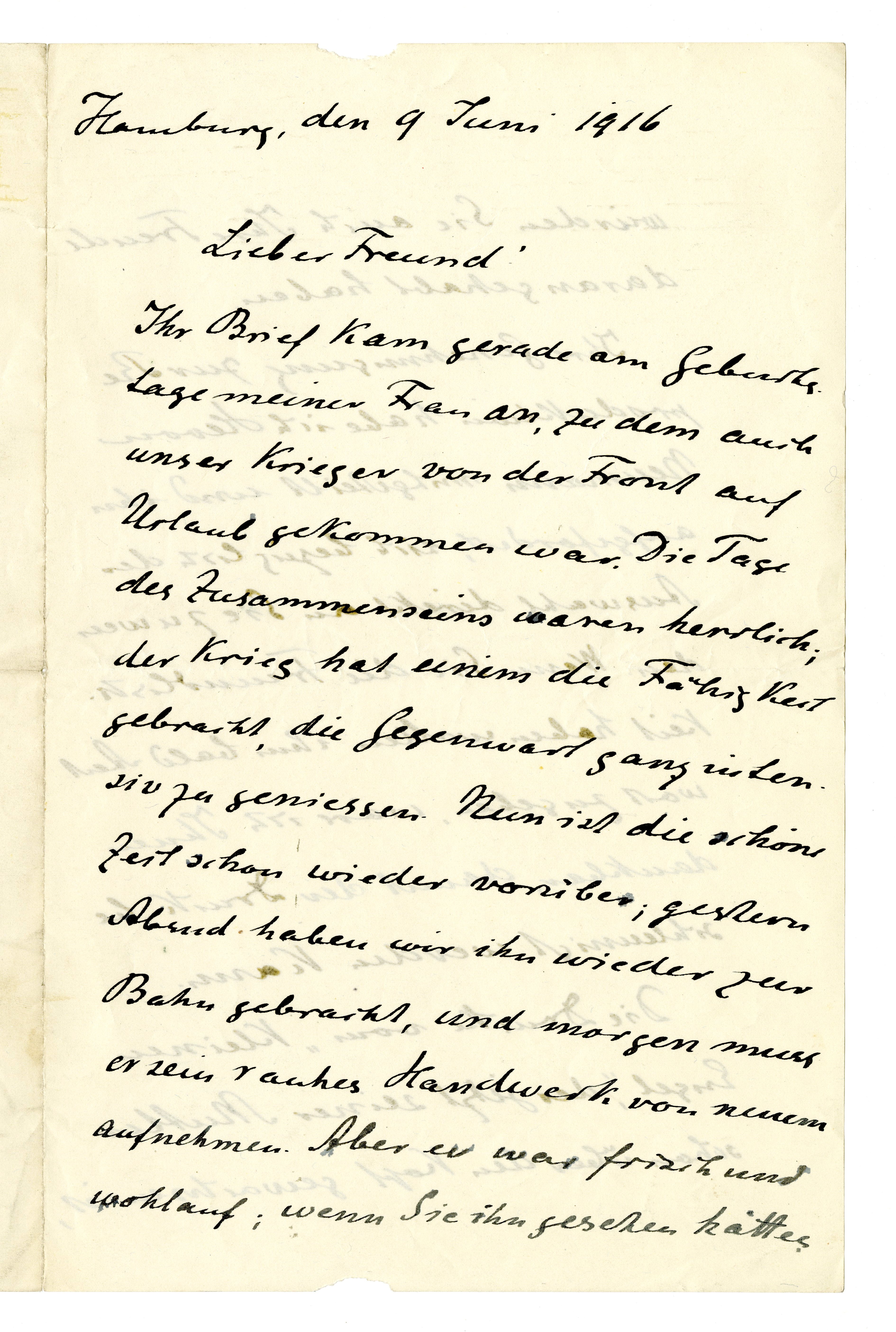 MM K 3232, Munchmuseet. Datert 09.06.1916. Brev fra Gustav Schiefler.