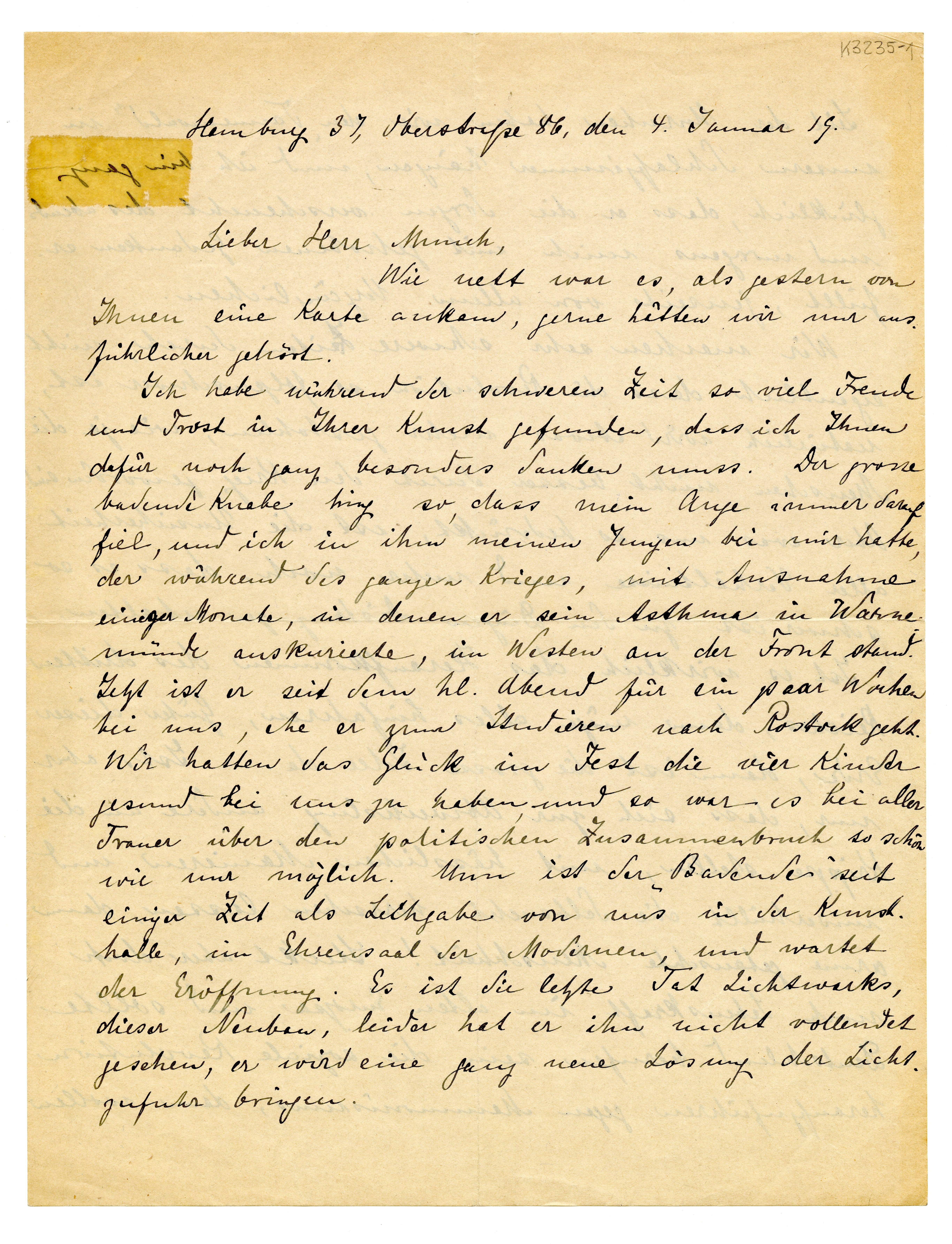 Hamburg 37, Oberstraße 6, den 4. Januar 19.