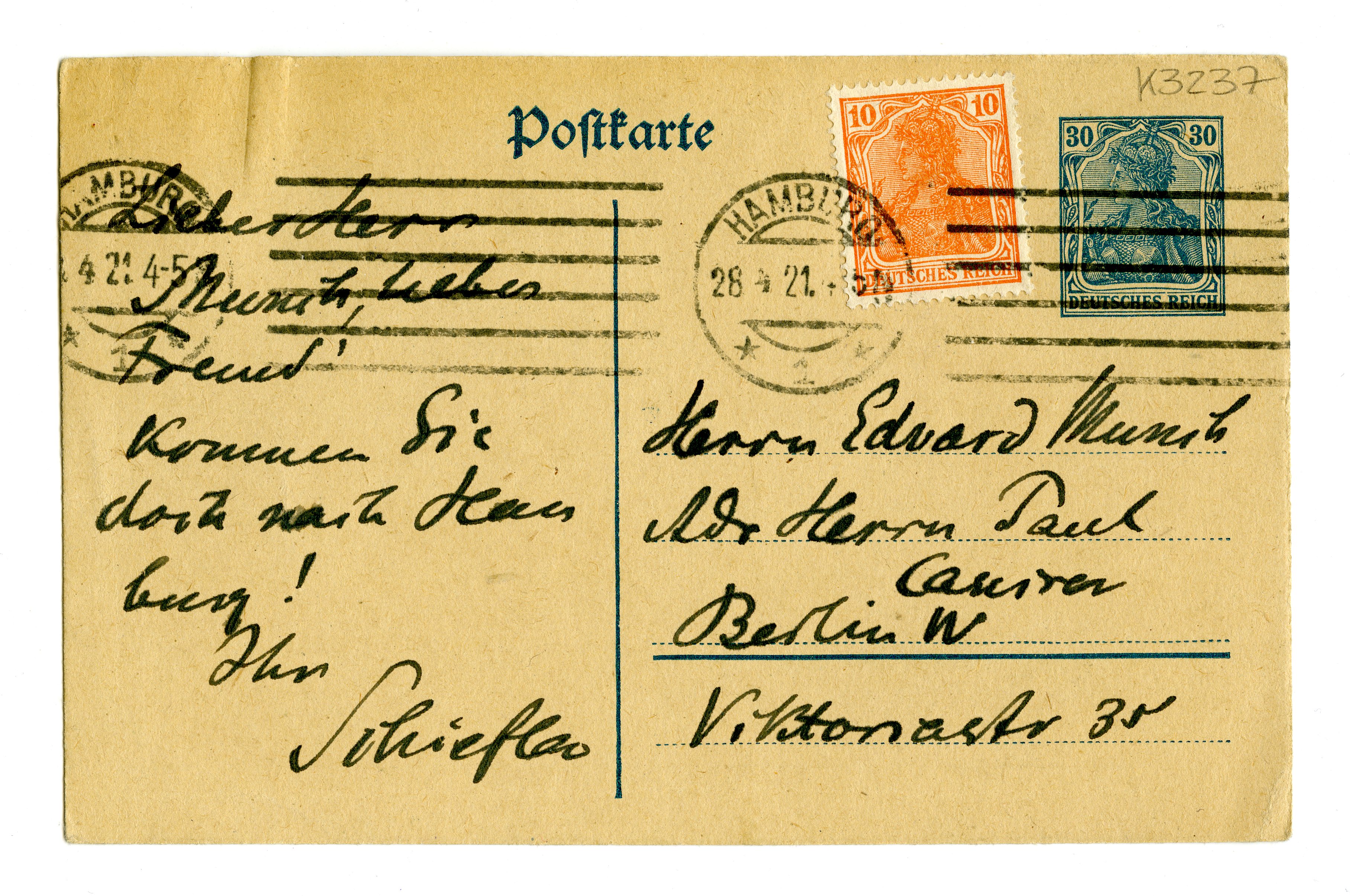 MM K 3237, Munchmuseet. Datert 28.04.1921. Brev fra Gustav Schiefler.