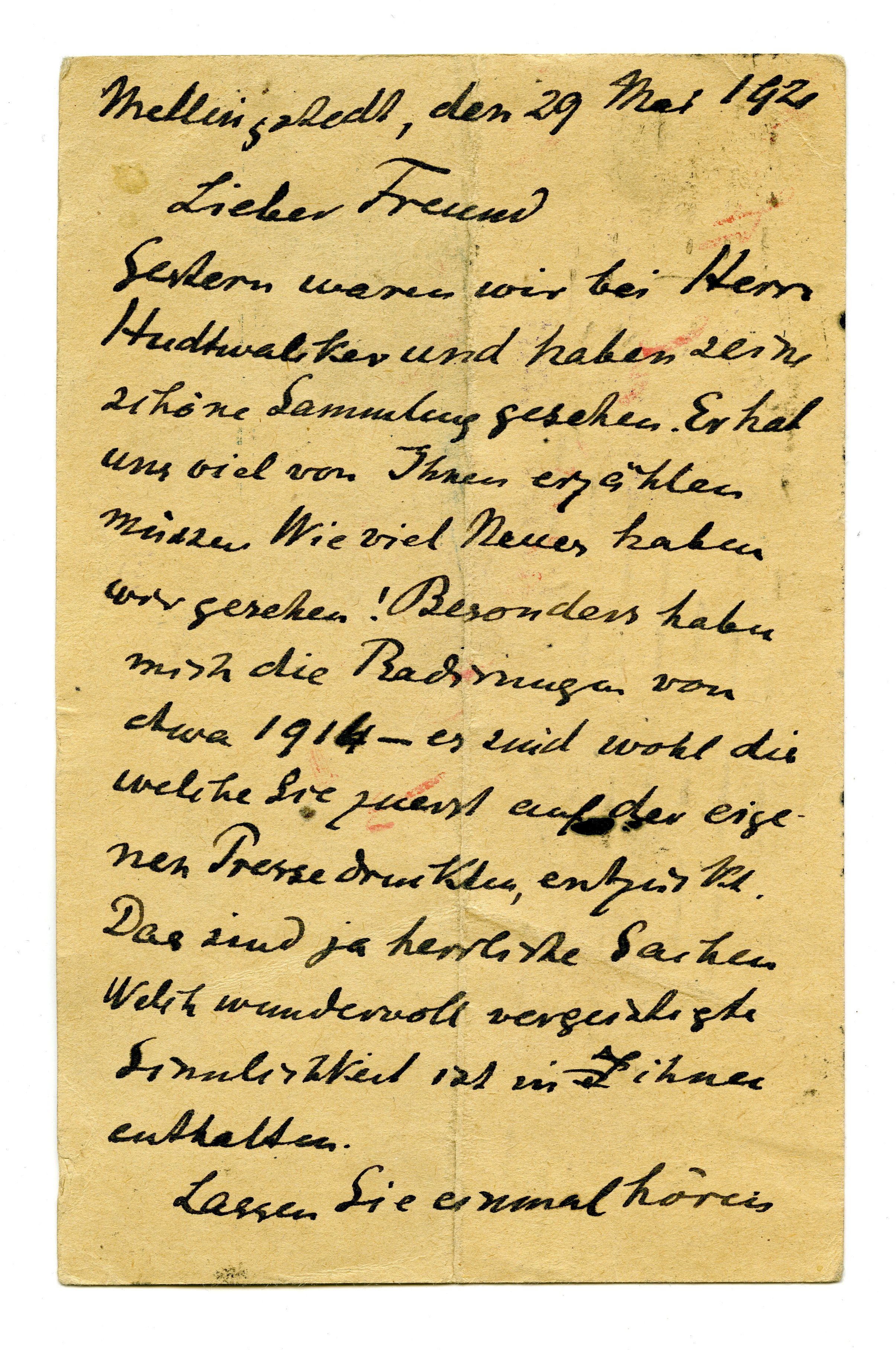 MM K 3239, Munchmuseet. Datert 29.05.1921. Brev fra Gustav Schiefler.