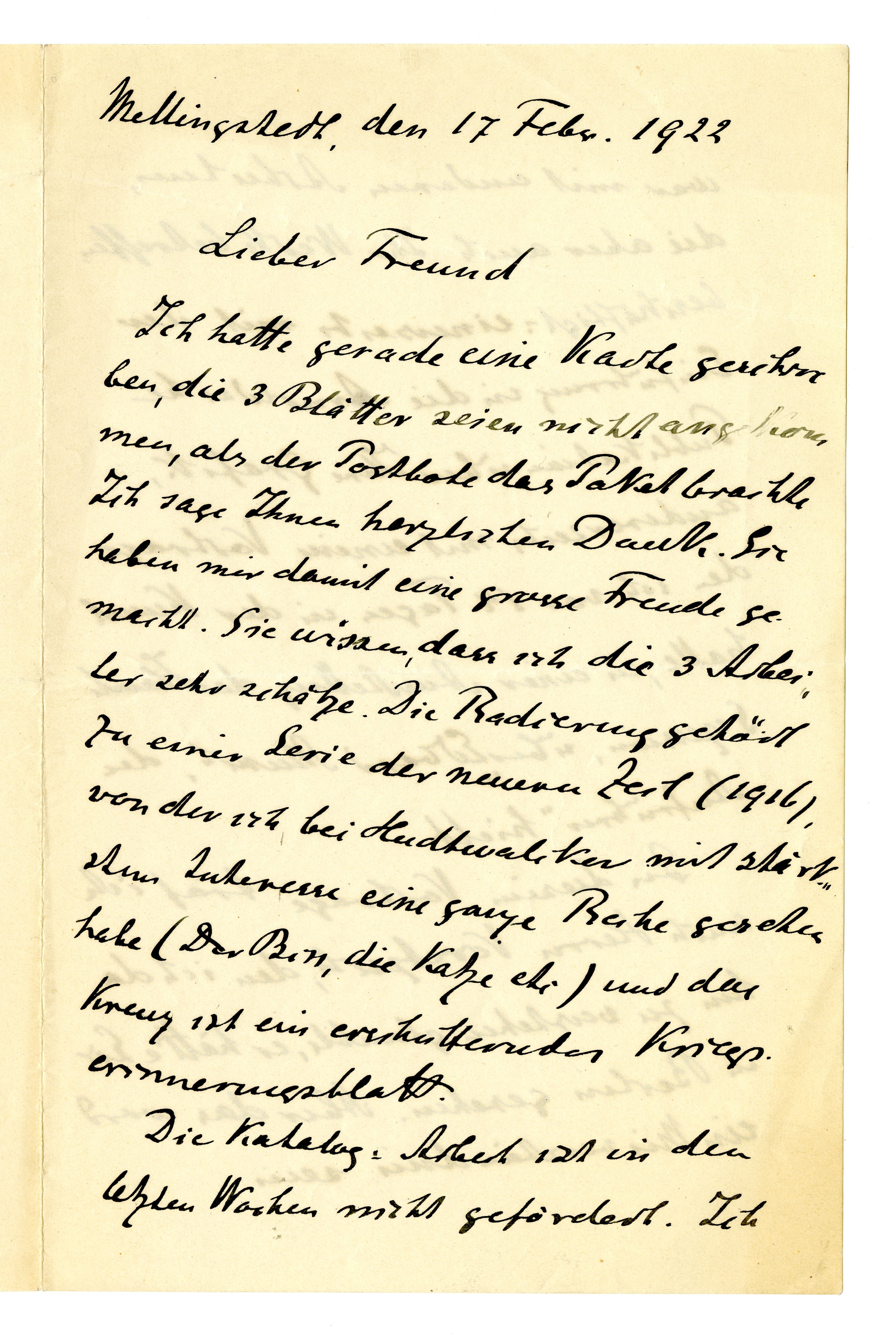 MM K 3242, Munchmuseet. Datert 25.12.1921. Brev fra Gustav Schiefler.