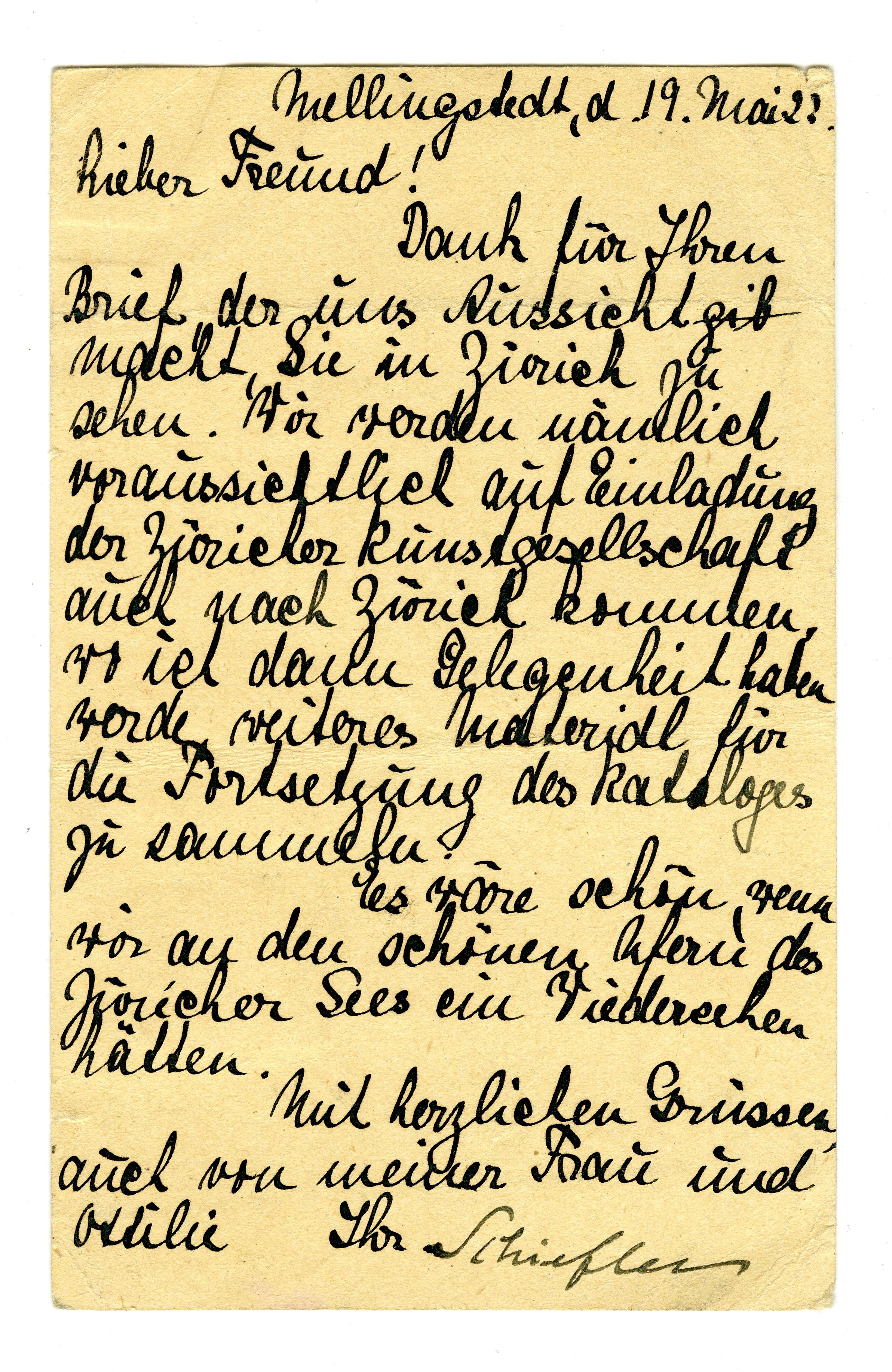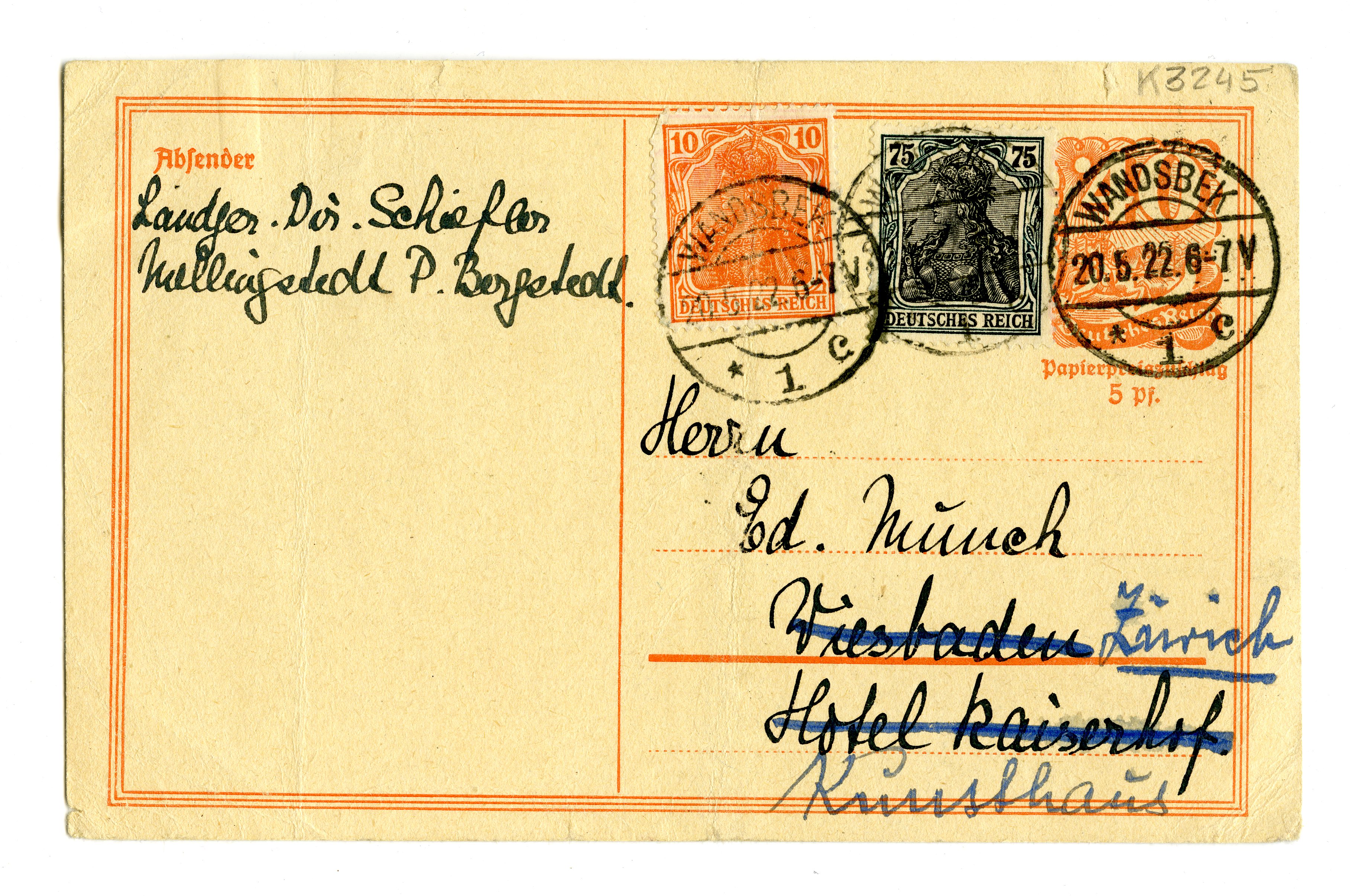 MM K 3245, Munchmuseet. Datert 19.05.1922. Brev fra Gustav Schiefler.