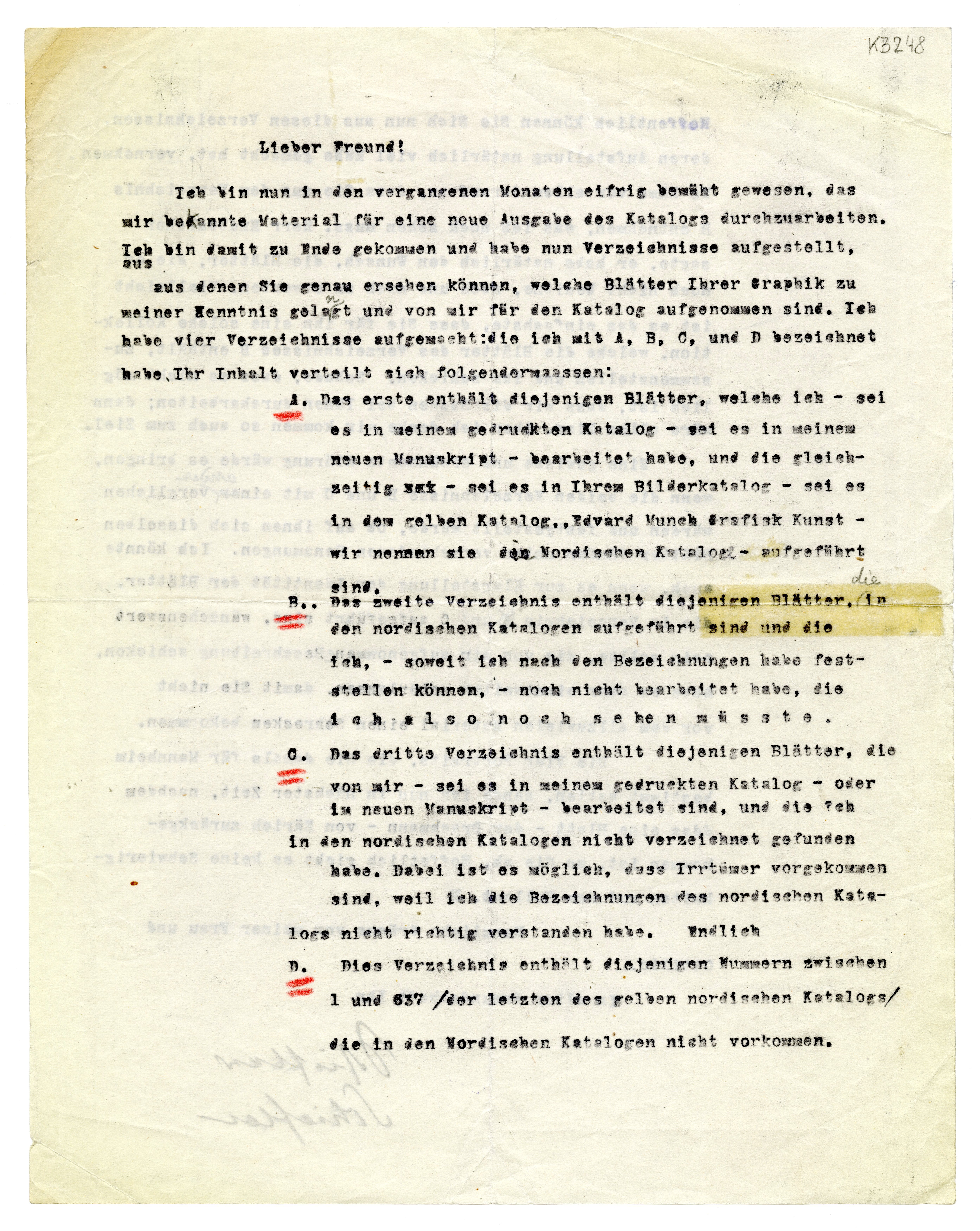 mir bed\k/annte Material für eine neue Ausgabe des Katalogs durchzuarbeiten.