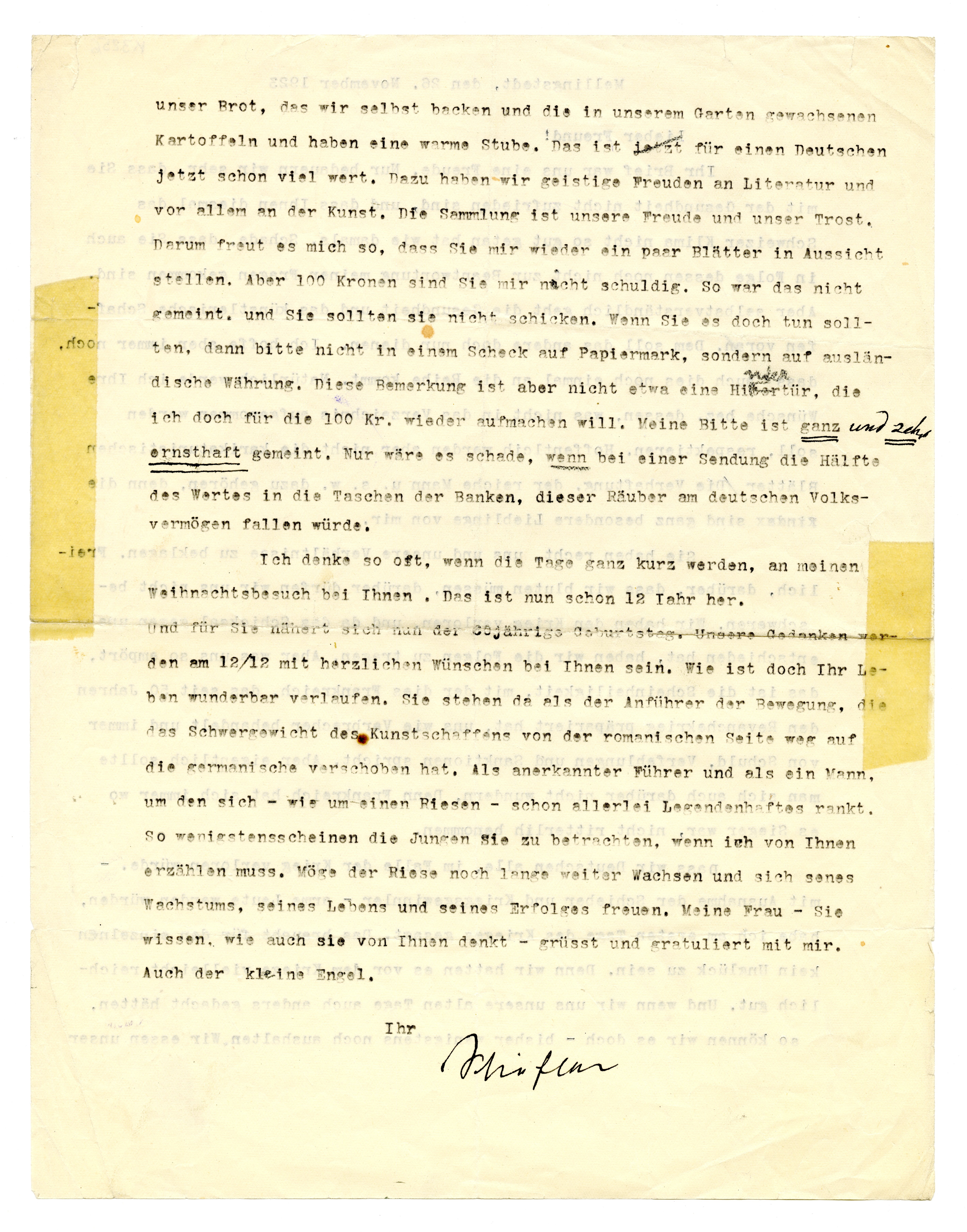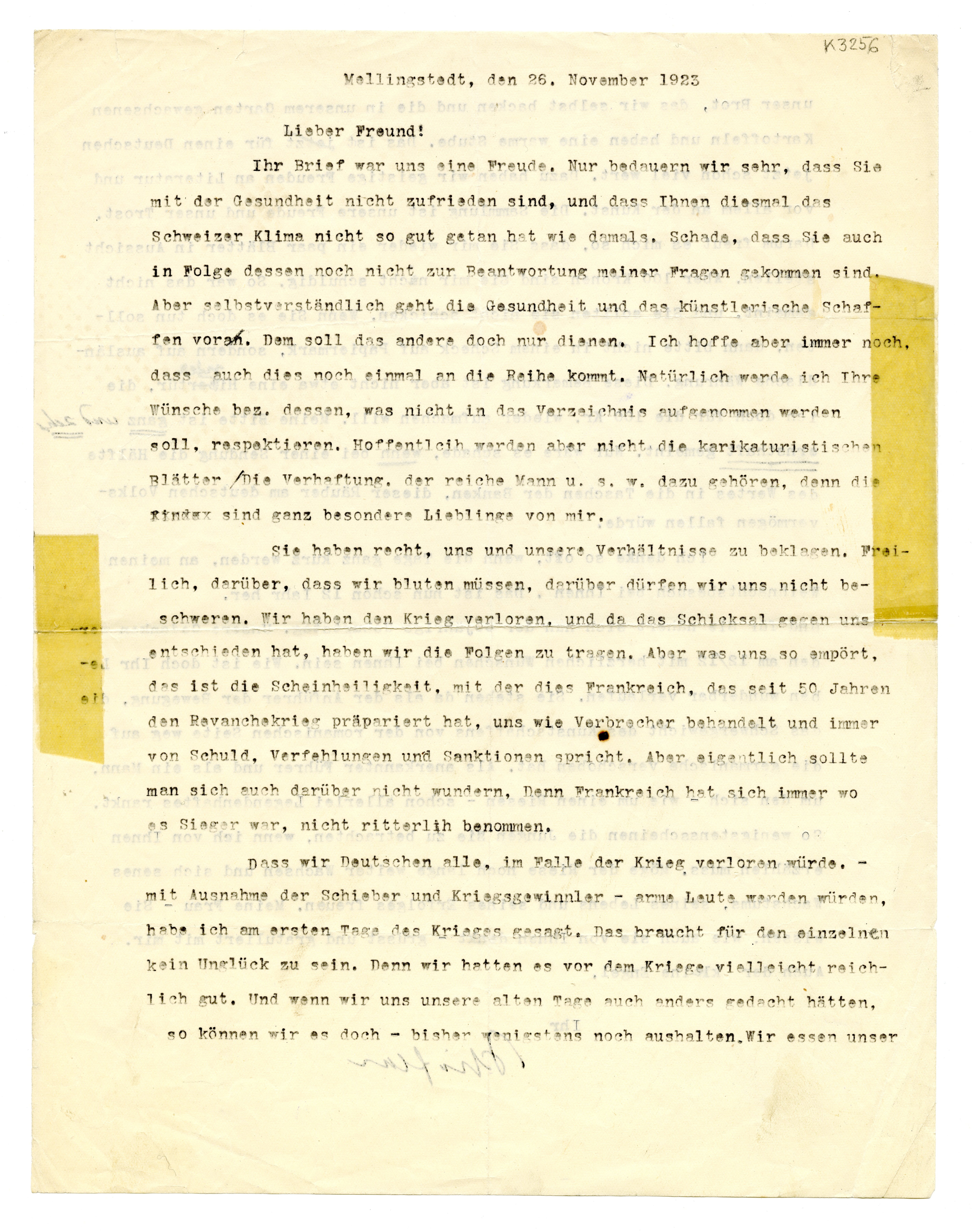 MM K 3256, Munchmuseet. Datert 26.11.1923. Brev fra Gustav Schiefler.