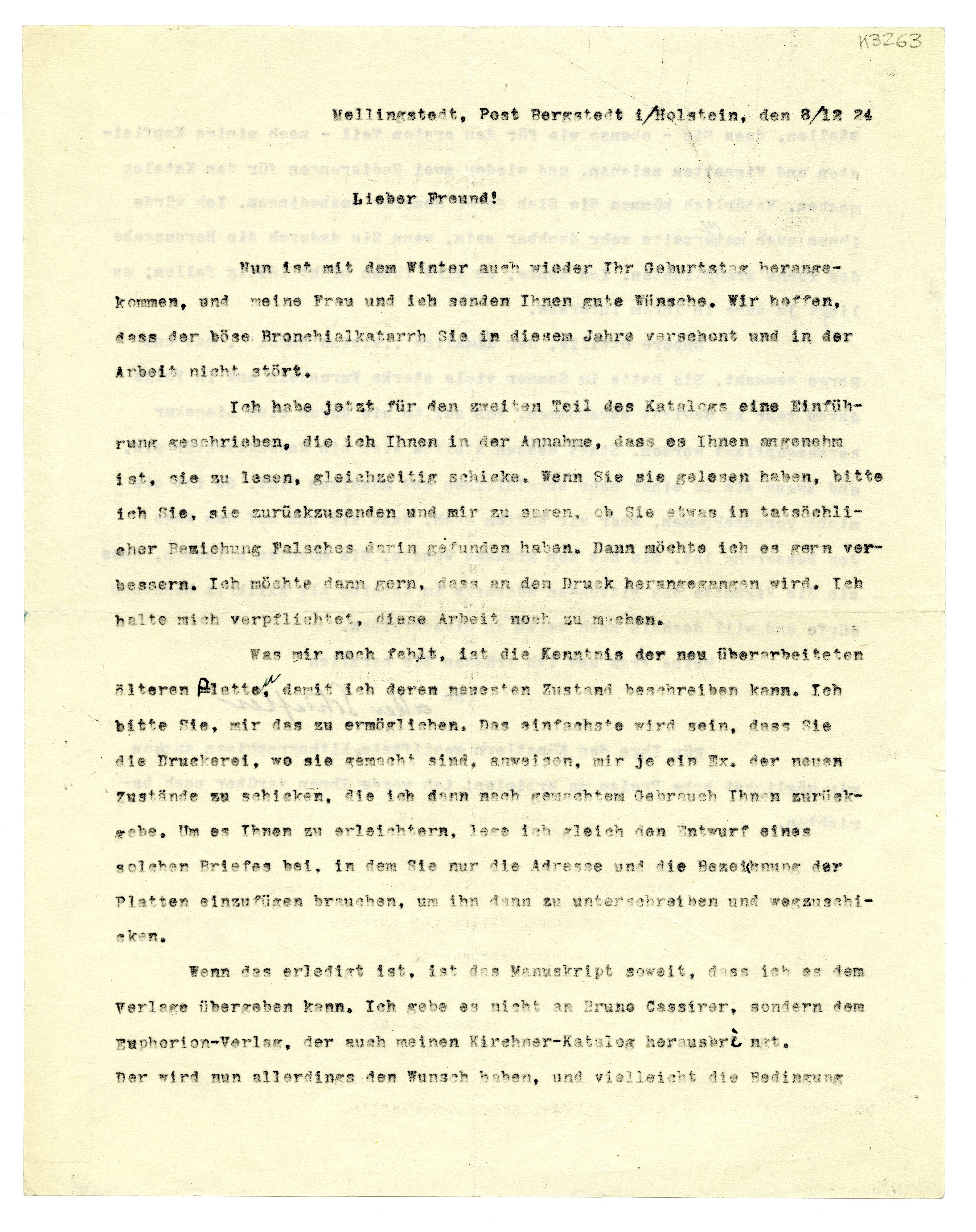 MM K 3263, Munchmuseet. Datert 08.12.1924. Brev fra Gustav Schiefler.