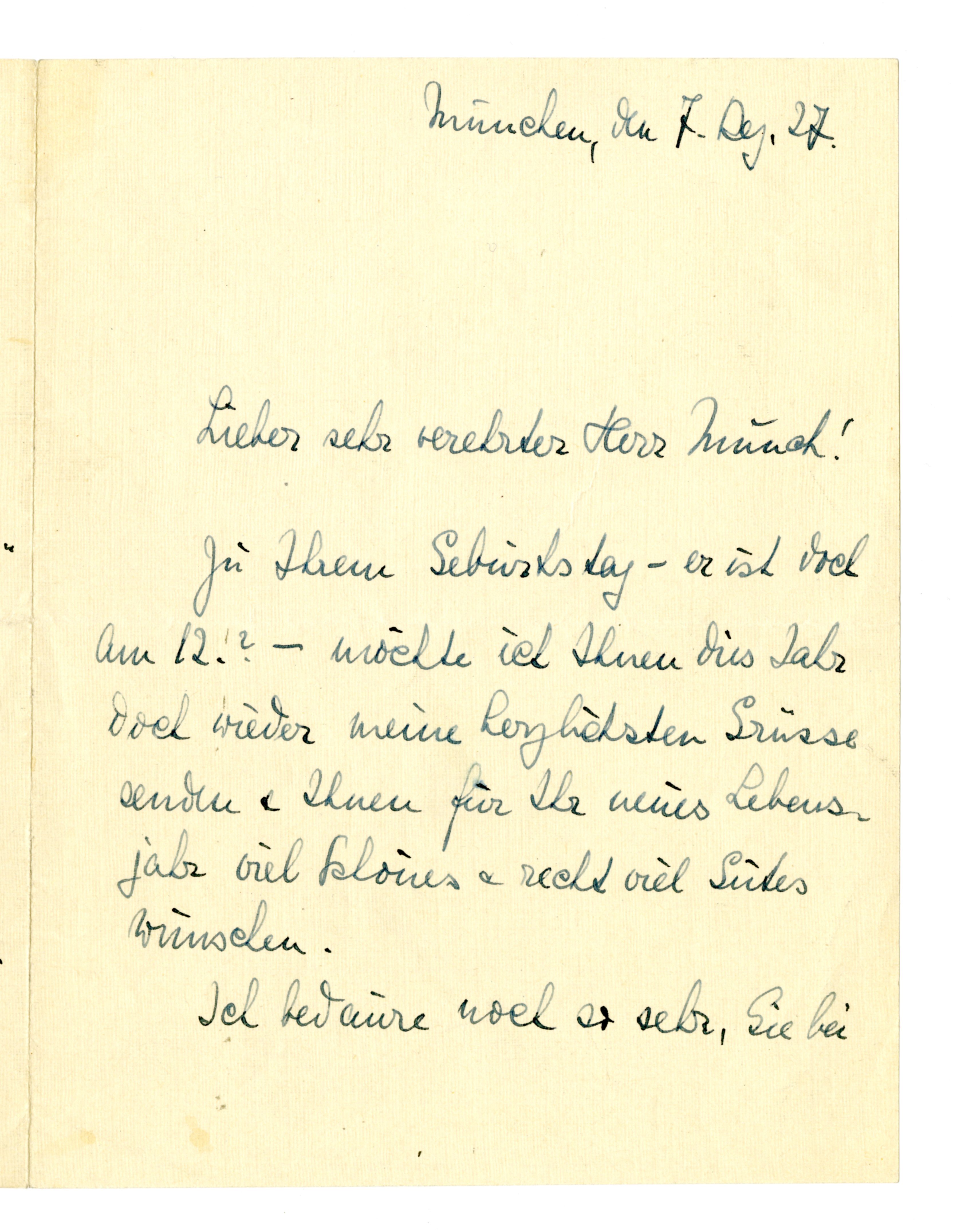 MM K 3277, Munchmuseet. Datert 07.12.1927. Brev fra Ottilie Schiefler.